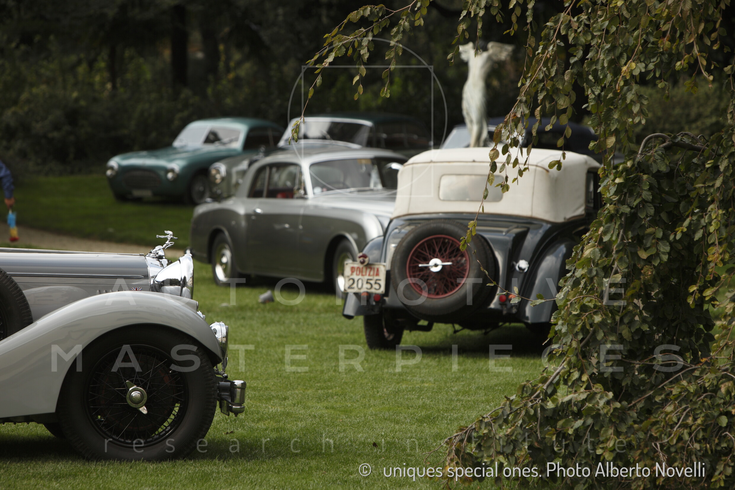 Fins added on the rear fenders by unknown coach builder. Louvered air inlets in the bonnet.