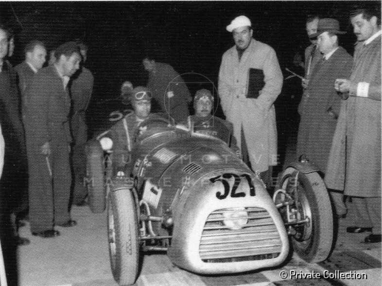 Chassis 5210049 (office number) is the 5th car built by Ermini and born by using some mechanical parts of the Gran Premio Sport, previously damaged at the Gran Premio delle Cascine. Ermini commissioned Gilco to build a chassis obtained from a Fiat 1100 which, after being modified with special boxed structures, turned out to be lightweight and resistant to torsions. The car was built in Turin by Bormioli’s friend, Rocco Motto. Considering the fact that the Italian Championship included races on street circuits as well as short uphill time trials, the car was given a torpedo essential body. It was slender, barely within the rules, and required two seats and a minimum width of 90 cm. This made it necessary to use motorcycle fenders for the fairing of the four wheels. In order to make the car as light as possible, a special rear suspension with short, cantilevered leaf spings was chosen. The relationship between Ermini and Rocco Motto was immediately of great understanding and in the following years the coach-builder engaged himself to developed different coach-work for the florentine builder. It was equipped with the powerful Ermini engine with Fiat block. The car was completed shortly before the 1949 Mille Miglia but 5210049 did not run. In 1949, Ermini entered three cars in the Mille Miglia, the cars were fast but they had to withdrew due to breaking of the valve's screw adjustment. The problem was solved later with the help of engineer Alberto Massimino. Bormioli was soon able to fight on equal terms with higher capacity cars, often battling for the overall victory. Chassis 5210049 ran two Mille Miglia and several Coppa d’Oro delle Dolomiti, among other races. The most significant result of this car was the overall win in the 1949 Coppa della Toscana. These placements allowed the Venetian pilot to be ranked at the 4th place in the Sport class 1100's Italian league.