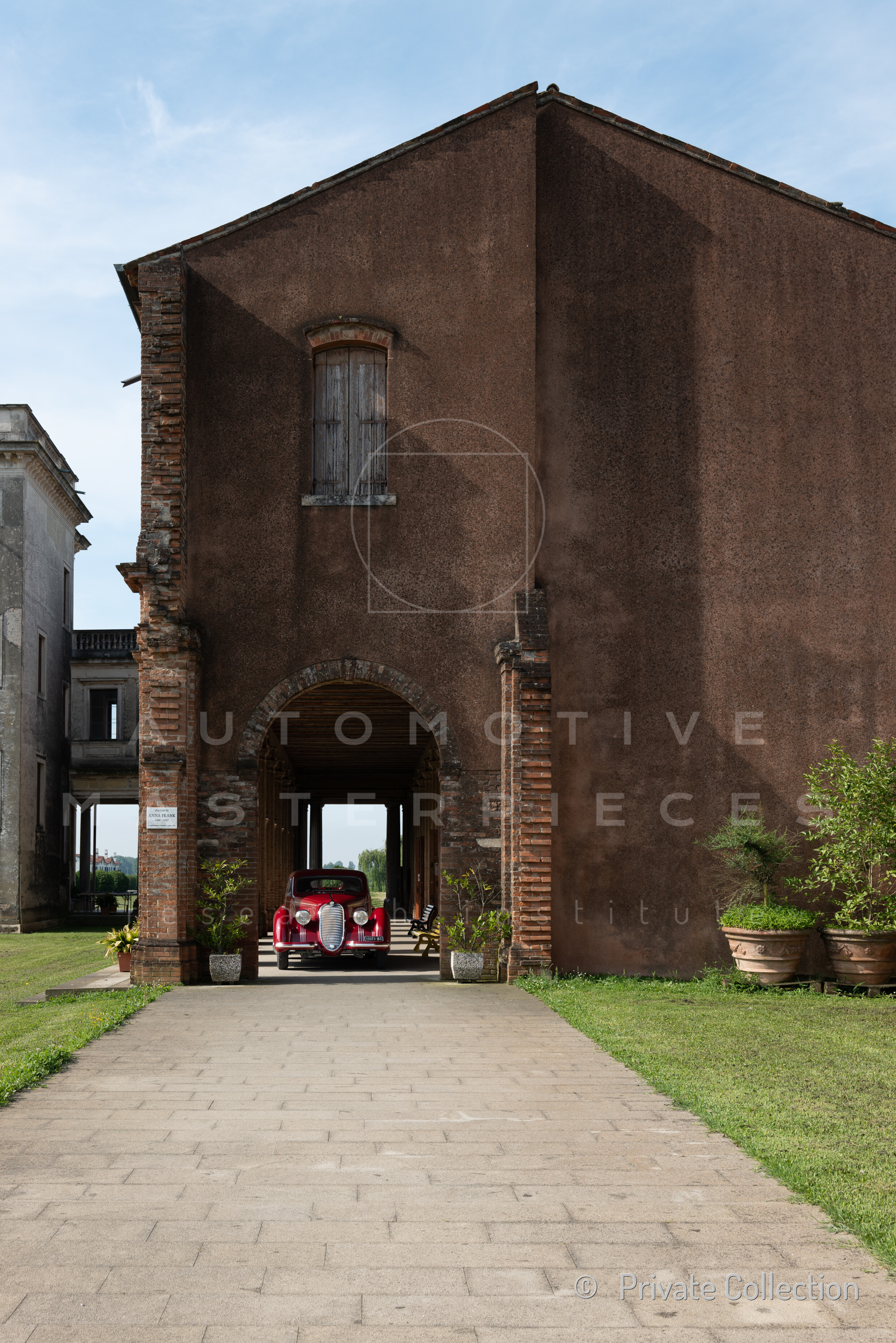 Record 1 Jun 1940 The car bearing its 1st plate (BS 15073) in an environment suitable for both Mazzotti and Lana, i.e. parked next to a Caproni Ca.310 Libeccio, a twin-engine reconnaissance plane, with the insignia of the Regia Aeronautica, on the Ponte San Pietro airfield (Bergamo, Italy). The date of the Millanta shot (June 1940) suggests that the car was already owned by Lana. Probably the license plate MI-73396 was never mounted by the Alfa Romeo dealership and Lana also waited before being able to mount the license plate SV-5912.