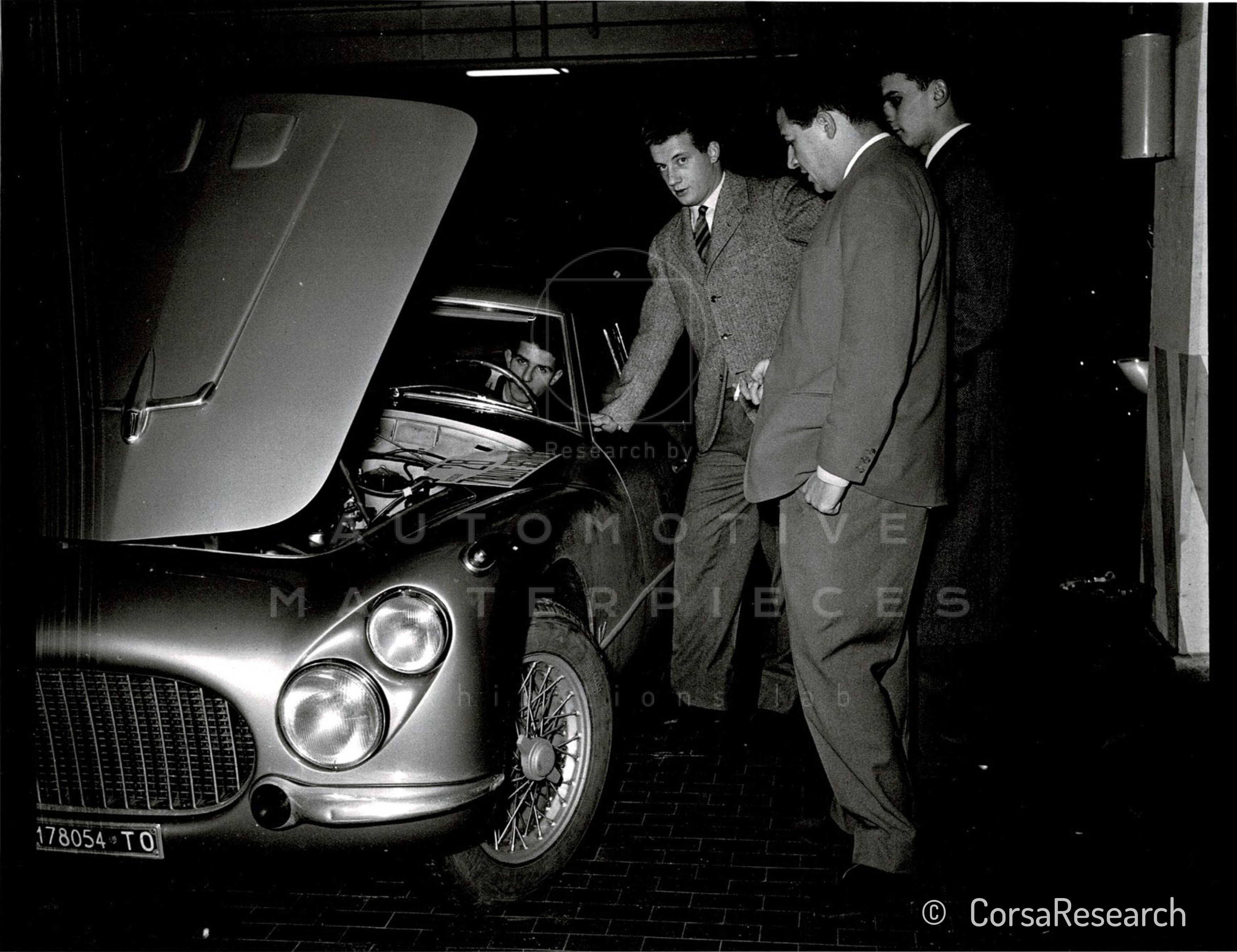 The car with chassis 106.000067 originated in 1953 and is the first Fiat 8V produced and bodied by Carrozzerie Speciali Fiat as the second series. It is believed to be the car used for the realization of the photo shoot used for inclusion in the official sales brochure of the "Fiat 8V" (first version of the brochure). The car is used to show and exhibit the new model to the general public. On August 29th, 1953 the car was transferred to the Fiat branch in Bari, to participate from September 5 to 23, 1953 in the 17th edition of the Fiera del Levante event in Bari, in the "Auto Show" pavilion. During the Fiera del Levante in Bari in 1953 it is noticed by the newly elected King Hussein of Jordan who will be immortalized in the driver's seat. The well-known minister Pietro Campilli also noticed the car and was immortalized on the stand. On September 15, 1953 the car was exported to the Sevita agricultural machinery distributor in Puteaux, France, distributor of the Fiat brand among others. The aim is to participate from October 1 to 11, 1953 in the 40th edition of the Salon Internationale de l'Automobile - Paris, in the exhibition areas: Grand Palais and Parc des Expositions. On November 12, 1953 the car was re-imported to Turin; some external details are updated and a graphic update of the official sales brochure of the “Fiat 8V” (second version) is carried out. It is believed that the car with chassis 106.000067 is also the one exhibited at the 36th edition of the Salone Internazionale dell’Automobile - Turin from April 21 to May 02, 1954 at the Palazzo delle Esposizioni at Valentino. It is also believed to be the car immortalized in the photo shoot with fictitious number plate (Turin) TO164654 in June 1954. April 8, 1955 is the date of the certificate of origin inserted in the chronological extract of the plate TO178054 and April 15, 1955, the car receives the 1st registration with license plate (Turin, I) TO178054. The 1st registered owner, on April 16, 1955, is a well-known name: Umberto Agnelli who buys it for 840,000 Lire. Grandson of Giovanni Agnelli and brother of Gianni, he was President of Juventus Football Club, Senator of the Italian Republic and, finally, President of Fiat SpA from 2003 to 2004. During the period owned by Umberto Agnelli, the car was entered in the Sestriere International Automobile Rallye, in the Gran Turismo category, in the class from 1300 to 2000 cc., as crew no. 28 conducted by the Acutis / Abate team which did not qualify. Giorgio Acutis was an emerging driver and Social Champion of the class up to 1300 “GT di Serie Normale” in 1953 as well as an active driver at the well-known “Racing Club 19” team. Later, in 1956, the car was registered in the name of R.I.V. Officine di Villar Perosa SpA, an Italian engineering company, born as part of FIAT specializing in the production of ball bearings. In July 1957, Riccardo Totta became the 3rd owner; he was among the founders of the machine tool company SIMU (official supplier of Fiat) and honorary consul of Austria in Turin from 1989 to 2007, as well as a consultant to the Agnelli family. The somewhat frightened memory of the car in 2017 by Ingrid Totta, widow of Eng. Riccardo is particularly nice. She remembered the car used for some pleasure trips in Austrian territory, but defined the car as purely "masculine", due to the hard controls, the loud noise and the non-existent trunk, cluttered with the spare wheel. She also remembered a "grumpy" nature due to its sporting temperament, so it was easy to get the sparks dirty. But she remembered it beautiful and dressed in an elegant metallic color. After other changes of ownership that saw the car return to Fiat, change the number plate (TO193934) for a short period and end up in Pinin Farina, the car was withdrawn from circulation in 1960. During the 1970s it was recovered by Giulio Dubbini who also owned the Fiat 8V (Zagato) 106.000076; when he decided to sell it, he took the engine off 106.000067 and put it on 106.000076. At the same time, the collector Edoardo Tenconi recovered the chassis of 106.000067 and kept it for many years planning the restoration, which unfortunately never took place. In June 2016, the car with chassis 106.000067 becomes the property of the current owner along with engine number 104,000*000150*. At the end of 2016 the car was equipped again with the original 104.000*000115* engine, returning to be a matching number.
