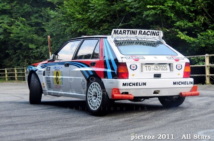In 1985 to return again competitive in the face of other automakers in the world rally championship, four-wheel drive was an absolute necessity and the Lancia 037, used until then in the races, was no longer competitive. Therefore, the Lancia-Abarth team led by engineer Lombardi gave birth to the Delta S4 (S = "supercharged", 4 = four-wheel drive), with the aim of winning in the group's international rally competitions B. The Lancia Delta S4 (Abarth SE 038) which the works team ran from the season-ending 1985 until the end of the 1986 season was a Group B race car designed and built specifically for rallying, and was entirely different from the mass-produced consumer versions. When Group B cars were banned from competition and Group A was imposed on rallying in 1987, the world’s leading manufacturers had to develop new cars. A minimum of 5000 examples had to be built before a car could go rallying. For this new category, Lancia developed the four-wheel-drive Delta HF 4x4, a car which started with a victory in January 1987 and which was still dominant in 1992, its sixth consecutive season. Lancia won the World Rally Championship for Makes in every one of those years - 1987 to 1992. The Delta HF 4WD (Abarth SE 043), with its two-litre turbocharged engine and four-wheel-drive, was clearly a more suitable Group A rally car than its rivals. The Delta HF Integrale 8-valve (Abarth SE 044) was launched in October 1987. With flared wheelarches, larger wheels, larger brakes and an engine intercooler, it was speedily homologated in March 1988 after the factory had churned out a further 5000 cars. The Delta HF Integrale 16-valve (Abarth SE 045), which had been launched in the spring of 1989, was then homologated in October 1989. The Lancia Delta HF Integrale is the car model which has won the most titles for Martini Racing. During the last part of the 1991 season, Lancia developed the Delta HF integrale "Evoluzione" (Abarth SE 050), sometimes nicknamed the "Deltona" or "Super Delta". This final evolution had wider wheel arches, more satisfactory suspension movement and handling and a new type of aerodynamic spoiler on the rear of the roof. It debutted on the 1992 Monte Carlo. At this point the ‘works’ team officially closed down, but the Jolly Club took over team cars, equipment and some ex-Abarth mechanics and enjoyed a great deal of support from the factory. Afterwards, the Jolly Club decided not to contest the final round of the series and withdrew, signalling the end of both the Delta's career as a top-line rally car and Lancia's involvement in the World Rally Championship. In total, the four evolutions of the Lancia Delta won 46 World Championship rallies, and Lancia’s run of six consecutive manufacturers’ titles remains a record.