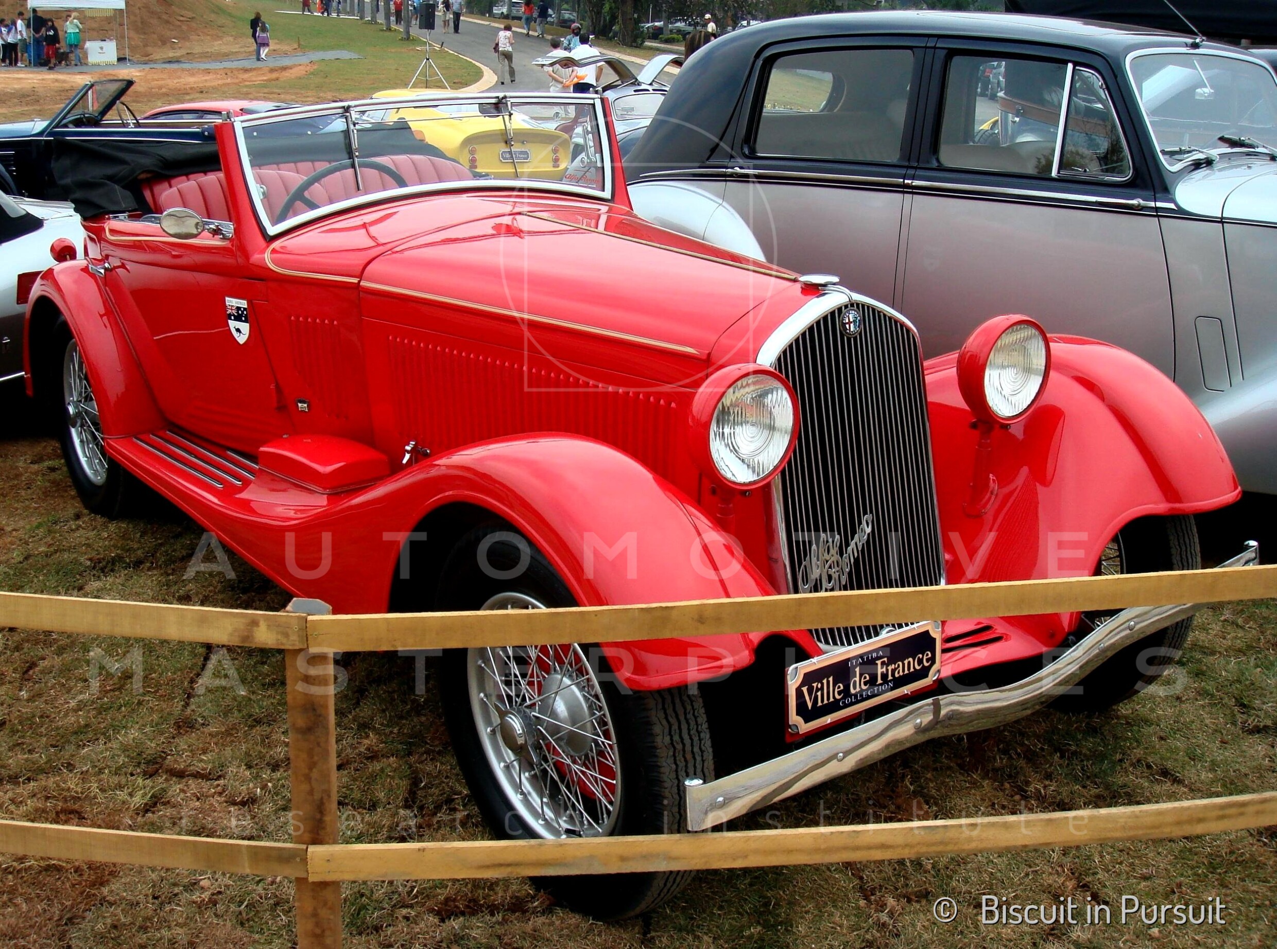 1950 - 1926 Bentley 3 litre (chassis no. RT1537) and 1933 Alfa Romeo 6C 1750 Gran Sport (chassis no. 121215037). Looks like this pair are off somewhere for the weekend, and expecting tyre problems, since both have a couple of additional spare tyre placed in front of the grille. The Alfa Romeo have the rounded covers on the headlights and seems to be towed by the Bentley in that very moment, with childrens waiting onboard. The photos are probably early post-war and the Bentley had already lost its Carbodies saloon body, it now sports a Vanden Plas style tourer body. The Alfa Romeo with Castagna coachwork was at this point owned by Major Money. View all