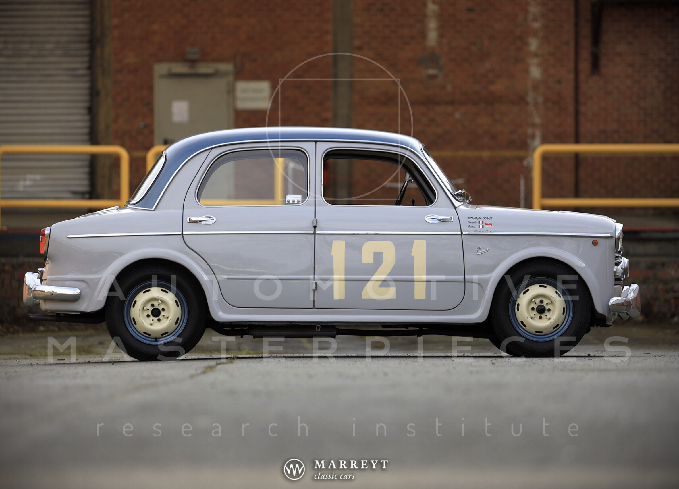 Fiat 1100/103 TV (Turismo Veloce), chassis no. 103TV*033956* is a car produced in the Carrozzerie Speciali Fiat department, was completed in the Mirafiori factory in Turin in December 1953 and delivered to the S.E.T. - Commissionaria FIAT in Bologna with a certificate of origin dated January 15, 1954. Sold on 1 February 1954 to ing. Guglielmo Franchi at the price of Lit 1,225,000, was registered with the number plate BO 64215 which it still owns today. Guglielmo Franchi, at the time residing in via delle Belle Arti 25 in Bologna, graduated in Engineering, was RAS Insurance Attorney and a great sports car enthusiast. Between 1951 and 1955 he ran several races such as the Giro della Calabria and 5 Mille Miglia consecutive: in 1951 he began his racing adventure in this competition as a navigator of Paolo Pagani aboard a Lancia Ardea, in 1952 he tried his hand as a pilot on a Fiat 500 C (Finetti co-driver, 218th overall), in 1953 on a Renault 4 CV (Barbieri co-driver, 204th overall) and in 1954 and 1955 he raced with this Fiat 1100/103 TV. His co-driver was Raffaello Zanasi, also from Bologna, who also took part in many races alongside established drivers such as Sergio Pedretti (Kim). The positive experience in the previous editions of the Mille Miglia pushed Eng. Franchi to continue his career as a gentleman driver with a more performing car. For this reason, as soon as it was purchased, he immediately had his new Fiat 1100/103 TV thoroughly tuned to make it competitive in the Turismo Speciale category. The main works carried out, as per the owner's letter to CSAI in Milan and ACI in Brescia, were: replacement of pistons, camshaft, valves, carburetor jets, spark plugs, coil; head polishing and compression increase; suspensions set-up; flywheel lightening, muffler modification. At the 21st Mille Miglia, held on 1-2 May 1954, he did not finish the competition and retired after 7h 56 '20' of the race. A short time later he had the engine of this FIAT 1100 TV completely replaced with a new one and had the update noted in the vehicle registration document on 12 July 1954, as can be seen from the chronological extract. In 1955 the engineer Franchi showed up again with this car and the same co-driver at the start of the Mille Miglia and curiously he was assigned the same number as the previous year: 121, then he left again at the same hour in 1954. Probably the engineer Franchi was not superstitious and the result proved him right. In fact, he finished the race in 115th position out of 279 competitors who finished the race and 11th in the category (Turismo di Serie Speciale up to 1300 cc.) out of 35 classified. His order of passage to the various controls was: 228th in Ravenna, 196th in Pescara, 188th in L'Aquila, 174th in Rome, 161st in Siena, 149th in Florence, in his Bologna he passed 151st at 14:02:17, in Cremona 130th. Before the start he wrote a letter to the organizers to complain, also on behalf of other Bolognese racers, about the change in the CSAI regulation (annex J) which now also allowed cars "derived from Gran Turismo", such as Alfa Romeo Giulietta and Porsche 356, in the Turismo category, a circumstance that later did not occur, receiving reassurances in this regard. A few days after finishing the Mille Miglia, on May 18, 1955, Eng. Franchi sold the car to Giuseppe Sangiorgi, born in Castel Bolognese in 1891, who kept it for three years and left it in exchange at the FIAT branch also in Bologna in June 1958 for the sum of 420,000 Lire, the same sum at which it was resold after a few days to Mr. Aldo Guccini, a hauler from Bologna, who certainly kept it at least until 1967. After being found by a well-known researcher and car historian, it became part of the collection of an Italian enthusiast, then passed to a Dutch dealer. It was recently bought at the Bonhams auction in Zoute in Belgium, returning to Italy.