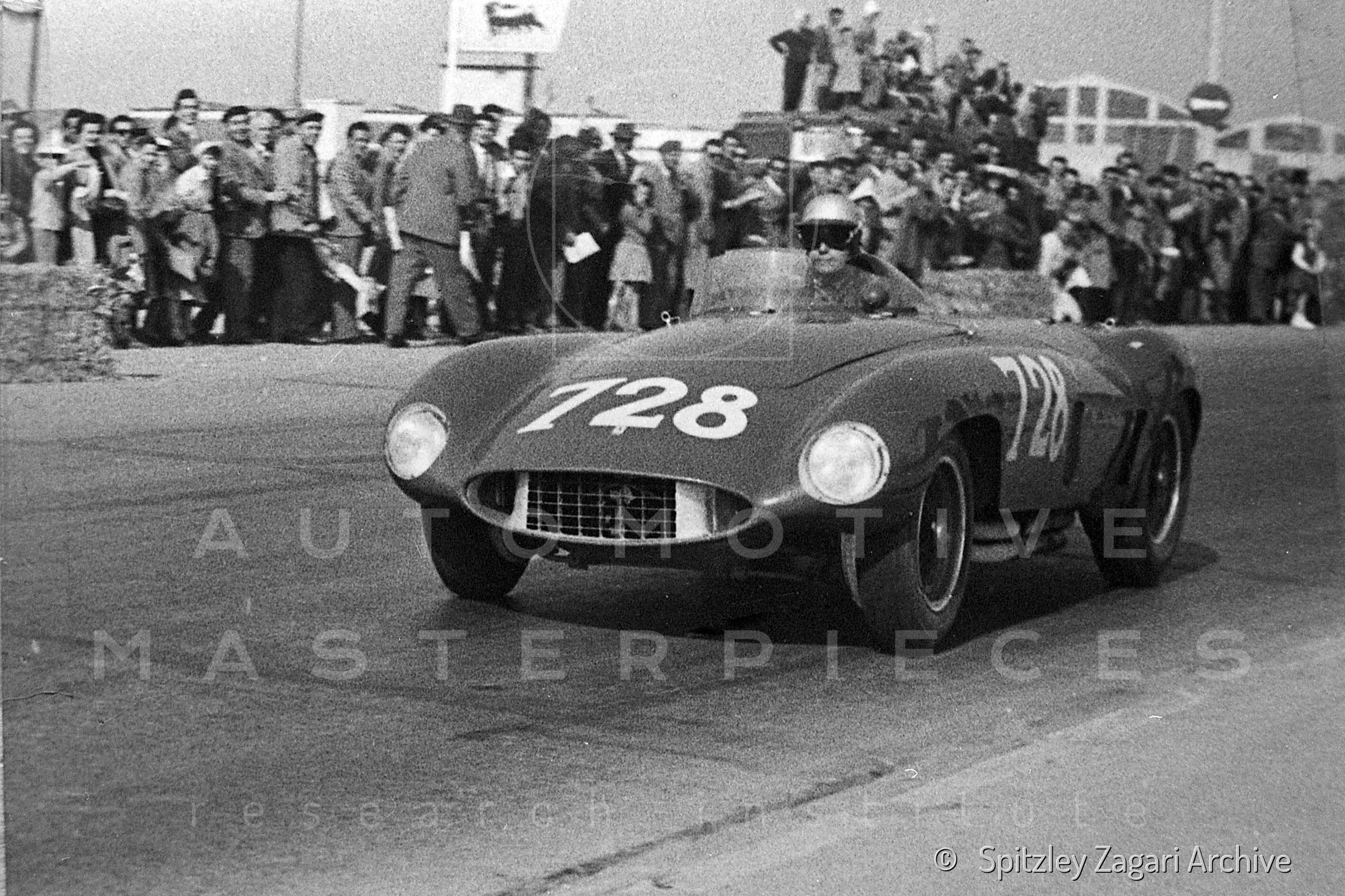 The Ferrari sport car, chassis 0546LM, began its life as a 376 S model in early 1955 and debuted in competition on April 4, 1955, at the Giro di Sicilia. This was as part of the official Scuderia Ferrari team, racing with the number #438. Expert driver Piero Taruffi claimed the model’s first victory, an outstanding 1st overall and 1st in class. Taruffi’s precision and skill shone at the Giro di Sicilia, a technically demanding race that required both speed and meticulous car management. Known for his engineering background and scientific approach, Taruffi exploited every technical advantage of the Ferrari 0546LM, particularly its extended chassis and balanced weight distribution. A key moment occurred in the mountainous sections, where many rivals in more powerful cars lost ground on tight corners and steep descents, while Taruffi maintained a steady, high pace thanks to the car’s agility. Famous for preserving his engine and tires, Taruffi employed a strategy of accelerating on straights and pacing climbs, which kept the car in excellent condition. This approach secured not only his victory but also reinforced the reliability of the developing 376 S model. After the race, Taruffi and the Ferrari were celebrated by the Sicilian press and public, who nicknamed the car the "silver arrow of Maranello" for its speed and elegance. The win was crucial for Ferrari, showcasing the potential of the inline-six engine as a viable alternative to the iconic V12. Later that month, the Taruffi–chassis no. 0546LM pairing appeared at the Mille Miglia, racing with license plate PROVA BO46419.Ferrari started him last, at number 728, to give him an advantage. Taruffi set an outright, never-to-be-broken record in the first half of the race, surpassing the seemingly unbeatable Moss, who had established an incredible average speed of 187.315 km/h. Taruffi managed to average an even more astonishing pace of 189.909 km/h on the Brescia – Pescara leg on ancient roads, despite stops for refueling and other challenges. Unfortunately, he was forced to withdraw due to a mechanical failure shortly after Rome, before Siena. A detailed analysis of the car’s racing history has shed light on one of the main reasons why sources disagree about this participation in the Mille Miglia. The confusion stems from the registration documents for the four Scuderia Ferrari cars, which initially assigned them to different drivers about 20 days before the race. Subsequent circumstances, as documented in period press coverage, led to changes in these assignments. As a result, the Mille Miglia registration documents do not align with the cars and crews that actually raced. There was no doubt, however, about chassis no. 0546 LM’s participation in the 24 Heures du Mans in June: all sources agree that Ferrari 0546LM was the car competing with racing number #5, and extensive documentation regarding the car’s registration at Le Mans provided a wealth of detail. The Scuderia Ferrari’s 735 LM cars appeared very similar to each other, and even the two 750 Monza cars participating shared aerodynamic features with the 735 LM models. As a result of meticulous research through the Automobile Club de L’Ouest, located at the Circuit des 24 Heures in Le Mans, which houses the historical archive of the competition, it was possible to trace and obtain an authenticated copy of the registration sheet for chassis no. 0546 LM. Pre-race tests took place on June 8, 9, and 10, 1955, while the race occurred between June 11 and 12. The complete documentation of the car’s registration comprises nine pages, filled out on Wednesday, June 8, with a scheduled technical inspection at 5:30 p.m. On this occasion, the car presented itself for inspection around 5:00 p.m. and was verified. The registration details certify the chassis no. 0546 LM—together with its matching engine no. 0546 LM—providing an exhaustive list of technical specifications, mechanical components, and the Ferrari team members supporting the car. This document thus confirms the car’s identity at that precise historical moment. Alongside this meticulous documentation, chassis no. 0546LM is identifiable through an extensive photographic record from the period, stored in numerous historical archives. These photos capture key features such as the race number #5 on its bodywork and the rear plate "PROVA MO-49." Thanks to this combination of documents and photographs, it has been possible to definitively identify the unique features and recognizability of Ferrari chassis no. 0546LM at the 1955 24 Heures du Mans and thus confirm the car’s exact identity. Despite the aforementioned similarity among the four cars, as many as 20 unique elements were identified. Among these, particularly significant and revealing were details concerning the position of the badges, unique features of the dashboard, the hood latch hooks, the seat positioning, and the shape and number of air intakes. These unique features, traced back through time, were cross-referenced with the car’s prior appearances in the Giro di Sicilia and Mille Miglia, further validating its participation in these races. Chassis no. 0546LM was therefore both a protagonist and a witness to two of the most significant events in motorsport history, both of which occurred in 1955: Stirling Moss's iconic victory at the Mille Miglia, often hailed as the greatest feat in motor racing history, and the immense tragedy at the 1955 Le Mans, which forever changed the landscape of the sport. The car, driven by Maurice Trintignant and Harry Schell, started the 24 Heures du Mans but, despite its impressive speed, it withdrew during the tenth hour due to engine issues. At the end of the 1955 season, chassis no. 0546LM was sold to William Doheny, CEO of Superior Oil Company, who supported Ernie McAfee as its driver. 0546LM is recognizable as such also because Ernie McAfee's car, racing with number 76 at the Santa Barbara event, shows slight dam