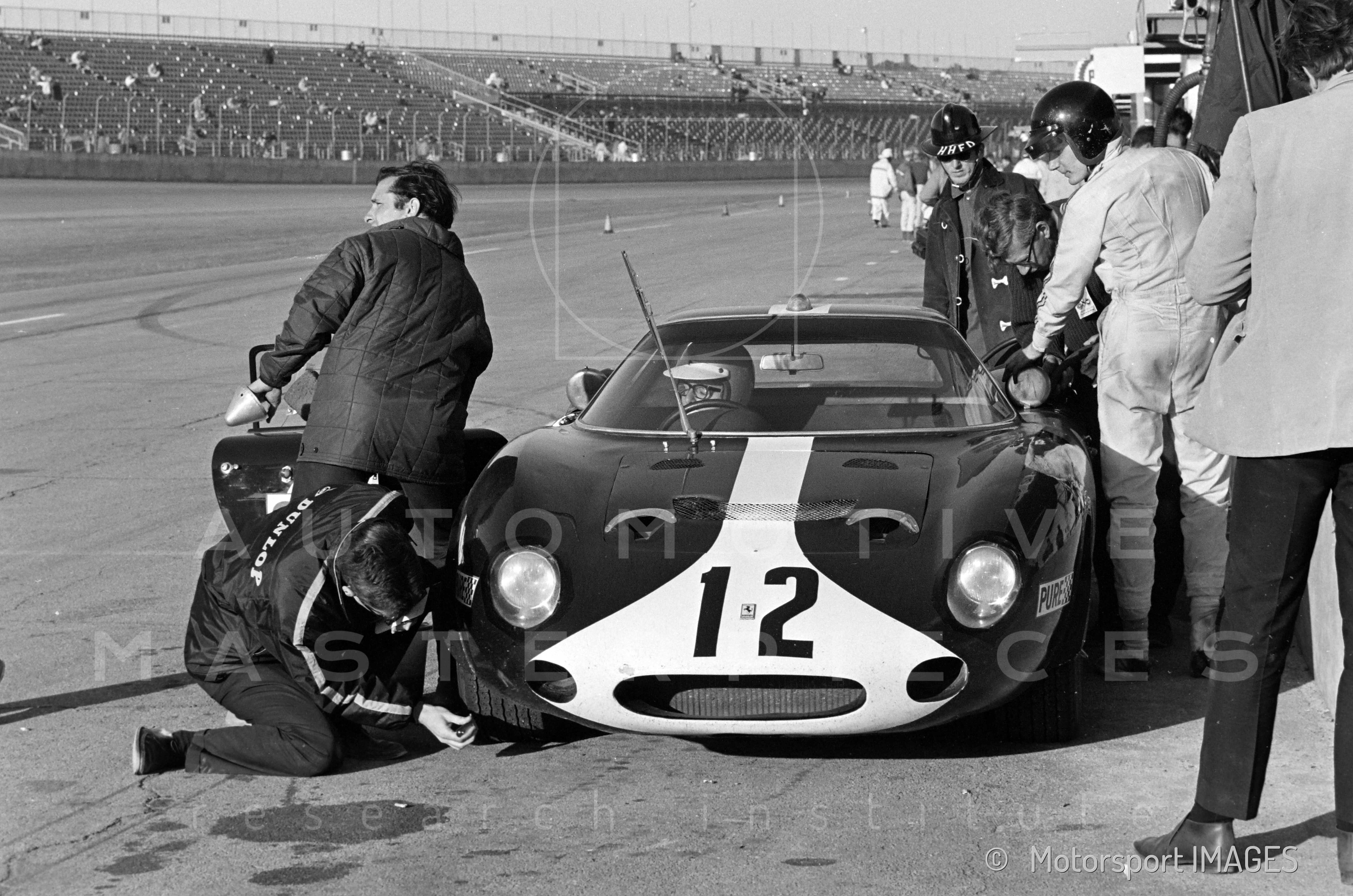 The Ferrari Berlinetta 250/Le Mans with chassis no. *6167* was commissioned by Australian Ferrari and Lancia importer William H. Lowe of Melbourne. Peter Howe, William’s grandson, recalls the car: “We imported two 250 LMs. One sold to David McKay and shipped directly to Sydney... The other, *6167*, was for my grandfather W. H. (Bill) Lowe to replace his 250 Short Wheelbase berlinetta. The car's original color was light metallic green (actually "Verde Bottiglia" green, with green "verde 8370" interior). As delivered, it was fitted with the highest gearing, and he found it almost impossible to drive on the road. I… changed the drop gears to the lowest ratio. It was still most difficult to drive in traffic, and my grandfather, who was then in his late eighties and a veteran of seven Australian Grand Prix, was unable to use it as everyday transport.” From February 11th to 22nd, it was exhibited at the International Melbourne Motor Show. According to press reviews, the car's price at the time was £11,500, but after the event and some dedicated articles, it was advertised for about two years but never found a buyer. Circa 1967, Col. Ronnie Hoare of Maranello Concessionaires came to an agreement. According to a pro-forma invoice, the price paid for the car was £3,800. Sn. *6167* was then brought back to Italy to Piero Drogo's Sports Cars coachbuilding firm, where the bodywork was modified in the front with a longer nose reminiscent of the 250 GTO and a new red and light blue paint. It also received new rims with a five-pointed-star shape, light blue finishing, and central lock. Soon after mid-April, the bureaucratic formalities were completed, and the 250 LM found new premises in England. The race debut took place at the Martini International Silverstone Club Trophy on May 20th. Richard Attwood scored a 3rd place overall. On May 29th, Mike Parkes took 2nd place overall in the BUA International Trophy Meeting at Crystal Palace circuit (#48) and, after a private test session on July 4th, Attwood and the the 250 LM achieved their first success, winning the British GP Support race at Silverstone (#30) on July 15th. On August 28th, Attwood finished third in the Guard International Brands Hatch Evening News International Trophy Race (#62), and on the following September 3rd, the car was at the Bugatti Owners’ Club Newton Oil Trophy meeting along Prescott hill climb. This was the first meeting of the newly formed Ferrari Owners Club. On the next September 16th, "Dickie" finished third in the Gold Cup at the Oulton Park track (#84). In those weeks, sn *6167* was sold to gentleman driver Paul Vestey. The English Baronet had won his class at the Le Mans 24 Hours the previous year and decided to buy the mid-engined sports car for the breakthrough. His first race was the Flugplatzrennen Wien-Aspern um den Donau-Pokal at the Vienna Airport (#19, dna). Two weeks later, Vestey and Paul Ridgeway were at the Paris 1000 kms (Montlhery circuit #14) and finished 13th overall and 5th in class. In November, the car should have been exhibited at the Die schnellsten Autos der Welt show organized in Vienna, an event organized by Jochen Rindt, but it was damaged in his transporter and sent to Carrozzeria Sports Cars for repair. The 1968 racing season of the Sportscars GT Championship began with the Paul Vestey/Roy Pike/Paul Ridgeway trio (#12) forced to withdraw at the 24 Hours of Daytona, but the Vestey/Pike duo took 15th place overall at the BOAC 500 at Brands Hatch track (#10) on April 7th. Vestey and Ridgeway scored 20th place overall at the Monza Mille Chilometri (April 25, #41) despite the car losing a wheel on track, and on May 5th, the Targa Florio was held by Vestey and David Piper. Their race was stopped by an incident.
