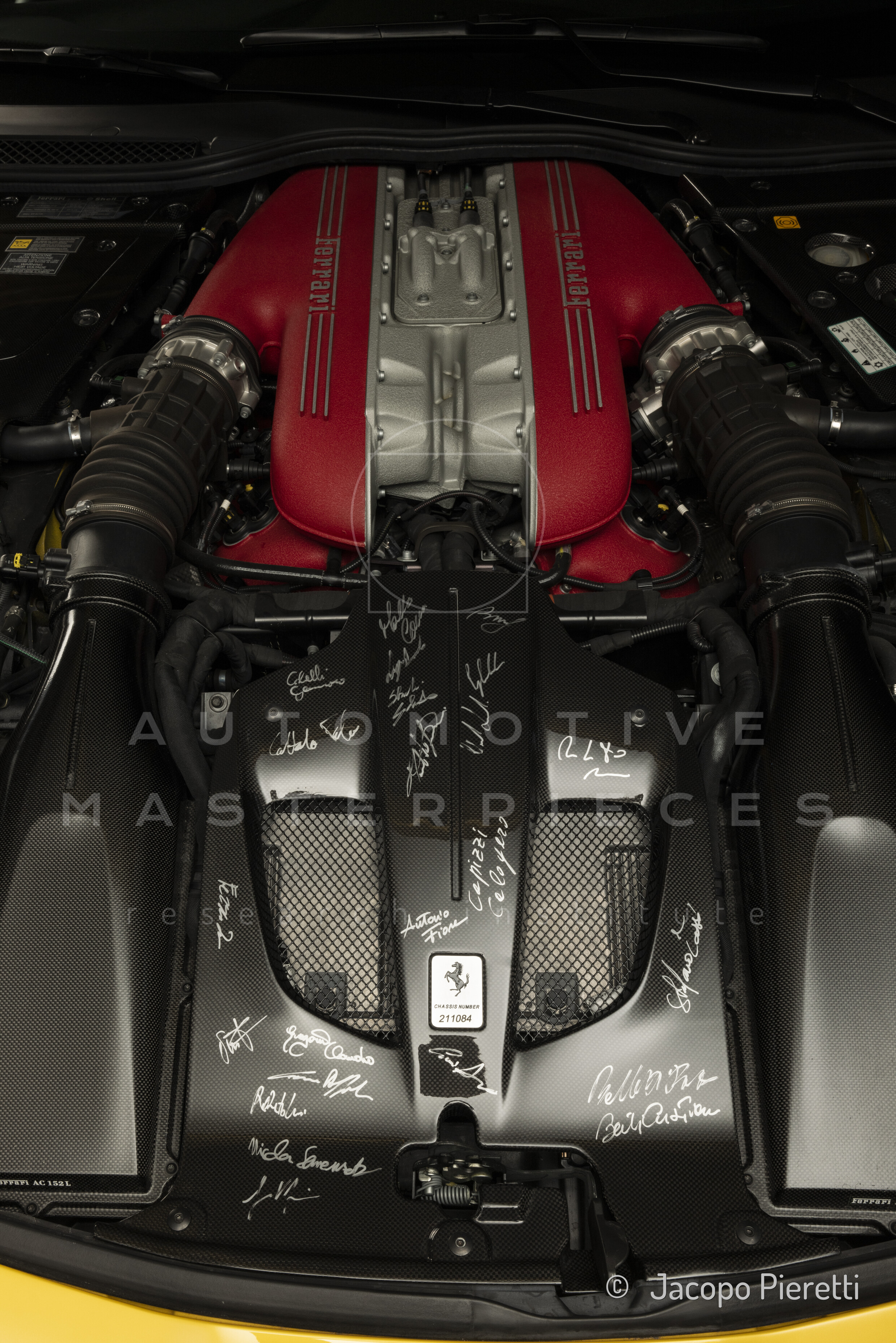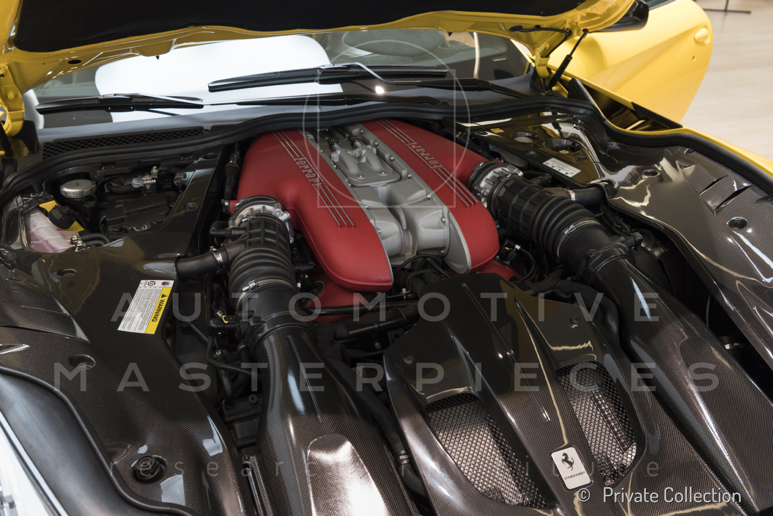F140 FC type, 65° V-angle. US pollutions specs. From May 2017, displayed on a pedestal at the Museo Enzo Ferrari in Modena, alongside Ferrari F12tdf, chassis no. ZFF81BH000211804