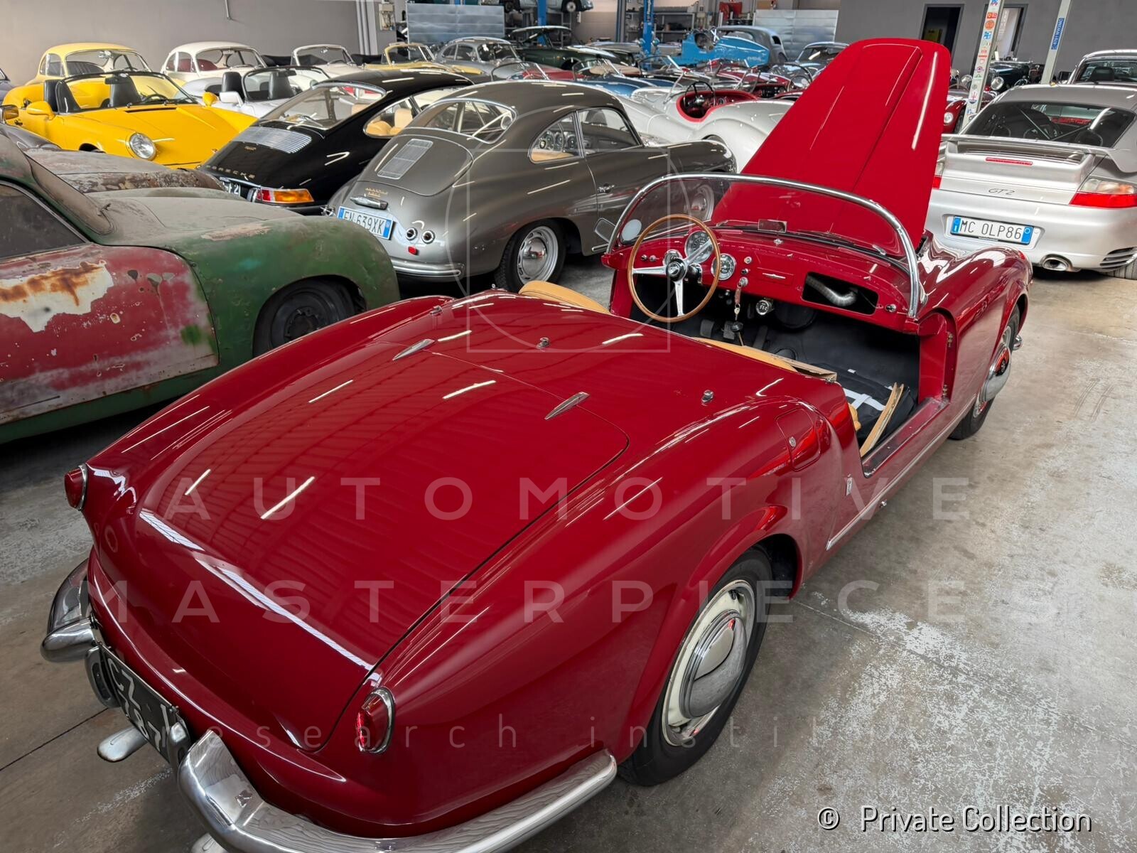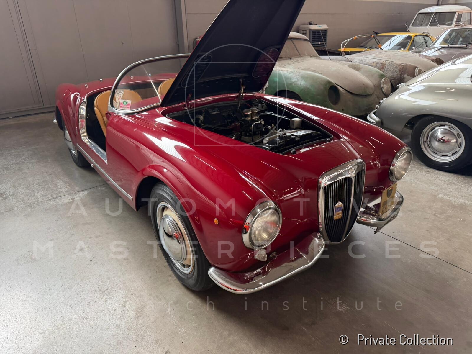 The Lancia Aurelia B24 Spider, chassis no. B24S-1016, is the 16th of the 181 left hand drive Spiders built and was delivered new to Torino (Italy) in May 1955. The car is documented in Lancia registers as built between March 21 and May 21, 1955, having been originally finished in beige with leather red interiors, as also evidenced by extremely rare photographs taken on the Lancia assembly line. In its earliest years, the car passed through several hands, a typical fate for a fashionable high-end model of the time, moving within the circles of the industrial and entrepreneurial elite of north-western Italy. It was first owned by Carlo Traglio, most likely belonging to the well-known Traglio industrial family, active in Northern Italy and associated with the Coca-Cola bottling business. While the identification is highly probable based on name, period and context, it is currently subject to further archival confirmation. Shortly thereafter, the car passed to Gianni Plodari of Magenta, heir to the industrial company “Francesco Plodari & Figlio,” among the early Italian manufacturers of locks and hardware, and a family of notable local prominence. In 1956, the Aurelia was acquired by Dino Fabbri, co-founder of the publishing house Fratelli Fabbri Editori, one of the most influential cultural enterprises of post-war Italy. Later that same year, the car changed hands several times before, in 1958, it moved to Southern Italy, entering a new phase of its life under the ownership of a gentleman driver, marking the beginning of a more distinctly sporting use. It was owned, already seemingly repainted in black, by Donato Giuseppe Jannone from 1958 to 1987, who was active in Italian hillclimbs and road events during the late 1950s and early 1960s. For competition use, Jannone carried out a number of modifications, including weight reduction starting with the removal of the bumpers, the adoption of closer gear ratios, a straight-through exhaust system, and a modified pedal arrangement to facilitate heel-and-toe driving. Chassis no. B24S-1016 was used in a number of the most important competitions in Southern Italy, including events such as the Giro delle Calabrie, Sorrento–Sant’Agata and Palermo–Monte Pellegrino, achieving several class placings and concluding its known competition career with an excellent 1st in class at the 1964 Coppa Città di Catanzaro. The car retains physical evidence consistent with period competition use, including inspection seals and mechanical modifications. Following Jannone’s death, ownership passed to his widow Eugenia Biasi by inheritance, who resold the car within the same transaction. At that time, the car was found in a derelict condition, having been abandoned for years in a henhouse at Marcellinara, with badly deteriorated bodywork, a seized engine, missing bumpers, no electrical system and no soft-top frame, although the removable side windows had survived in good condition in their original case and a Farina hardtop was fitted. It was then acquired by Francesco Cervadoro, Director of the Catanzaro Automobile Club, who decided to undertake a complete yet philological restoration. After consulting what was then considered the leading specialist in Italy, Cappa, Cervadoro opted instead for a more closely supervised approach under his own direction, entrusting the work to selected local craftsmen. A comprehensive five-year restoration was completed in 1992; during this time, the body was stripped and repainted in what was believed to be its original beige, although the result was executed in a darker shade. The electrical system, transmission, upholstery, hood, instruments and brightwork were all restored by specialised craftsmen in Calabria and Rome. Cavallitto of Turin is mentioned in connection with the engine rebuild, although he may in fact have supplied only the parts. The car was subsequently awarded ASI Targa Oro certification in 1992 and took part in some re-enactments for historic cars. In more recent years, the car was part of the long-term holding of Greyhound Motorsport, before being acquired by Davide Roda, Italian racing driver active in touring car and endurance competitions, including the FIA World Touring Car Championship. Today, chassis B24S-1016 is part of a private collection.