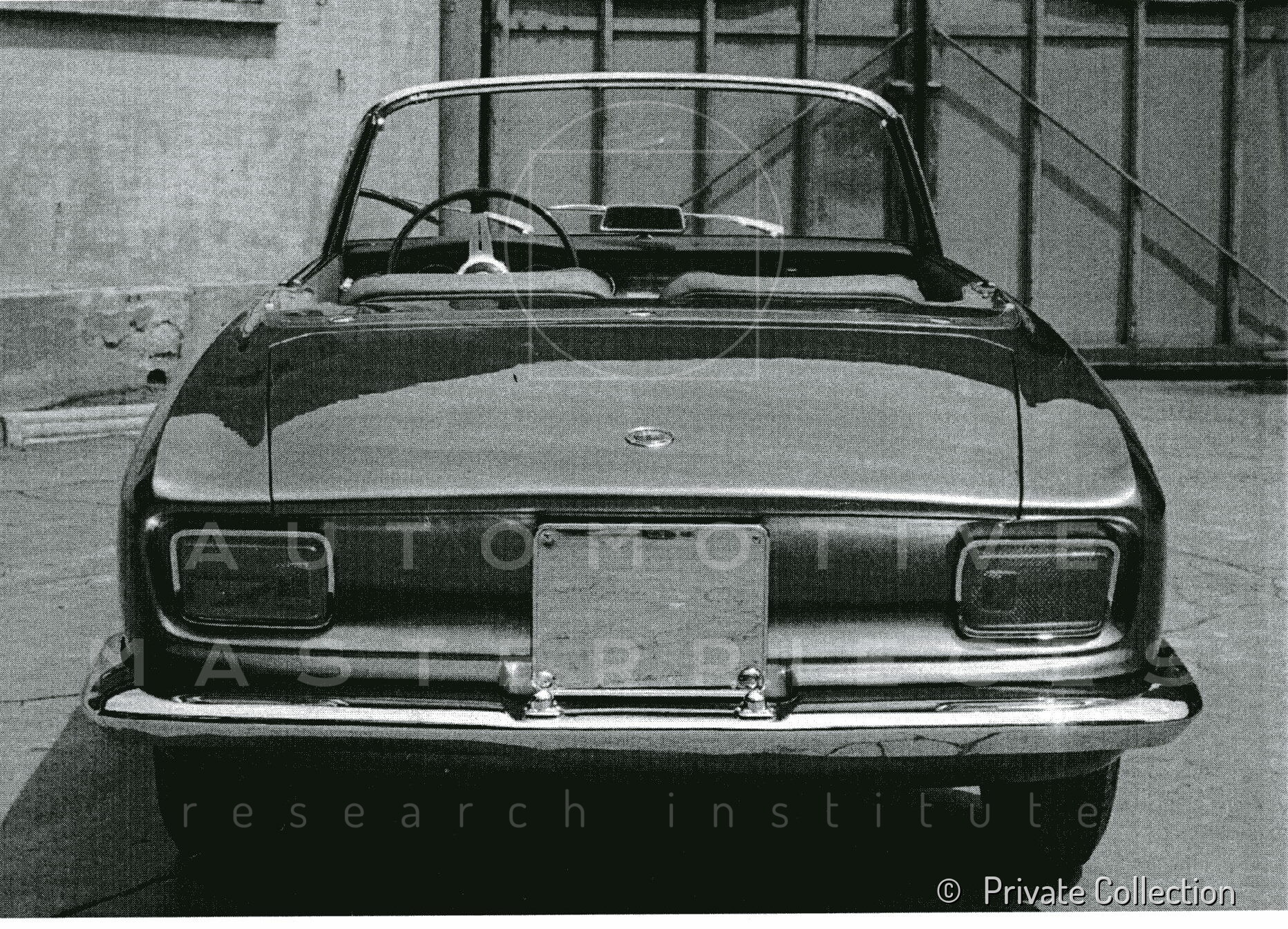 The launch of the Alfa Romeo Giulia Sprint GT at the Frankfurt Motor Show in September 1963 was closely followed by a Bertone two-seater spider, intended to replace the open-top version of the Giulietta model. The first proposal is simply a Bertone Giulia GT, shortened and without the roof. The prototype of this version is then modified: the bodywork of the new prototype, to which Ernesto Cattoni of Alfa Romeo Centro Stile gave a contribution, stood out for the marked dihedral line on the side like the Sprint GT as well as a new front end with a slender grill and small Alfa shield in the center. The car remained at the prototype stage: the debut of the Duetto by Pininfarina stops the project.