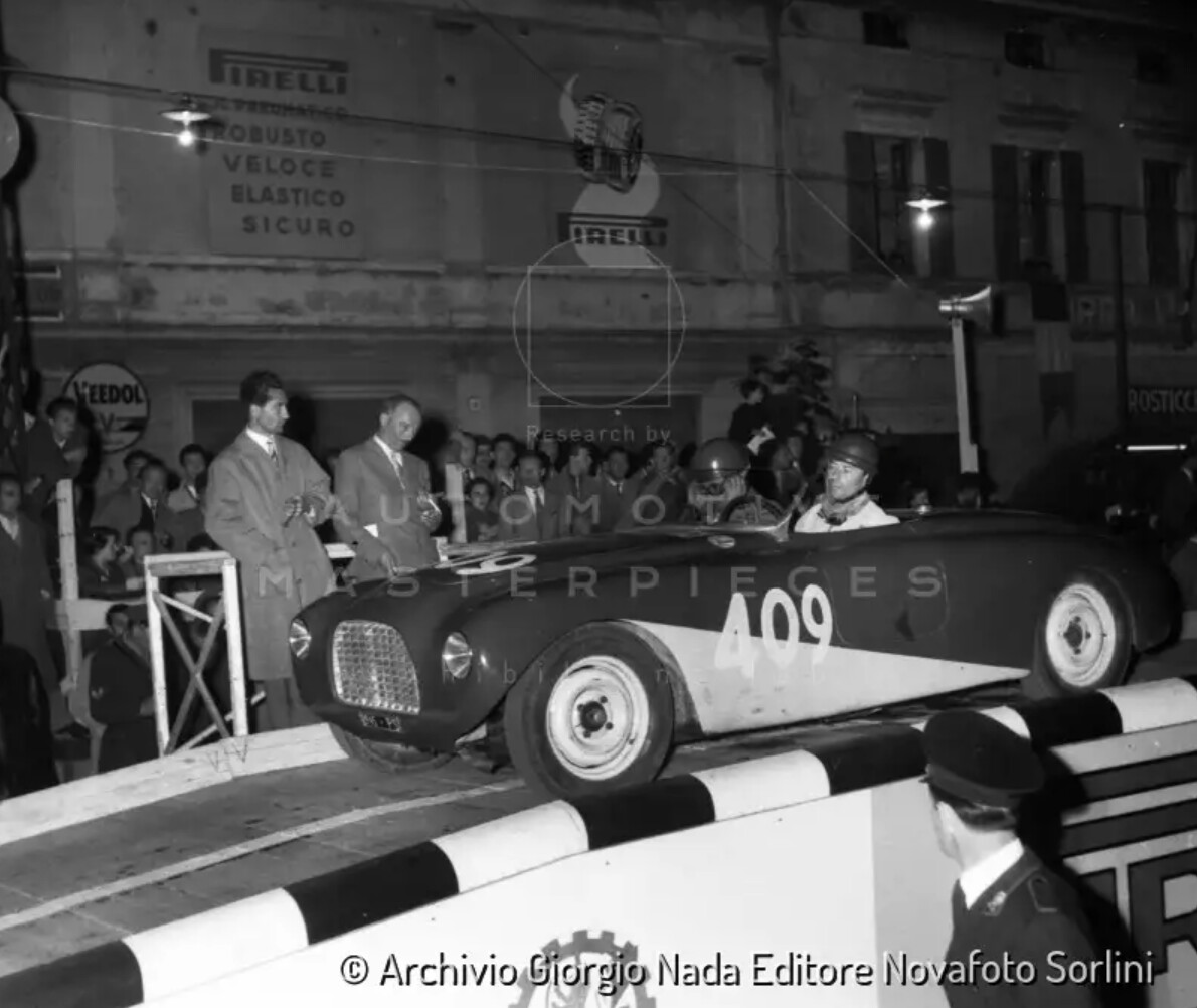 The car with chassis no. 279904 is the first that we know fitted with an ERMINI engine, so it’s an “ERMINI motorised” car. We don’t know if Pasquino Ermini built the engine on chassis no. 279904 as his first twin-cam engine. However, this engine is certainly the first that went beyond the experimental stage. Fiat 1100 Sport, chassis no. 279904, was born in 1946. "Scuderia Milan” commissioned this engine to Carrozzeria Bertone. The Scuderia wanted an aluminum sports car, on a modified Fiat 1100 B chassis. Bertone built very few cars of this type. The press of the time reports that the team ordered eight specimens for the Sport Nazionale category, but we know for sure of only three cars were made. They are distinguishable from one another for the different “noses” and features, and Nuvolari drove all during the races as he was part at the time of the Scuderia Milan team. It is possible that the chassis no. 279904 participated with Nuvolari to some of the 1946 competitions, in Asti and at the Circuito del Lido di Venezia. Pasquino Ermini noticed the car. As Scuderia Milan decided to dedicate to formula cars, they dismissed this one and later sold it to Ermini himself. Pasquino had just founded the T.E.S.S. company in Florence, his hometown. The T.E.S.S.’ logo was a rhomb engraved with the name TESS and the Florentine lily surmounting a racing car. That logo was affixed on the nose of the car, where it still is. The engine was transformed: with the twin-cam head and two Weber 32 RDP carburettors. With the car, chassis no. 279904, Ermini made his debut at the Piacenza Circuit in 1947 (2nd in class during trials), a race that made history for another illustrious debut, that of the Ferrari 125. At the end of the season, the car was sold to Siro Sbraci, a Florentine gentleman driver and a member of TESS, who participated with it to several events, obtaining various successes, both in the region and outside, including the participation in the Grand Prix of Rome, in Caracalla. During the same year, an irreparable failure made it necessary to replace the engine block. A Fiat 1100 S block was used, the power now reaching around 90 hp. The new engine received “ex officio” the no. 10-6551 (the original engine was no. 305909). The car was then sold to the driver Carlo Meoni, with whom it participated in various races (Giro di Toscana). In 1951, the chassis no. 279904 was purchased by the pilot Bruno Maroccini who started the 1952 season facing the Giro di Sicilia, where he was excelling in his class, right before the official Piotti’s Osca. However, a run off the road in Termini Imerese, near the finish line, put an end to his race. The impact severely damaged only the nose. Maroccini, who was an excellent sheet-metal worker in a famous body shop at the time, Ortolani in Pesaro, built a new nose, similar to that of the Ferrari 225 S, and returned to the races by participating, with the 409 number, in the Mille Miglia of the same year. Unfortunately, a problem with the steering forced him to retire. He kept participating in various events: from the city circuits in Senigallia to the uphill races classifying for the finals of the "Volante d'Argento" in 1952, in Catanzaro. The badge of the event is still on display on the side of the car. In 1955, the car ended his competitive activity, and it was used only occasionally by Maroccini. Vintage photos of the time portray Maroccini and the car that seems to be almost identical to the one that we see today. Currently, the car with chassis no. 279904 has been in the collection of the same gentlemen for about twenty years and is in the same state in which it was purchased, already approved by ASI. The car may have been subjected previously to a conservative restoration in the 80s, but no documentation about it is available. During the FIVA renewal, it has only been noted a veiling to revive the paint; it is uncertain whether it dates back to the repair in Ortolani’s body-shop or to the following period. Nowadays, the car comes with a wonderful vintage "patina”. The car has undergone regular maintenance over the years. The engine was overhauled in the atelier of the famous specialists, Oreste and Franco Daddario. The car has still the original ERMINI twin-shaft head, a prestigious condition infrequent to be found in other cars, since the aluminum of the first post-war period was often fragile and of poor quality. On this particular head the (equally rare) twin Weber single-barrel carburettors are the same ones mounted by Ermini. The car had this license plate since 1951 when Maroccini bought it. The "contemporary" history of the frame no. 279904 refers to active and successful participation in the re-enactment events, with outstanding performances, without ever suffering breakdowns and always completing the events. Driven by Mauro Giansante it achieved the following positions: 4th at the 1996 Mille Miglia, 8th at the 1997 Mille Miglia; 5th at the 1998 Mille Miglia; 5th at the 1997 Coppa Oro delle Dolomiti; 2nd at the 2001 Coppa Oro delle Dolomiti: 2nd at the 2002 Coppa Oro delle Dolomiti; 1st at the 1999 Targa Florio; 1st at the 1999 Giro di Sicilia; 1st at the 2005 Coppa Cidonio; 1st at the 2010 Circuito del Montenero; 1st at the 2014 Circuito di Caserta; 1st at the 2014 Circuito di Avezzano; 1st at the 2013 Gran Premio di Bari; 1st at the 2017 Gran Premio di Bari; 1st at the 2015, 2016, 2017 editions of the Circuito di Pescara.