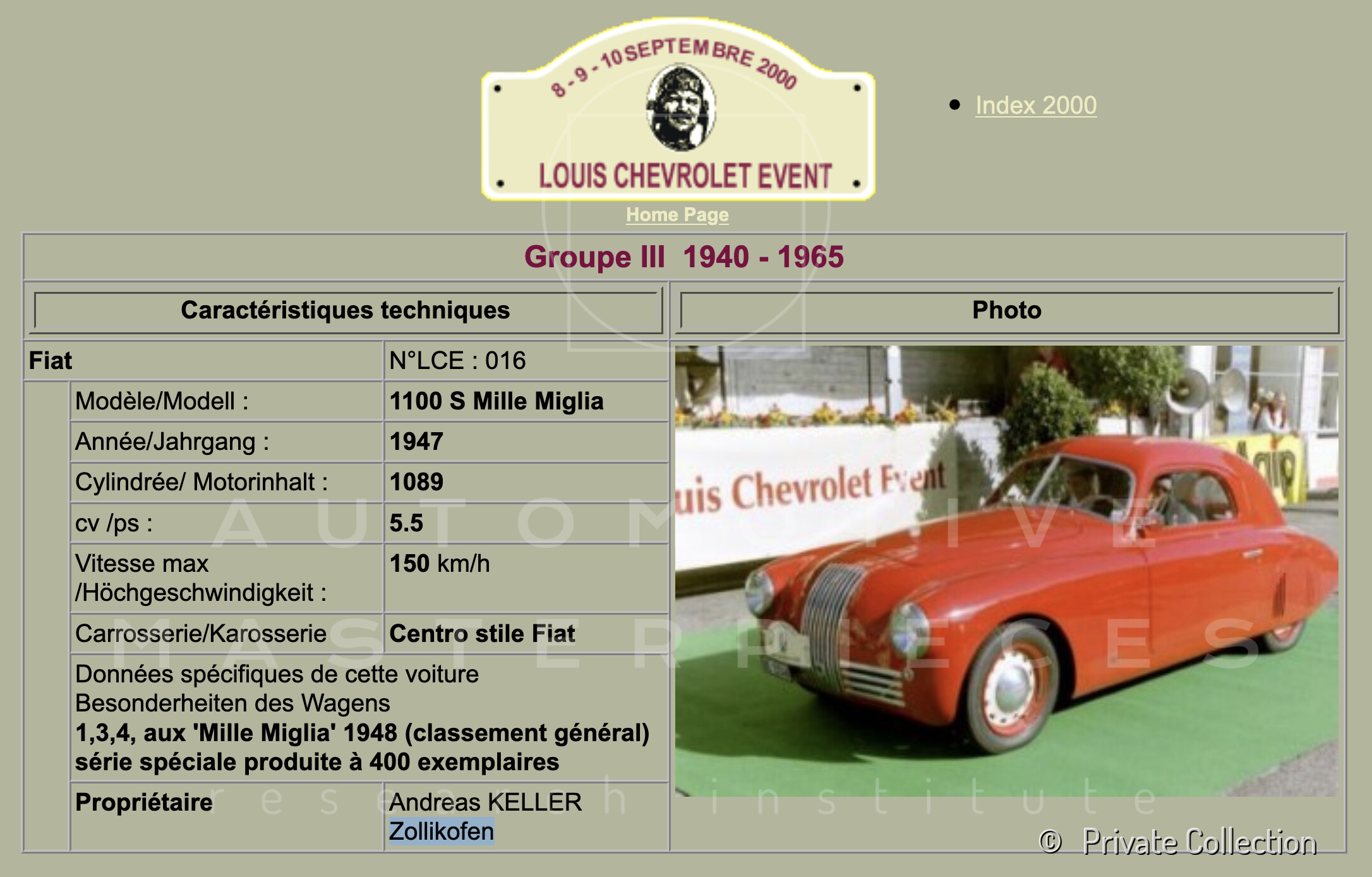 Car completely restored (body and engine) by Franco Cavalieri