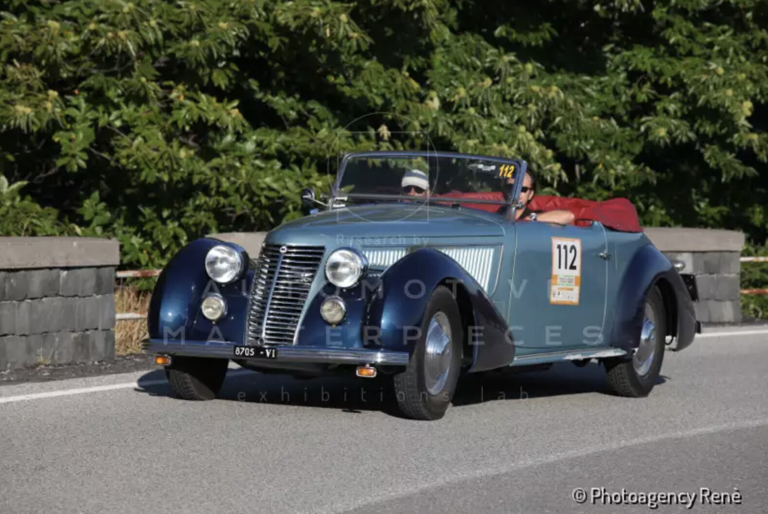 The Lancia Astura Cabriolet with chassis no. 41*2943 is a one-off car. It is dressed with an handsome two door convertible coachwork by Pinin Farina. It is finished in a two-tone blue livery with a blue soft-top and has its original red leather interior. The first owner was the famous Earl Gaetano Marzotto di Valdagno. The car was acquired in 1945 from the Italian Government by Col. George Quarles who was serving with the US Army at that time and was actively used by him in Italy and Germany in 1946-1947. The car is a comfortable four seater and is archetypal of streamlined styling of the immediate prewar years, with the folding flat windscreen giving the car a distinctively sporting look and Pinin Farina design daring to shroud the traditionally angular Lancia radiator. A particularly interesting feature is the really advanced electrically operated soft-top.