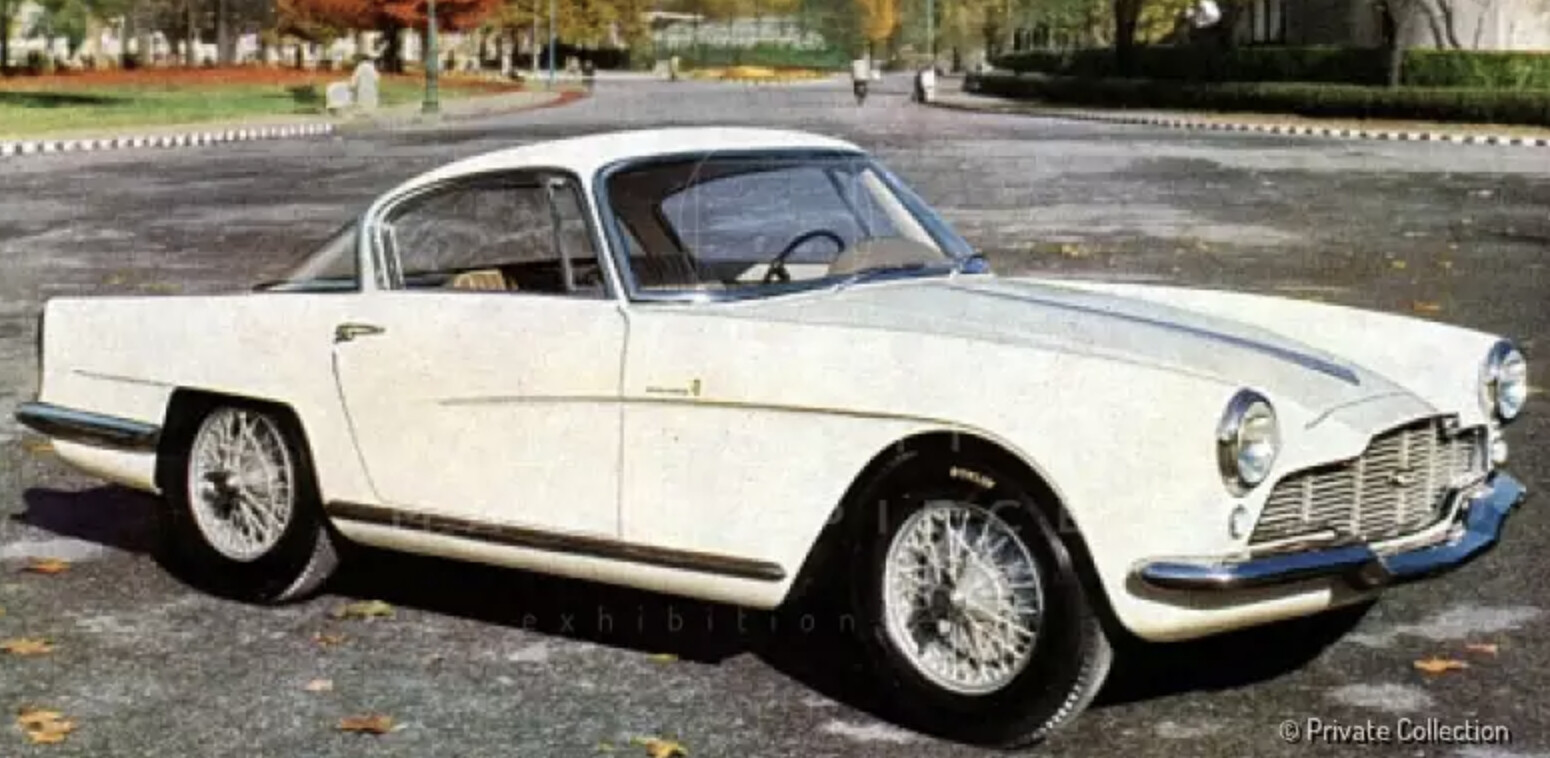 One-of-a-kind unit designed by Bertone's own Franco Scaglione in August 1954 and then delivered to Henry Pagezy of Paris the following January. Factory records show that the car was ordered by Wacky Arnolt for him but given the slightly misspelled spelling, it is believed that this customer could actually be Henri Pigozzi, founder of the Société Industrielle de Mécanique et Carrosserie Automobile, better known as Simca and it is curious that some features of the LML/765, such as the rear lights, were borrowed from Simca cars. Bertone reportedly planned to build a small run of Aston Martin based Berlinettas, but the British company refused to supply any further rolling chassis. Bertone subsequently exhibited the two-seater coupé at the Salone dell’Automobile in Torino twice, in 1957 (painted white) and 1958 (painted blue). The car later crossed the ocean and was in the US in 1976, in the hands of John G. Gyann. It was then owned by Dr. Jim Pavlatos, who undertook a first restoration. It then passed through the Chicago sports car dealer, Bill Jacobs, and finally arrived at the Blackhawk Collection. In 1987, it was purchased by Roger Karlson, who had the car for eleven years and spent considerable time and resources refining the previous restoration. The car was displayed in 1987 at Pebble Beach. In 2019, the car was purchased by a new owner, who commissioned Aston Martin specialists Kevin Kay Restorations of Redding, California, to undertake a full concours restoration. The car thus participated in the 2023 Pebble Beach Concours d'Elegance, where it was awarded First in Class. This unique body has a pronounced wraparound rear window and neatly creased fenders. The interior has a very unusual dash which looks more modern than that of the other Bertone built cars. The vehicle featured airy interiors, a long bonnet, and a short, flat boot, outlined by two slight tail fins with large lights. Powered by the renovated twin cam, 6-cylinder 2922 ccs engine (140 bhp at 5000 rpm), the car flaunted a formal balance of notable effect and some unusual solutions, like the front bumper in two separate sections. This is the only coupe built, of seven Aston Martin chassis supplied to Bertone by Stanley 'Wacky' Arnolt, that is known to exist. The car was praised as a typical Scaglione work of art, by historian Stanley Nowak in his article on the Bertone Aston Martins in Automobile Quarterly, Vol. 26 No. 4.
