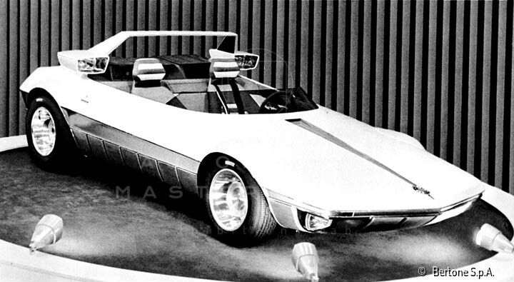 The Autobianchi Runabout is a concept car that was conceived and designed by the designer Marcello Gandini of the Bertone body shop in Grugliasco and was put on display at the 1969 Salone dell’Auto di Torino. The car, equipped with the Fiat 128 engine, was characterized by a chassis base of the Autobianchi A112 but unlike this it had a central engine and gearbox similar to the Lamborghini Miura that had been conceived a few years earlier by Gandini himself. The wedge-shaped design was also inspired by the racing boats of the period with the absence of the canonical windshield, reduced to an almost invisible lid, which highlights the presence of the large roll-bar. The headlights were also original in shape and location, mounted on the sides of the roll-bar itself, behind the driver's seat. Other references taken directly from the nautical sector were the dashboard and door panels, in soft materials and covered in leather. The prototype was the forerunner of the Fiat X1/9 presented a couple of years later, but other references will also be found in the later Lancia Strato’s.