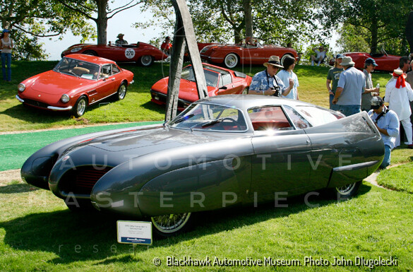 Alfa Romeo B.A.T. 5 is displayed with a price of 25,000 USD by event organizer Mr. Herb Shrinz on bealf of Mr.Stanley H. "Wacky" Arnolt