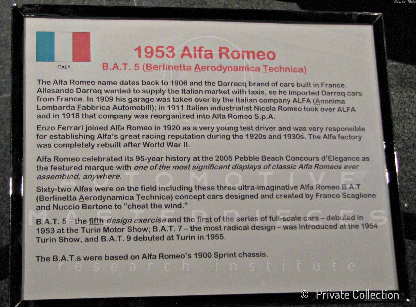 Exhibited the Alfa Romeo B.A.T 5, 7 and 9d