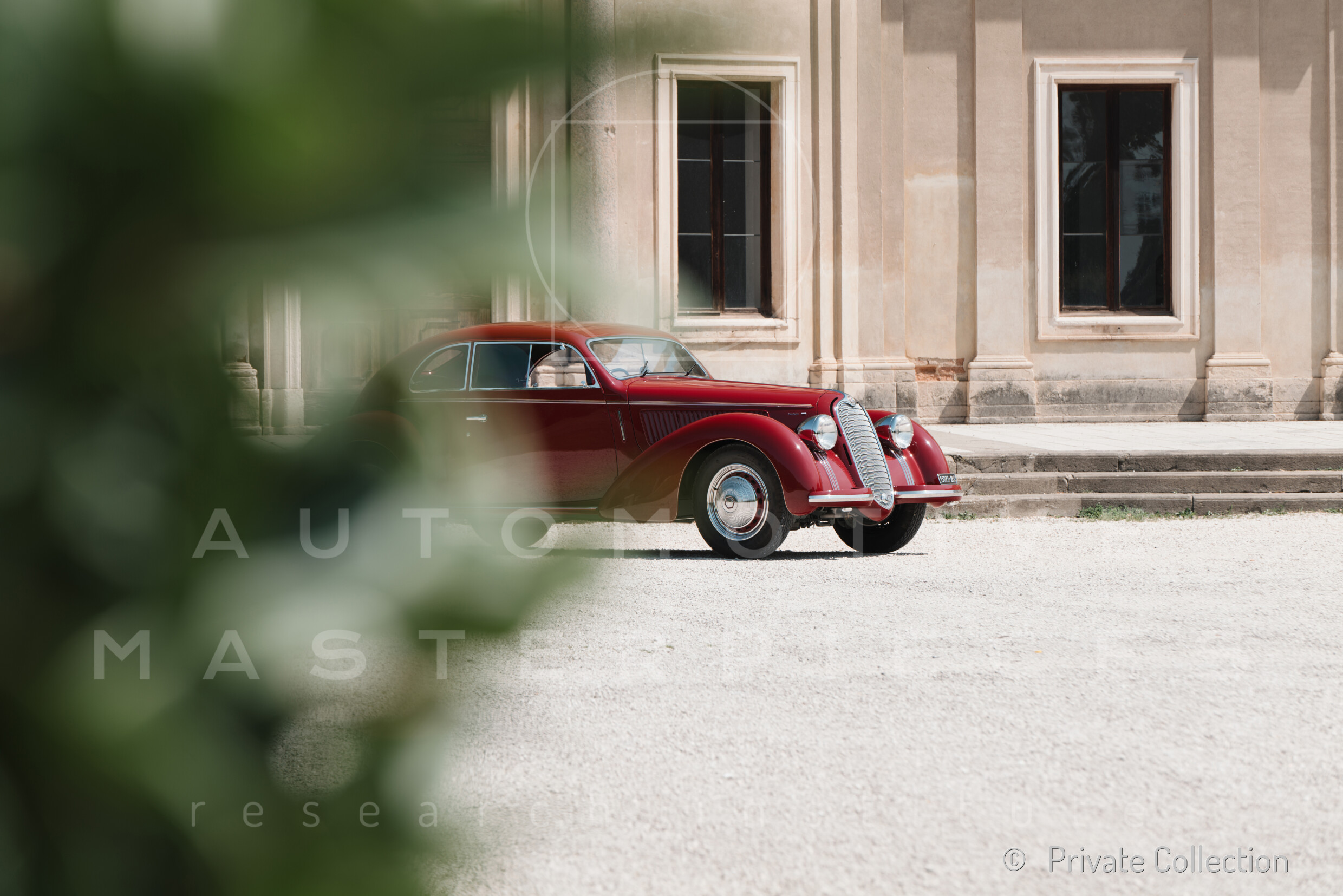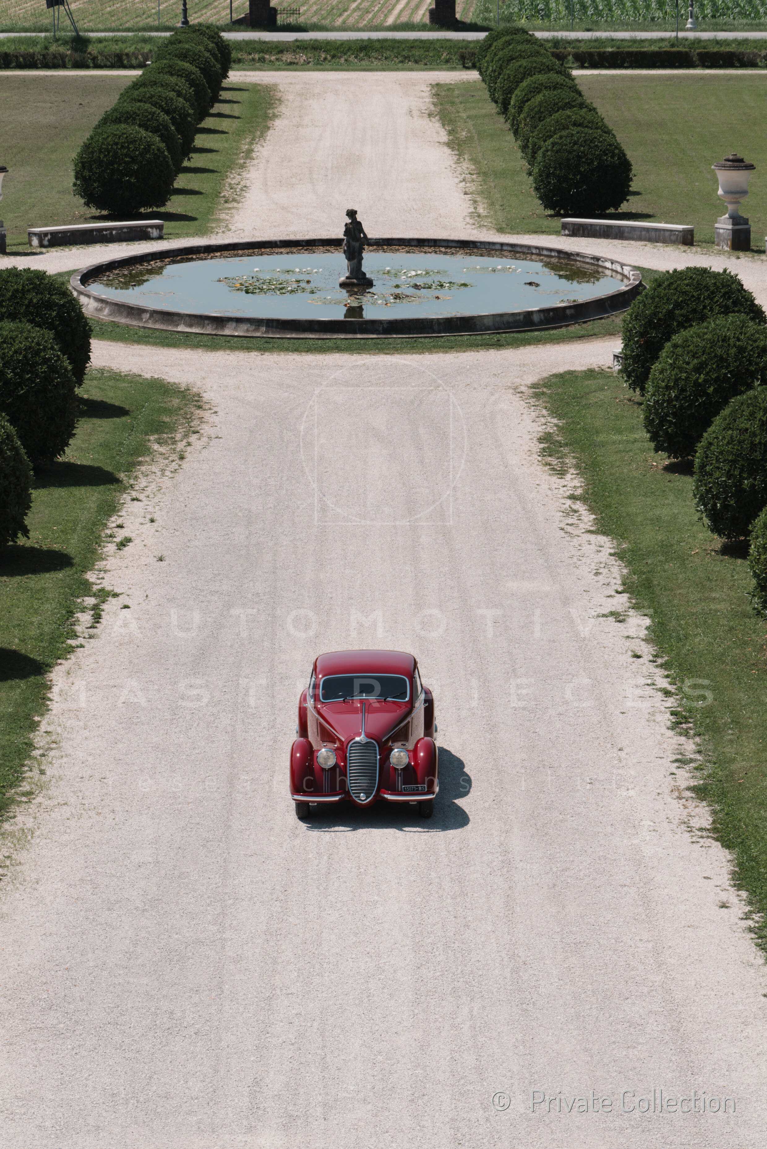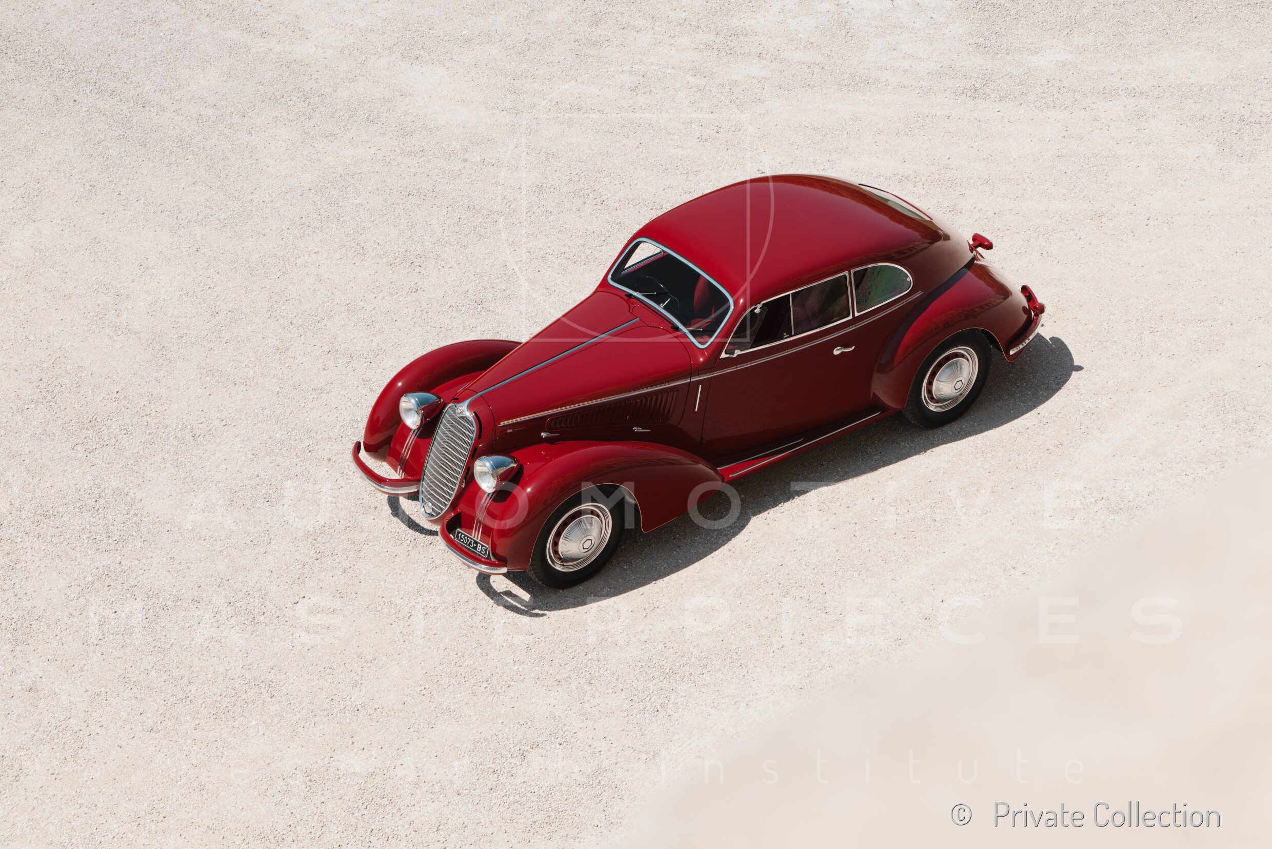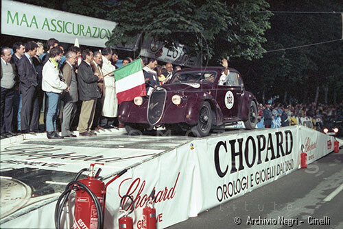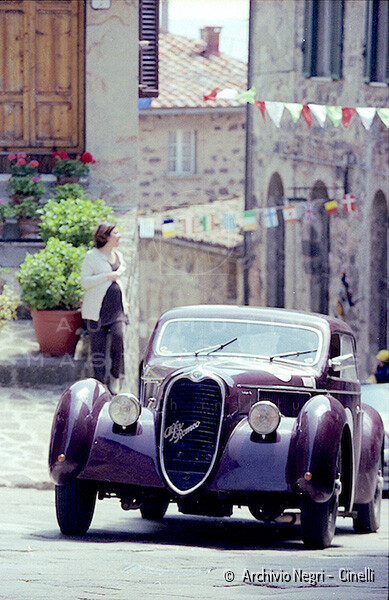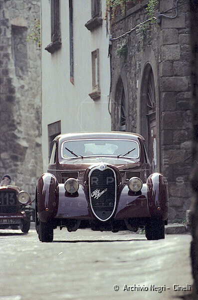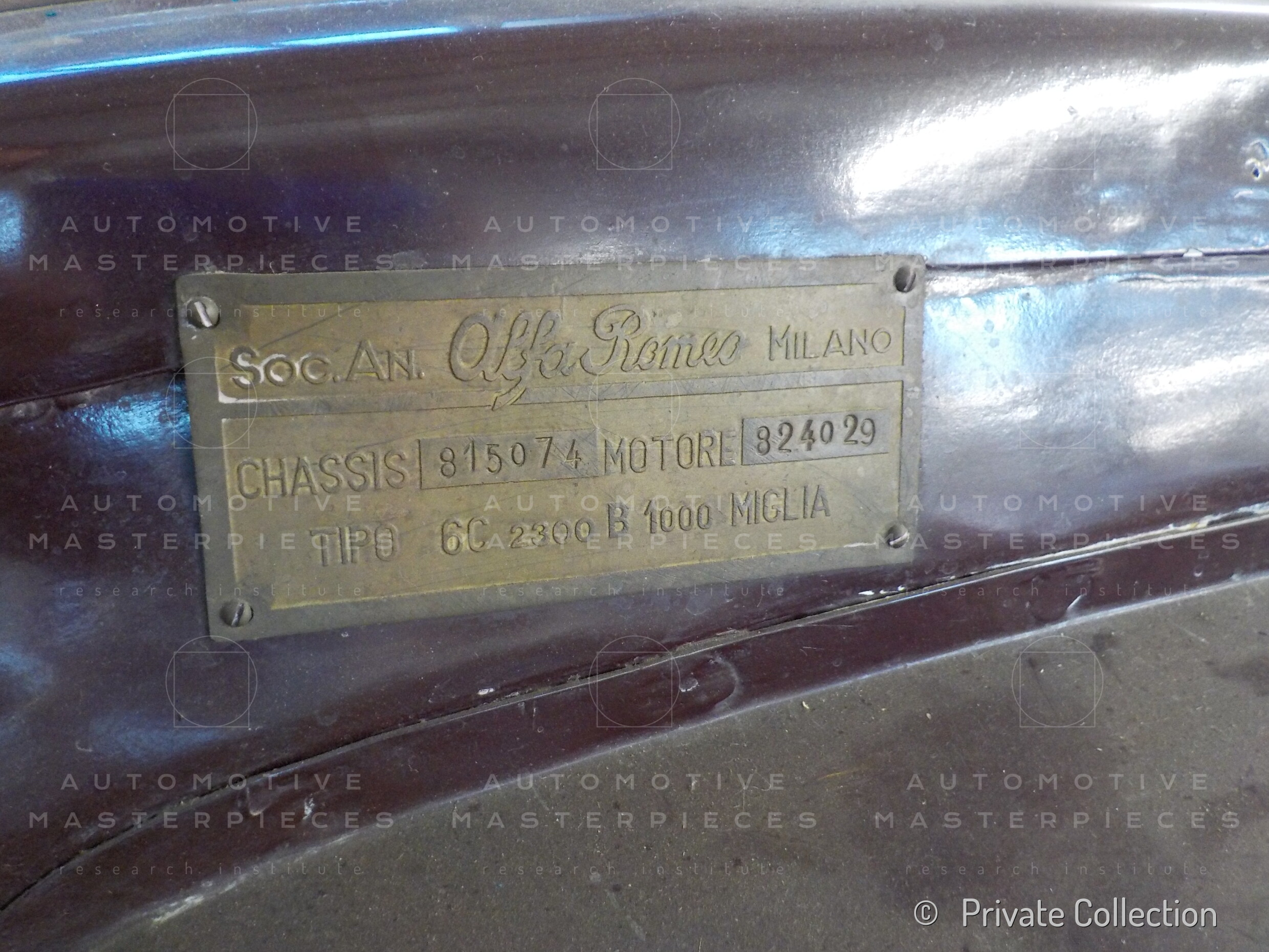 Record 1 Jun 1940 The car bearing its 1st plate (BS 15073) in an environment suitable for both Mazzotti and Lana, i.e. parked next to a Caproni Ca.310 Libeccio, a twin-engine reconnaissance plane, with the insignia of the Regia Aeronautica, on the Ponte San Pietro airfield (Bergamo, Italy). The date of the Millanta shot (June 1940) suggests that the car was already owned by Lana. Probably the license plate MI-73396 was never mounted by the Alfa Romeo dealership and Lana also waited before being able to mount the license plate SV-5912.