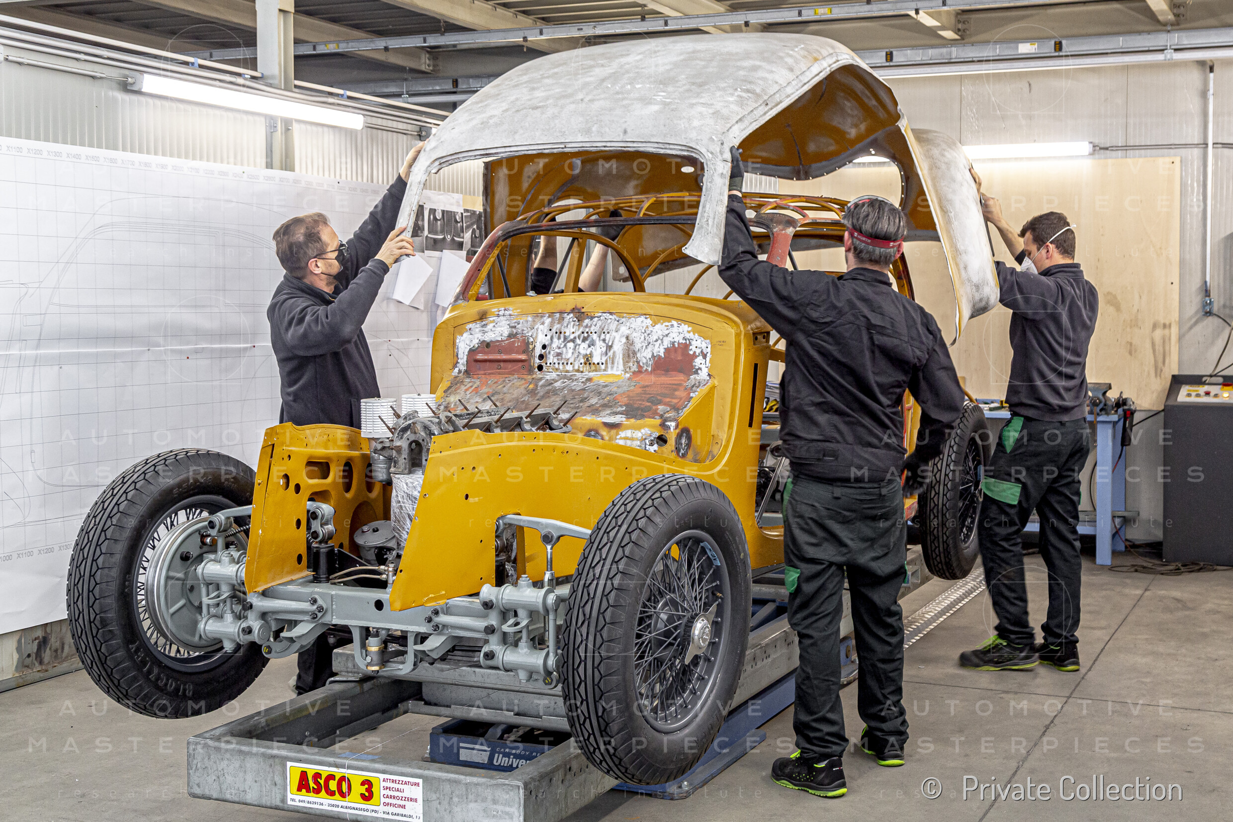 Restoration: body assembly with chassis and mechanical parts