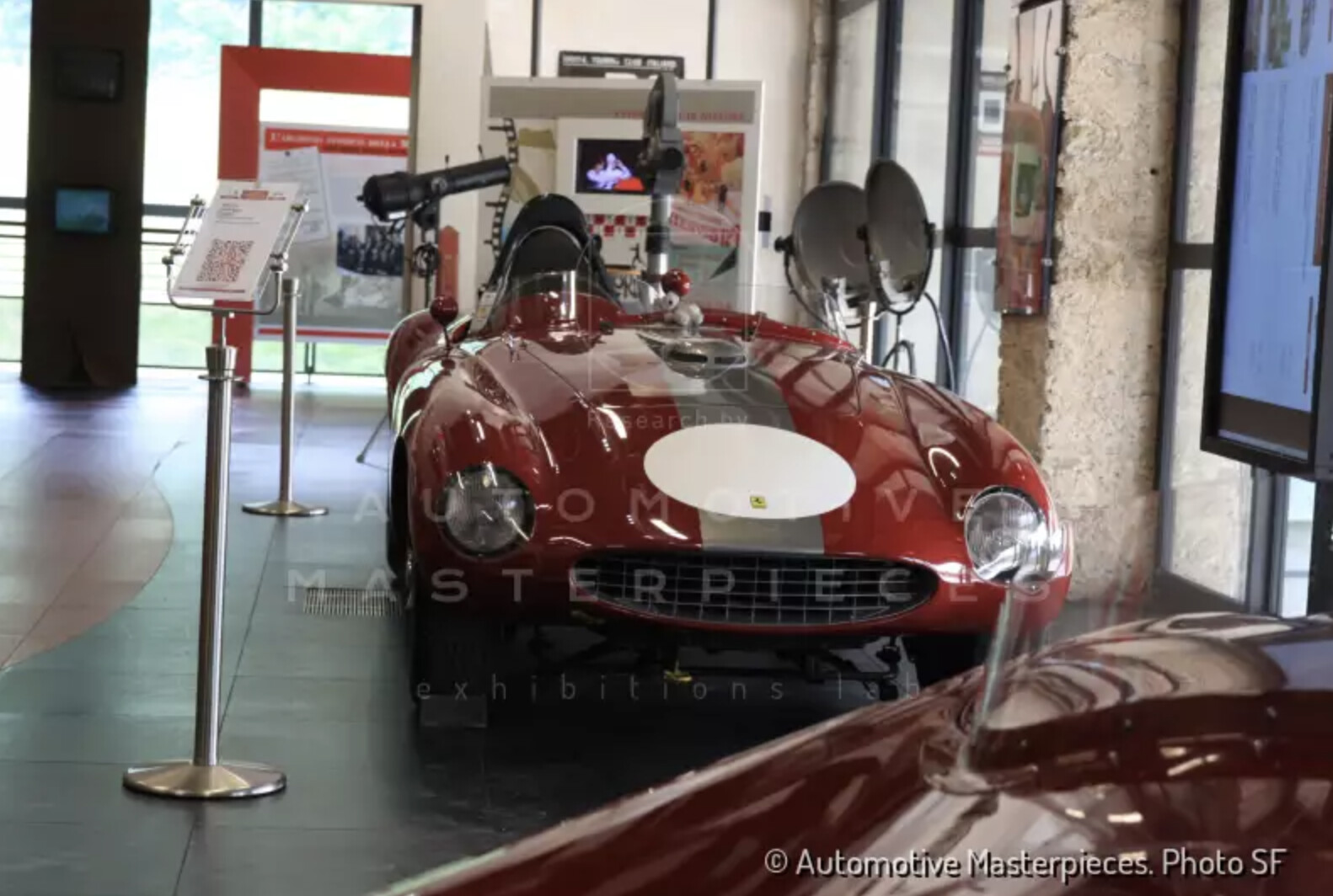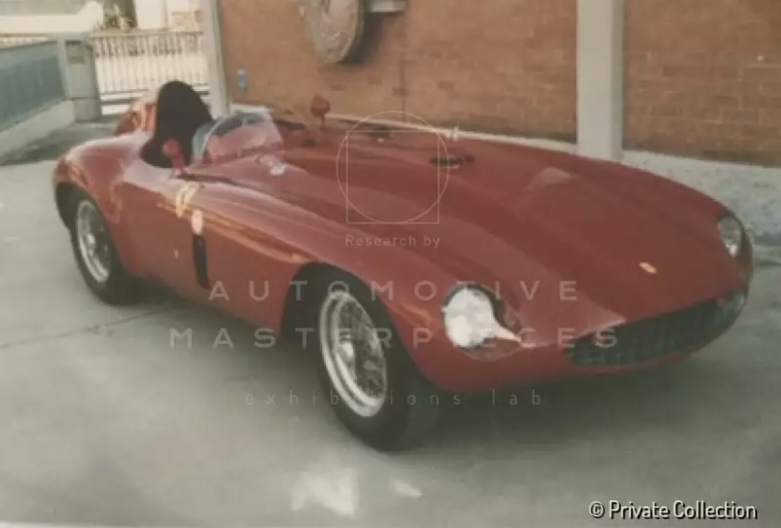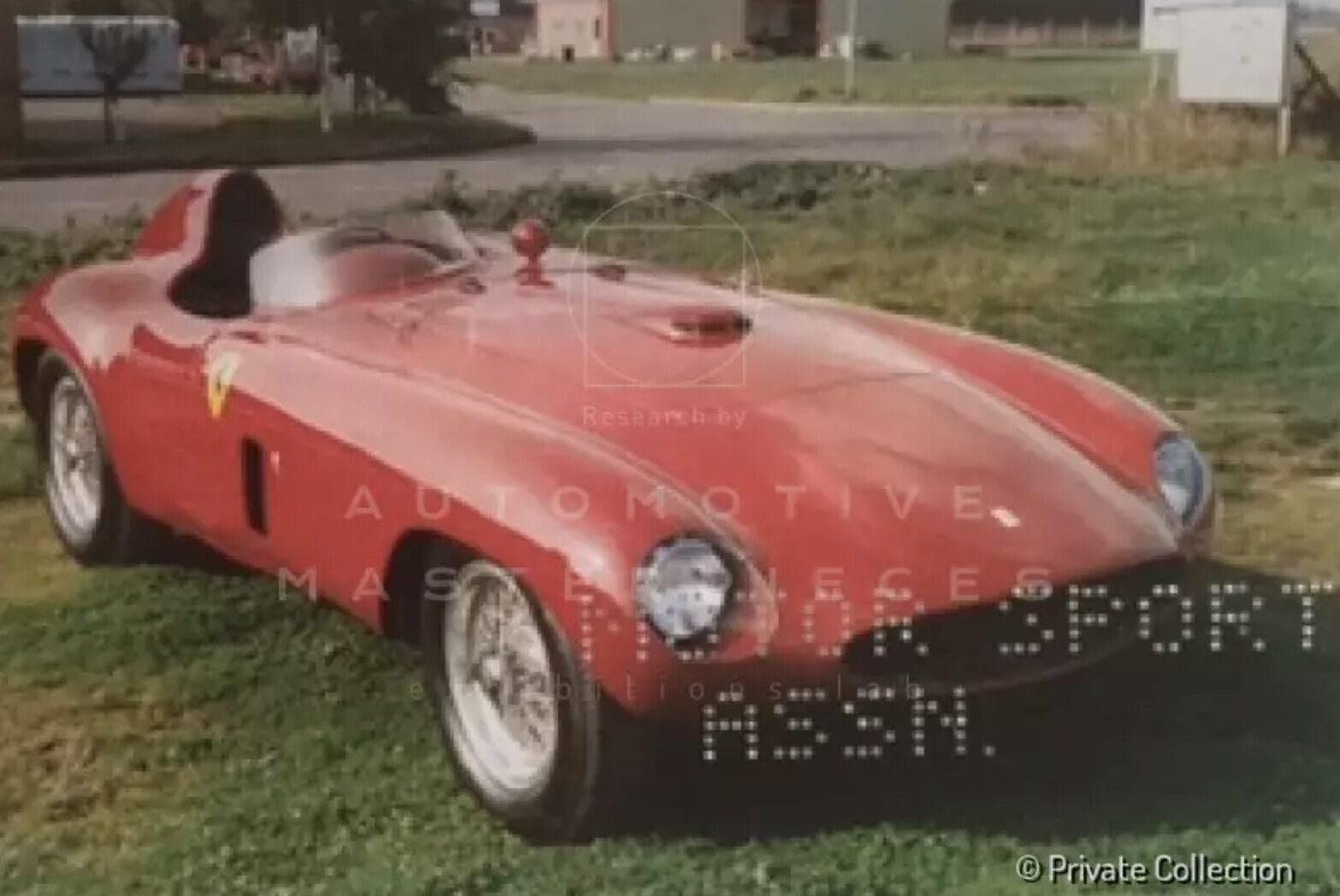Chassis 0294 AM, made its debut at 1953 Mille Miglia. One of the few Scuderia Ferrari Factory Team 340 MMs completed, it would be driven in its debut race by Villoresi, who would have Piero Cassani on board to assist with navigating duties but had an accident. On May 9th, 1953, Mike Hawthorn was entrusted with 0294 AM at the BRDC International Daily Express Trophy Race being held in Silverstone, England where won the race. 0294 AM was one of just two 340 MM Spyders given initial coachwork by Carrozzeria Touring. Although dated in design and appearance, the five year old "Barchetta" style coachwork was used for a final time in 1953. On July 6th, 1953 0294 AM was purchased by the famous Swiss gentleman driver, Hans Ruesch, for 8,600,000 Italian Lire and registered on Modena license plates "MO 30111". Ruesch would race 0294 AM on four separate occasions in 1953. His first race with the new car occurred at the British Empire Trophy, Isle of Man Race where he placed third overall. A photograph of Ruesch and 0294 AM at this race is pictured in the 1953 Ferrari yearbook. On July 12, he entered the car in the Vue des Alpes hillclimb where he easily placed first overall. On September 06, 1953, chassis no. 0294AM had an accident in GP Supercortemaggiore, at Merano. So, in 1954 it was returned to Maranello to the Ferrari factory. Ferrari substituted the damaged front oval tube with a stronger rectangular tube. The chassis has been repaired at Ferrari factory, as reported on the car's foglio di montaggio. Then 0294AM went to Scaglietti to be rebodied as Monza to replace the now highly dated and damaged touring body. After repairs and modifications were completed by Ferrari, the car was resold to Luigi Chinetti in 1955. After ten years it became part of the collection of Dieter Holterbosch, famous businessman. An important note: differently from what some sources report, in mid 80's when restored the engine was rebuilt and was slightly over sized, giving it a displacement of 4.2 litres, but was never a 375 engine. Also the gearbox & brakes are the same 340 MM type and were not upgraded to 375MM specification. The car had in the years an intense life in re-enactment events for historic cars. The car is featured on Mille Miglia's Chassis Volume I, edited by Automotive Masterpieces.
