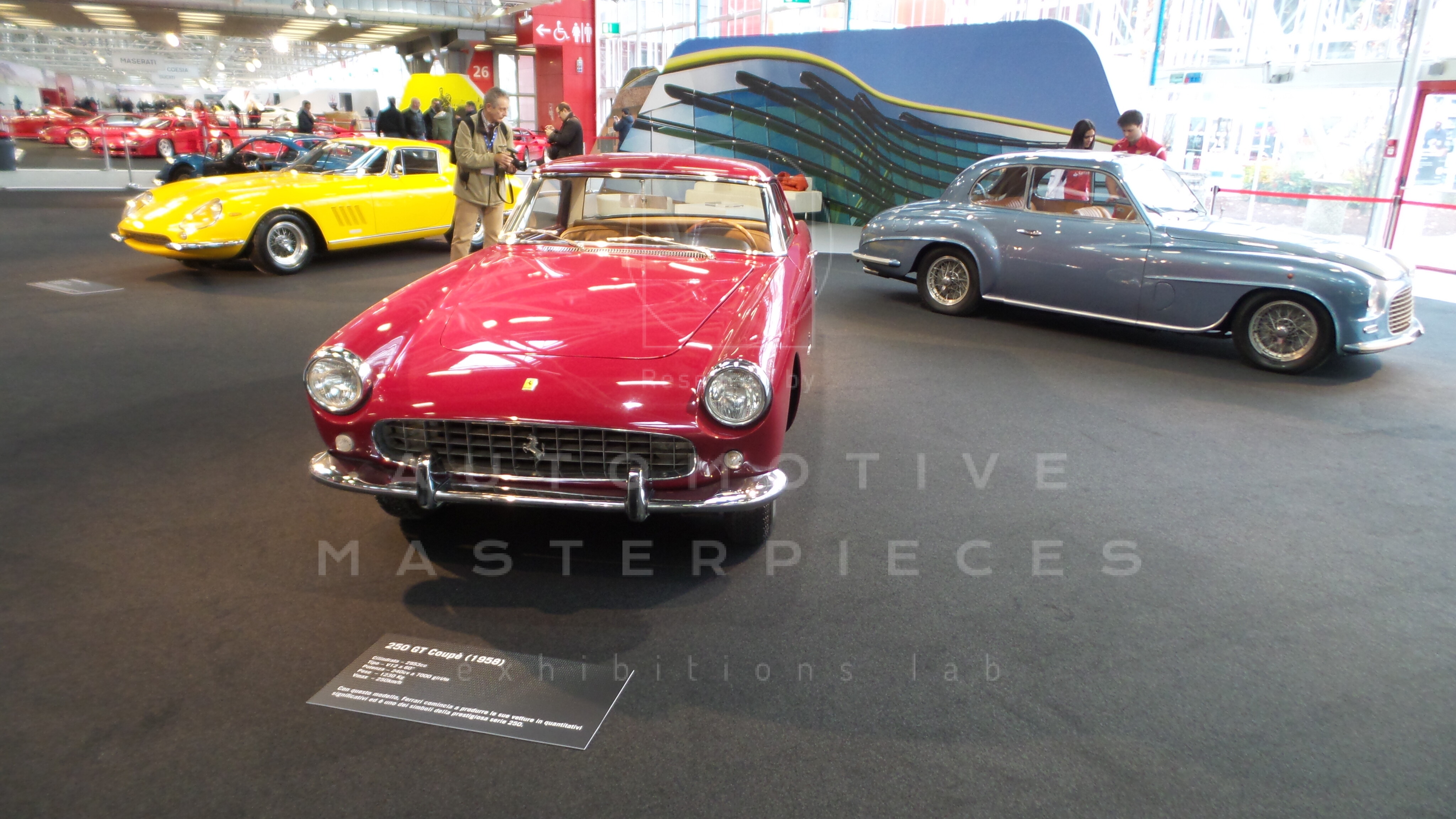 The Ferrari 250 is a series of sports cars and “granturismo” built by Ferrari from 1952 to 1964. The company's most successful early line, the 250 series includes many variants designed for road use or sports car racing. 250 series cars are characterized by their use of an engine designed by Gioacchino Colombo, with the exception of the 250 Europa. This engine was the “Tipo 125” with a displacement of “just” 2953 cc, but it was light and powerful. The 250 series was replaced by the 275 and 330 series cars. Many of the 250s shared the same frame and wheelbase, and there were two versions available, short frame (2400mm) known by enthusiasts as "SWB" (short wheel base), or with long frame (2600 mm) known as "LWB" (Long Wheel Base). Many of the competition and convertible versions used the short version.