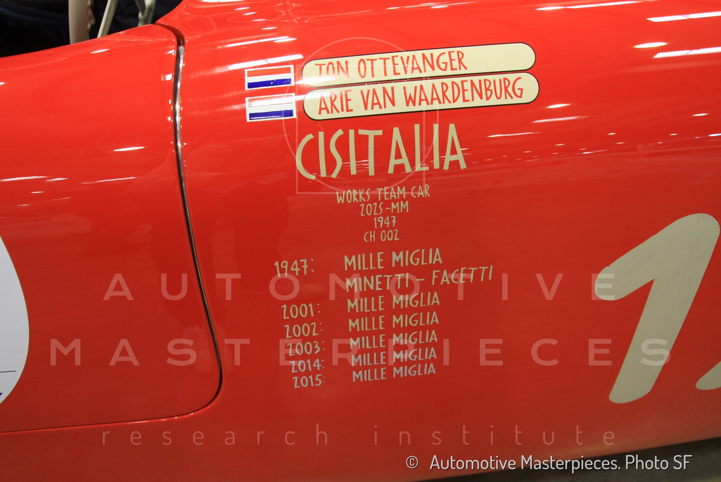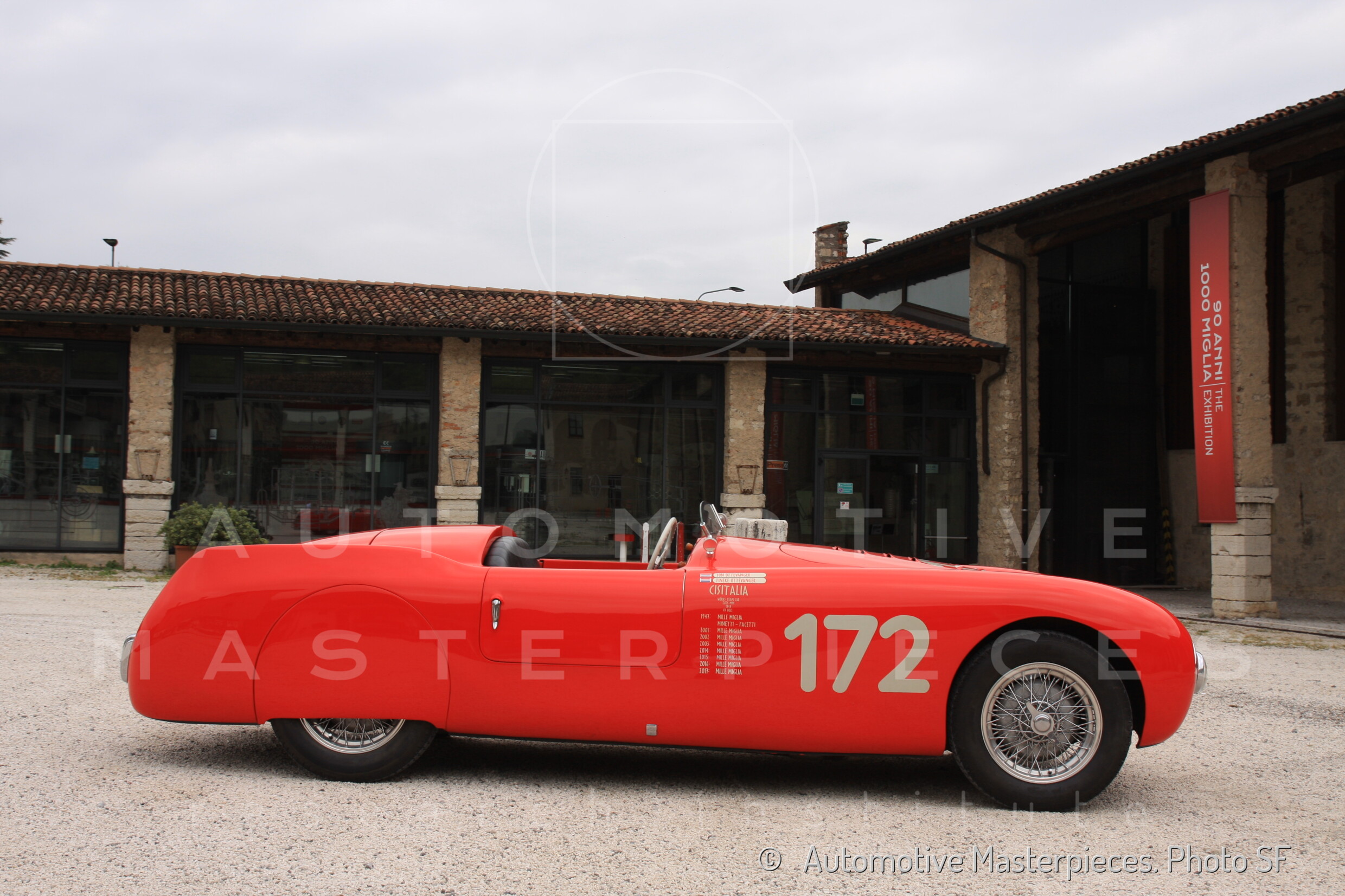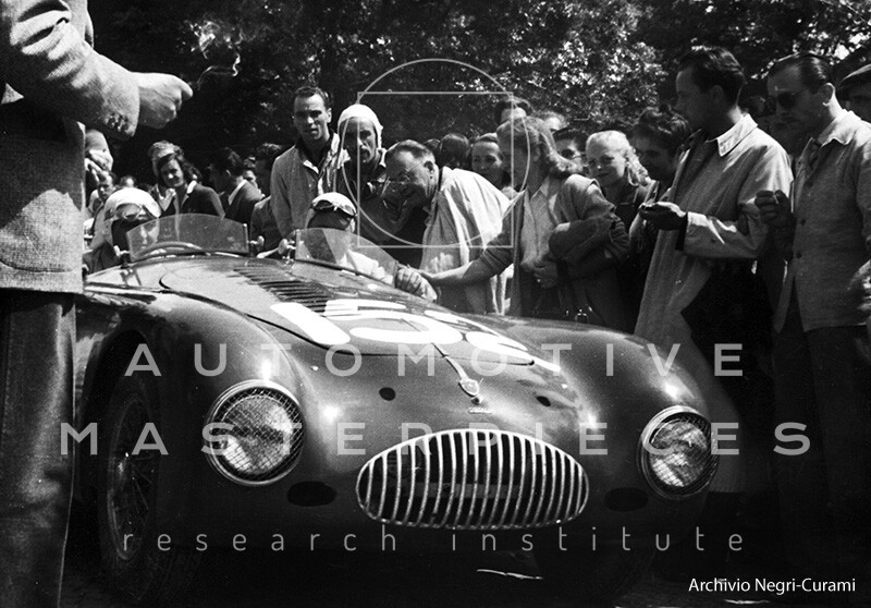 Prize: "Targa Affer" offered by Comune di Milano to the first classified Milan crew. - Cisitalia fielded five cars, that year. Besides 002S there were: the Berlinetta Aerodinamica entry n°150, assigned to Taruffi-Buzzi, the Spyder Mille Miglia corta (short) entry n°164 surnamed “Razzo” of Dusio-Macchieraldo, the Berlinetta “Cassone” entry n°175 driven by Bernabei-Pacini, the Spyder Mille Miglia entry n°179 in the hands of Nuvolari-Carena. Nuvolari was 2nd, and the Berlinetta “Cassone” was 3rd overall. They ranked also 1st and 2nd in 1100 Sport Internazionale Class. 002S was 3rd in 1100 Sport Internazionale Class.