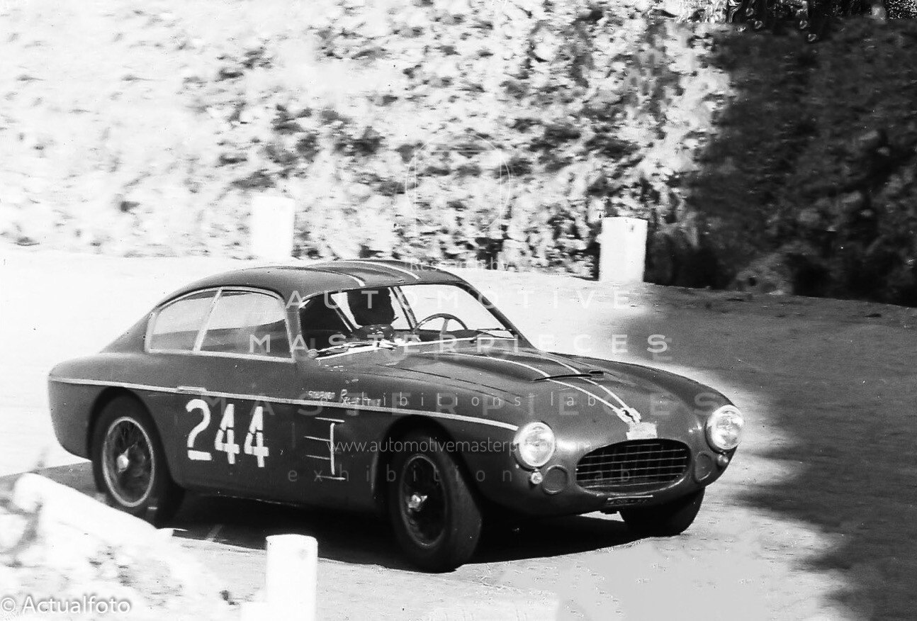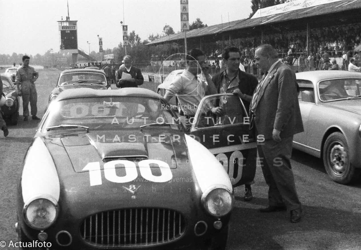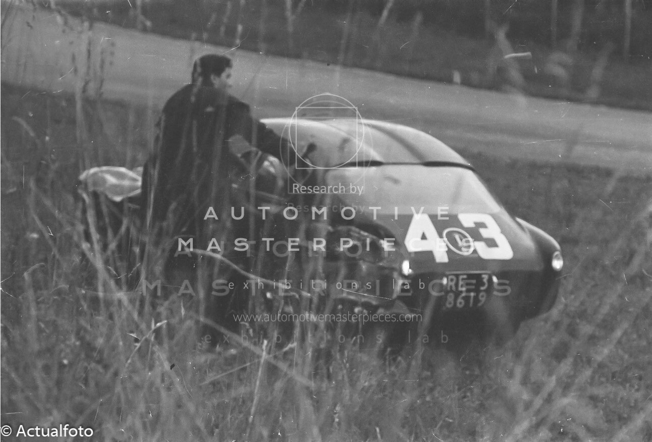 Chassis 106.000083 was delivered by Fiat to Zagato as rolling chassis in May 29, 1954. It is the 5th of only six 8V with double-bubble roof (000026, 000078, 000081, 000082, 000083, 000084). Chassis 106.000083 was very similar to 000084 Elio Zagato's winning 8V. The differences are the extra air ducts between grille and head lamps and the two window wipers with respect to the three on the Elio's car. One of the other details on this car is the checkered paint job on the nose, a characteristic also present on 000081. The first owners were Carrozzeria La Zagato and Franco Cornacchia who raced it several times with PROVA plates as a kind of publicity stunt to promote the Zagato cars. In 1956 106.000083 started an impressive racing career in the hands of Gianfranco Bonetto, Renzo Cigarini and Franco Lisitano. It ran from 1956 to 1965 several races including Coppa Inter-Europa, Mille Miglia and Targa Florio.