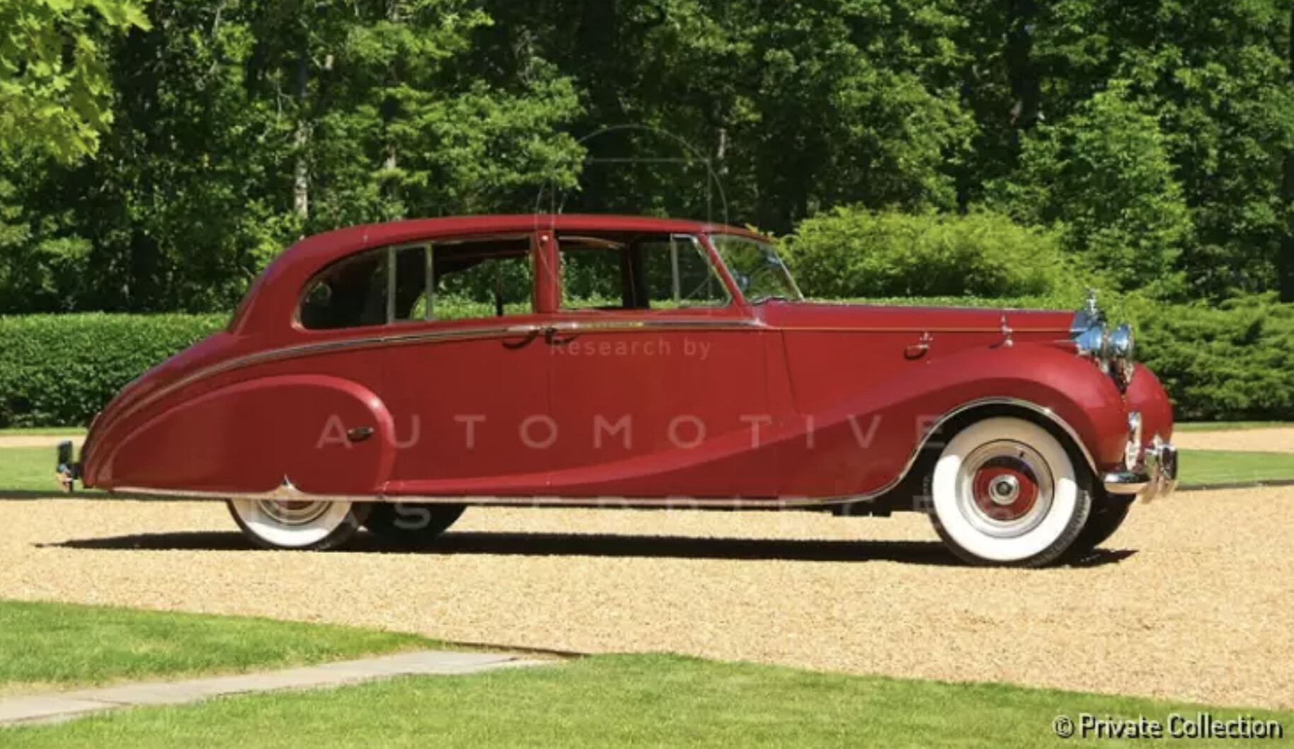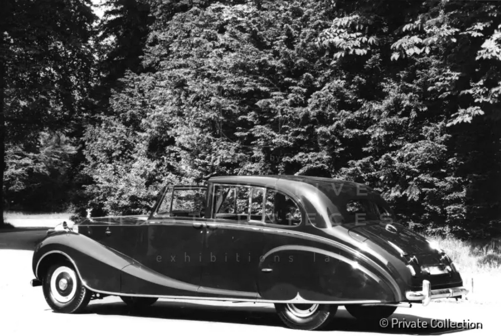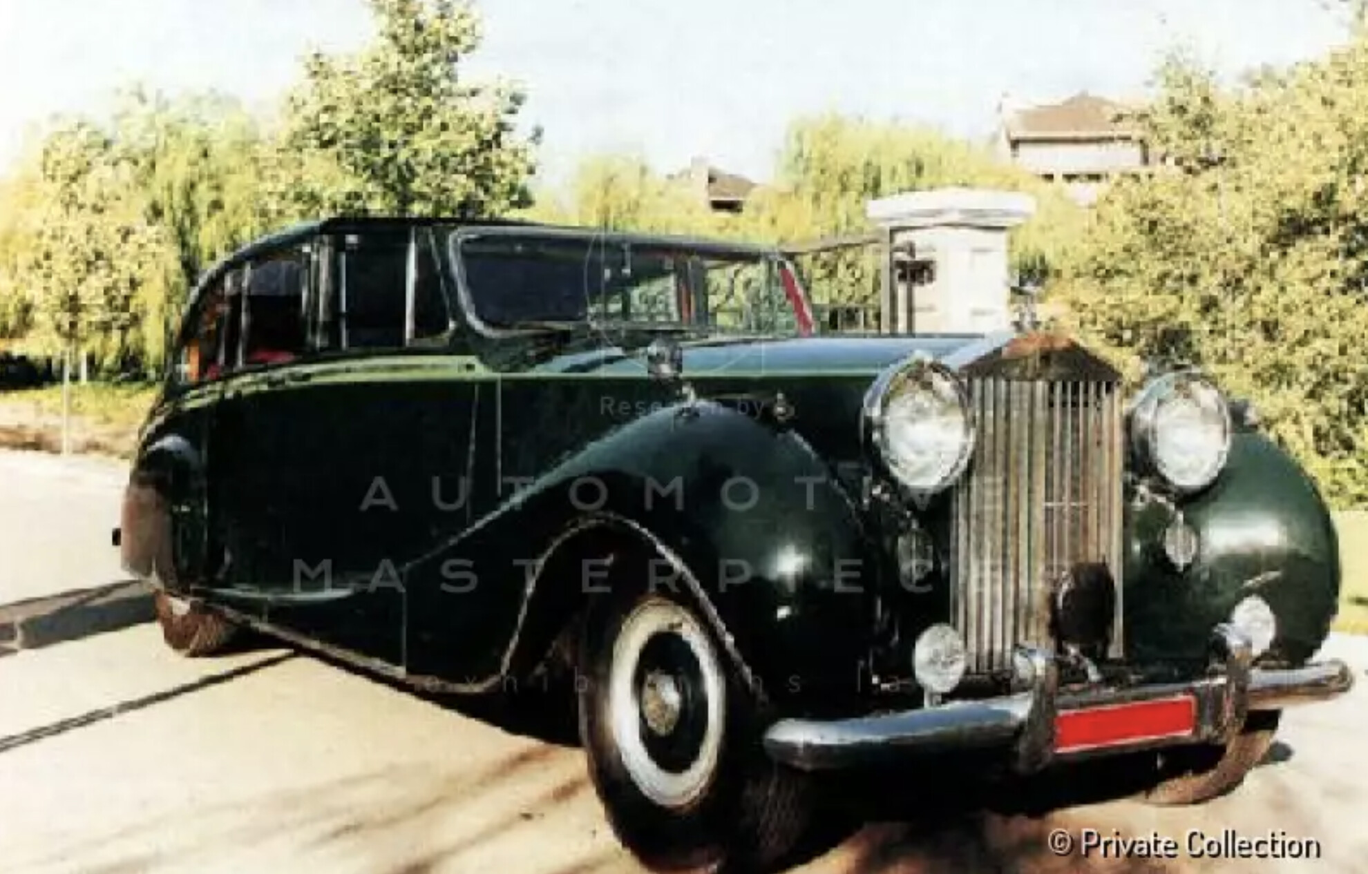 Chassis No. 4AF20. Rolls-Royce received an order from Franco Britannic Auto of Paris, the agent for the Aga Khan III, on April 25th of 1950, prior to the first Phantom IV reaching its intended customer. The Phantom IV purchased by Aga Khan III, the 48th Imam of the Nizari Ismaili community, was a Sedanca de Ville wearing coachwork by Hooper. This is the only one with this body style and it took more than two years to build it. It was constructed on the original 'A-Series' chassis and supplied with a special steering position, French-type headlamps, US-type bumpers, flog lamps and a continental chassis plate. The elegant design was penned by Osmond Rivers, chief designer at Hooper. It has long flowing front wings and articulating rear-wheel covers that open in a most unorthodox fashion, allowing full access to the rear wheel. It also features the Hooper-patent de Ville extension over the front seat which, when not in use, is hidden by sliding in one piece under the rear portion of the roof. The front doors were designed to be large and to open as wide as possible. All doors were fitted with the best quality locks, concealed hinges, Hooper-pattern streamlined outside handles, and combined remote control and pull-handles to all doors. Inside, there is room to accommodate three passengers on the rear seat with two occasional seats facing forward and designed to fold flush into the back of the division. There are removable shutters which can be fitted to the quarter windows. Also increasing the privacy for the occupants, there is an electrically operated shade which covers the rear window. All windows, including the division, were electrically operated and controlled by self-canceling switches. All window mechanisms were also fitted with a manually operated winding device for use in an emergency. The armrest in the rear seat contains an adjustable mirror, silver brush and comb, two glass jars and a sterling silver compact. All of these items were engraved with Aga Khan's royal crest. Rear passengers were also treated with telescopic ashtrays, lighters and two small tables which sung from the division above the occasional seats. There is a cabinet of polished French burr walnut that contains a full picnic set, complete with two thermos flasks, two sandwich boxes, four plates and one nest of four silver breakers with gilt interior. The cabinet illuminates with the opening of the door. The vehicle was originally finished in dark forest green with a lighter olive green band at the waistline to match the Aga Khan's Phantom III. The rear cabin was upholstered in Connolly's red leather throughout with red cloth headlining and matching mohair rugs, loose covers, squabs and cushions. The royal crest was applied to the doors. The work was completed in the early 1950s and it was loaded aboard the S. Maidstone on April 26th of 1952. Its journey took it to Villa Yakimour in Cannes, France. It spent most of its early life along the Riviera. Upon delivery, it was registered in France and retained at the Aga Khan's estate where it served as the transportation of choice for the immediate family and their guests. Presumably the car warranted the royal family’s full approval because it stayed in the Aga Khan’s possession for the rest of his life. When Rolls-Royce has sold the car to Aga Khan, they had included a clause which stated he was not to sell the car. After he passed away, it was used for few years and then sold by his widow Her Highness the Begum Omm-e-Habibah. The car is currently exhibited at the Rolls Royce museum in Munich Germany. Another Rolls Royce Phantom IV is also included within Mr. Ion Tiriac’s car collection, previous owned by Ernest Hives, Rolls Royce director, then to The Princess Marina and The Duchess of Kent. The Tiriac Collection is the only current gallery including all 6 Phantom models of the I-VI series.
