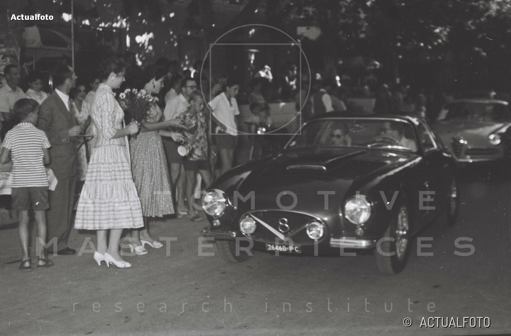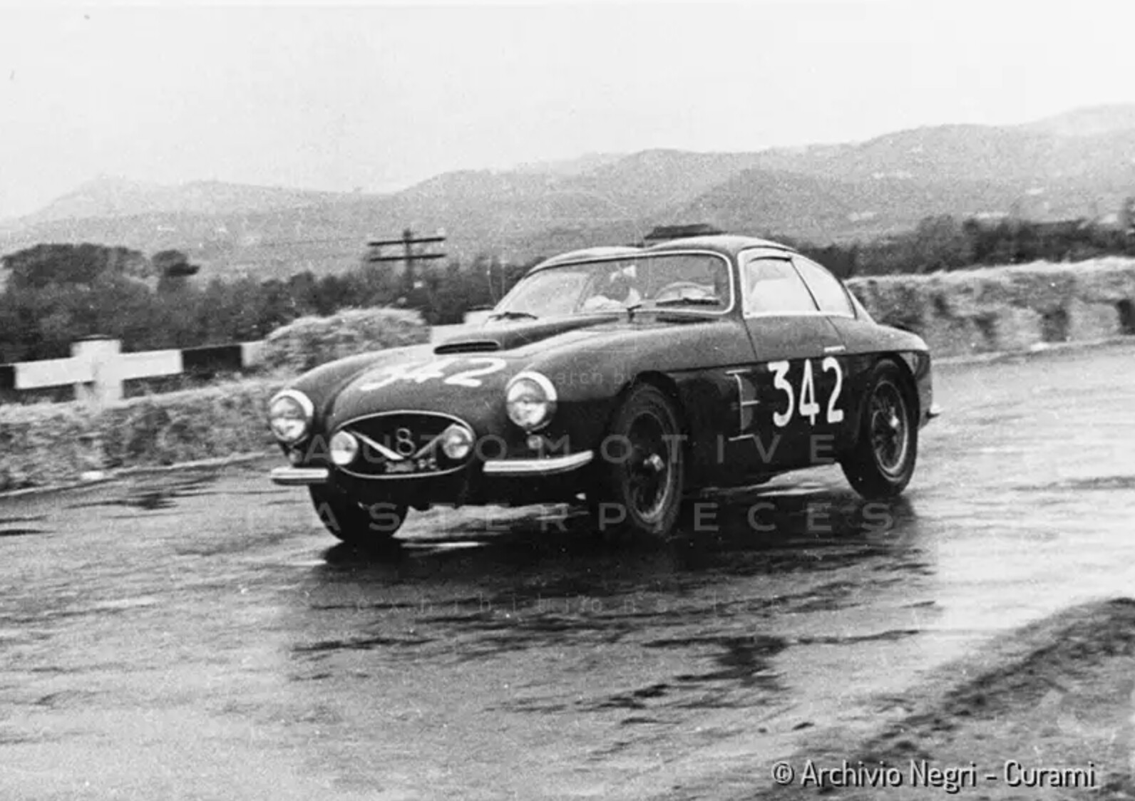 On January 2nd, 1956, chassis 106*000078* was delivered to Carrozzeria Zagato for assembly. It was the second of the six “double bubble”. The body was all-aluminum with clean, ‘rationalist’ aerodynamic lines, flush door handles, plexi-glass windows, a large air intake on the bonnet and an oval grille that incorporated the fog lights. On this car Zagato introduced side vent with three horizontal blades, to extract hot air from the engine bay; it closely resembled sn 106*000026*, which had four chrome blades instead of three. The V8 engine developed 115 hp, ten more than the one installed in earlier examples. The car was “born to run” the Mille Miglia and assigned by Zagato to Count Dore Leto di Priolo, racing for the Scuderia Ambrosiana but plans suddenly changed. On April 21, 1956, Elio Zagato, as a member of the Scuderia Ambrosiana, sold the car to his teammate Mario Muselli, through Franco Cornacchia’s FIAT dealership for 2,505,000 Lire. Muselli registered it with its first plate PC 26460 and applied to participate in the 1956 Mille Miglia. The car raced with number 342, driven by Mario “Wotan” Ferrini and Sergio Rabuffi for the Scuderia Sant Ambroeus, achieved a 47th place OA and 9th place in the GT up to 2 liters class. Following weeks, chassis 106*000078* shed its race car guise and, as an attractive sports car, participated in the Concorso Internazionale d’Eleganza per Automobili in Rimini. The car, with Sanzio Nicolini, took a 1st place in the “two-door, two-seater closed sports car” class, demonstrating its. Zagato’s “essential beauty”. Afterwards, it was registered in Rome to Pietro Bernabei for a short period and soon sold to Giuseppe Esposto of Ancona, where the car remained for about ten years, changing hands. In September 1960 it went back to races, participating in the II Coppa Fagioli with its owner, the Scuderia Marche’s driver Lanfranco Revel who easily took the overall victory. Chassis 106*000078* was sold a few months later to the Forastieri dealer and in January 1962 to Franco Mercatali. According to historical sources, the 8V was first entrusted to specialist Ovidio Pacini to fine-tune the mechanics and was modified by a local coachbuilder, maybe following an accident, with a new front end vaguely resembling the Ferrari by Pininfarina of that era. Mercatali participated with the now modified car in the VII Coppa Azienda di Soggiorno San Benedetto/Acquaviva hillclimb. Despite a spin during the race, he was 4th overall and 1st in the GT class. On September 23, Mercatali was at the IV Coppa Luigi Fagioli, achieving a 27th place overall and 1st in the 2-liter GT class. Mercatali then sold the 8V to Enrico Saviotti; the car passed in 1966 to Franco Cardinali and was purchased by Remo Tomassini for 200,000 lire, in March 1971. The chassis 106*000078* was no longer competitive but, it gradually became recognized as a “classic”. In the second half of June 1977, it participated in the first re-enactment of the Mille Miglia on the original Brescia-Rome-Brescia route, beginning a second life in events for historical cars. Once again, the car was both racing and showing in concours d’elegance. In 2016, its current owner entrusts some of the best contemporary restorers a complex and rigorous thorough restoration of the car, to return to its pristine shape. The long and meticulous operation was ended in 2023. The car was published on the Mille Miglia’s Chassis book, volume II and on May 3rd, 2024, received a Rina Certificate for the historical research conducted by Automotive Masterpieces.