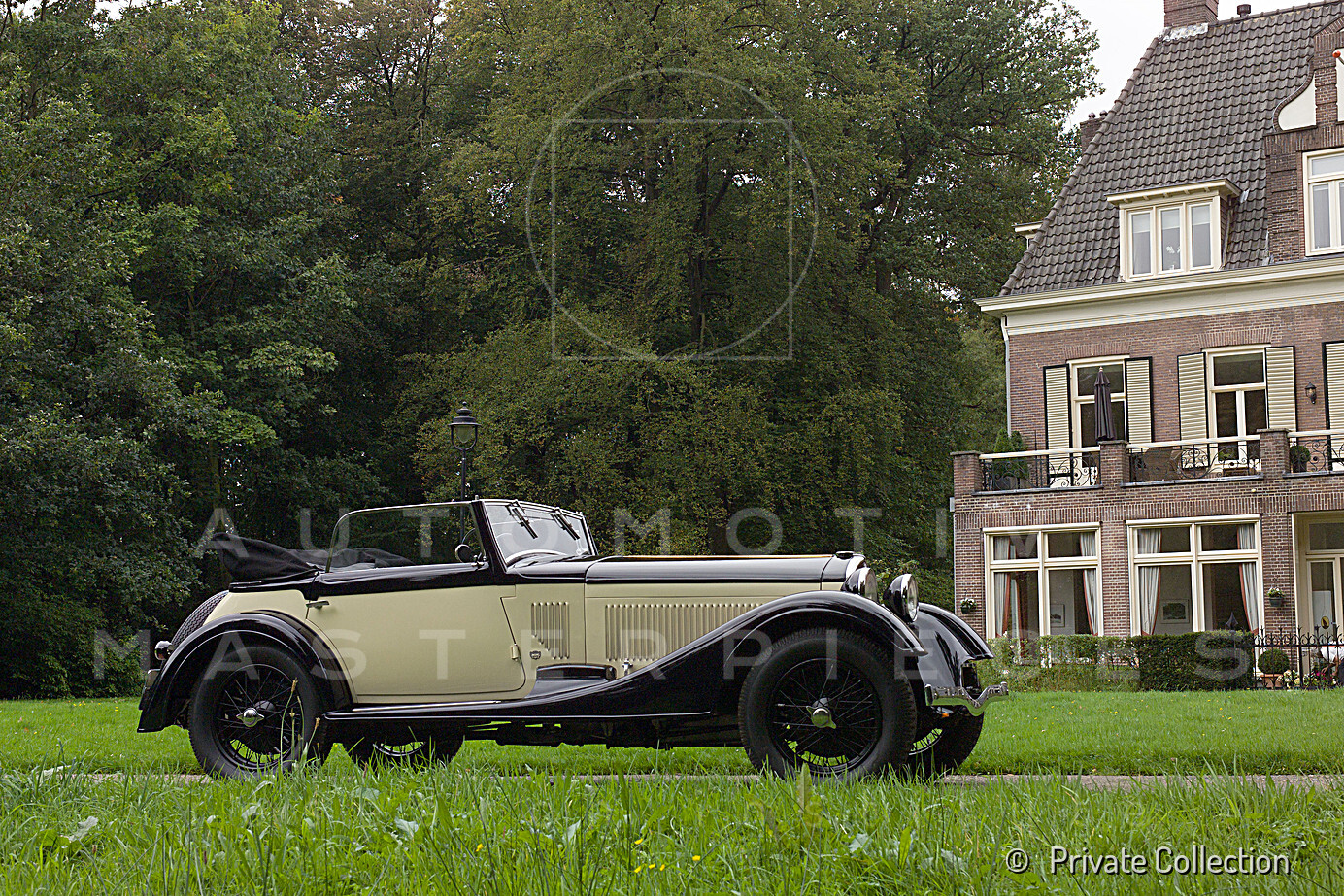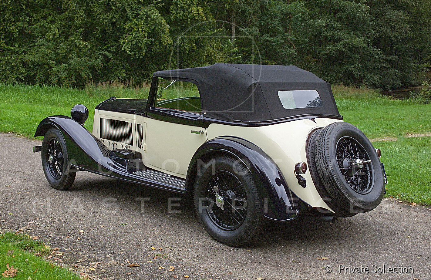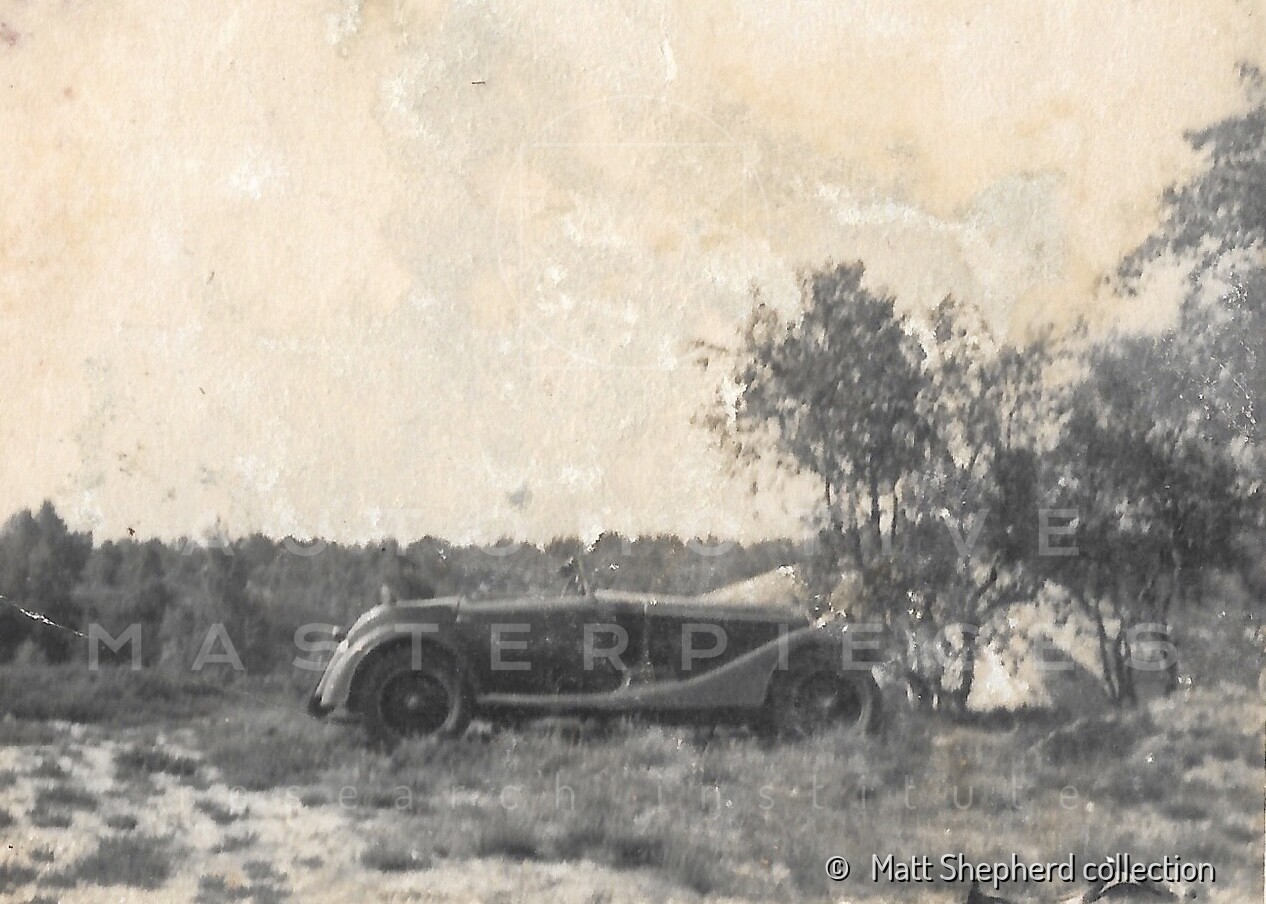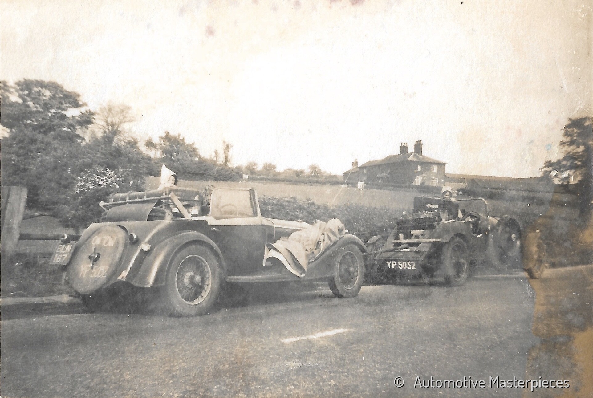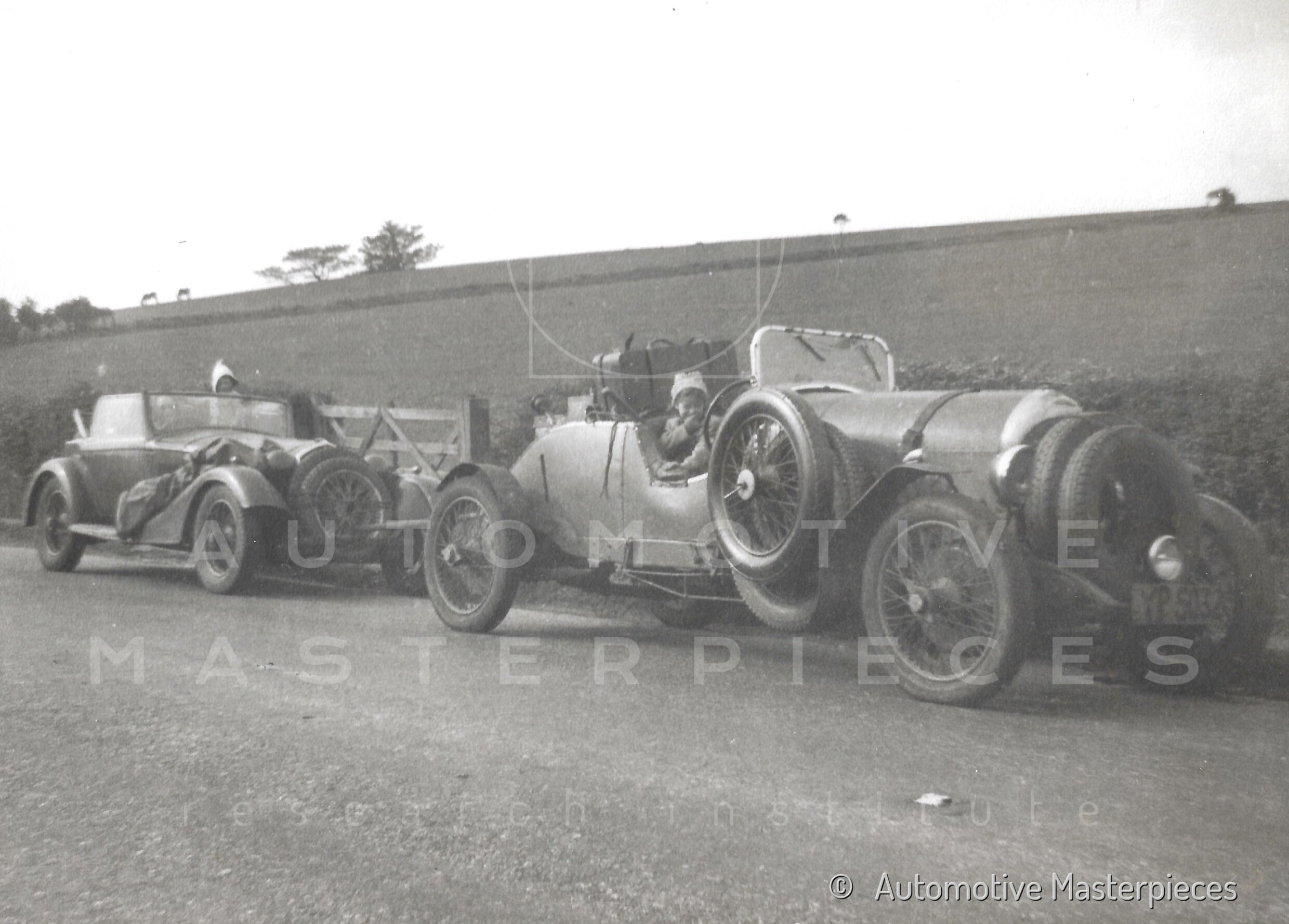 1950 - 1926 Bentley 3 litre (chassis no. RT1537) and 1933 Alfa Romeo 6C 1750 Gran Sport (chassis no. 121215037). Looks like this pair are off somewhere for the weekend, and expecting tyre problems, since both have a couple of additional spare tyre placed in front of the grille. The Alfa Romeo have the rounded covers on the headlights and seems to be towed by the Bentley in that very moment, with childrens waiting onboard. The photos are probably early post-war and the Bentley had already lost its Carbodies saloon body, it now sports a Vanden Plas style tourer body. The Alfa Romeo with Castagna coachwork was at this point owned by Major Money. View all