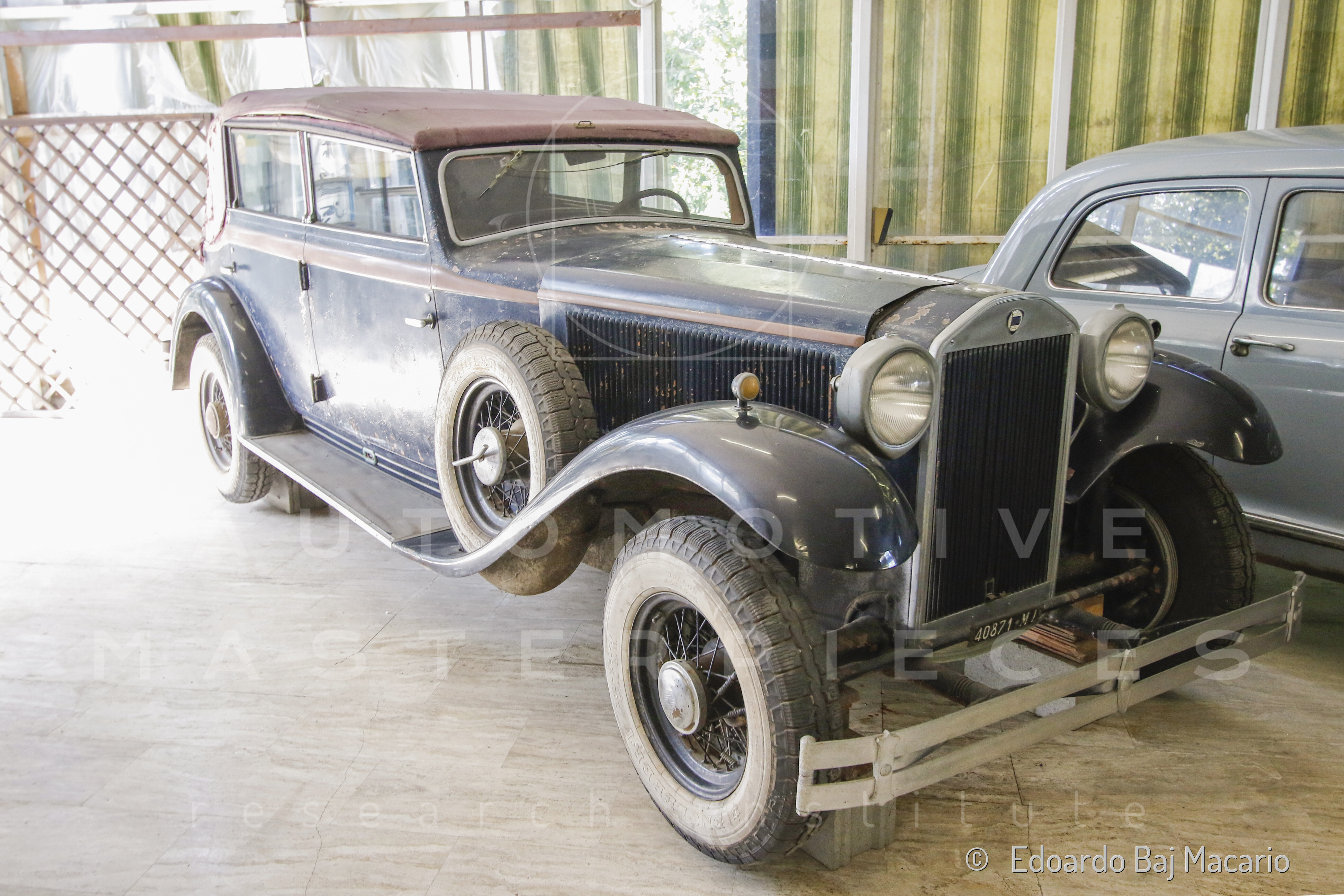 The Lancia Dilambda bodied by Pinin Farina, chassis no. 27-938, is the 22nd of the 2nd series. The Lancia records note that the assembly of this example was already completed in December 1930, but the final testing was only carried out in September 1931. It was commissioned by a Milanese client in 1932: Daniele Palazzoli, a wealthy businessman and owner of a namesake company in the food sector, who managed an important chain of stores, including Milan’s first supermarket/delicatessen. He was a well-known figure in the equestrian world of Brescia, surrounded by the most important aristocratic families in the area, including three of the four "musketeers" of the Mille Miglia: Maggi, Mazzotti, and Castagneto. Horses and motors intersected in the circles of the Unione Ippica Bresciana, where Comm. Daniele Palazzoli, a knowledgeable enthusiast, was active. At the Leno racecourse, known as the "San Siro" of Brescia, he established his own stable with numerous stalls. Palazzoli owned several estates scattered across the Bassa Bresciana and Emilia, including the renowned Martinenghe farm in Villachiara, where he undertook a vast modernization program, creating a model farm with modern stables and a horse track. Palazzoli was one of the four owners of racing stables in Brescia between the two world wars and a member of the national association of trotting horse breeders. An astute and aggressive entrepreneur, Palazzoli was also known for his lavish spending of his fortune. He was the first European breeder to import a trotting horse from the USA, and he did so in a daring manner. The horse’s name was Hazleton, and it was a legend of its time, perhaps even more than the more recent Varenne. Although Hazleton was already six years old and past his prime, the care provided by the breeder and his driver, Otto Diefenbaker, led the horse to win countless races, including, twice, the prestigious Grand Prix d'Amerique in Paris. In this environment of wealth and fame, Palazzoli treated himself in 1932 to an exceptional car: a Lancia Dilambda bodied by Pinin Farina, the chassis no. 27-938. It was a grand tourer, perfect for comfortable and fast travel between his properties and the most prestigious racetracks, but also a car to be admired in the center of Milan, as he sought to reinforce his status as a wealthy gentleman and not just a "salumiere" (grocer), as some detractors called him; a nickname that was particularly hurtful to his daughter Mara, later Selvini Palazzoli, who became a prominent psychiatrist and leader of the so-called "Scuola di Milano" or Milan Approach. Palazzoli ordered the car, specifying left-hand steering, which was rare on pre-1956 Lancias; this was the 3rd on a total of 23 LHD Dilambda mainly made for the US market. The body was a six-light fully openable cabriolet with winding windows, aluminum doors and bonnet sides. A Cabriolet Dilambda like this one had been the very first car ever to carry the signature of Battista "Pinin" Farina’s coachbuilding company. The Pinin Farina body of chassis no. 27-938 was finished in navy blue with light hazelnut belt moulding matching the soft top, and brown hide upholstery. Equipment included a side-mounted spare wheel, a large luggage grid and straps at the rear, Siata shock absorbers, headlamps with polygonal shells in the contemporary Lancia idiom, and twin tail lamps. The car featured a “Carbo” heating system, an independent coal-burning heater designed to warm the cabin. The heat was distributed through vents positioned on the floor, directing warm air towards the passengers' feet. This system provided effective heating even when the engine was off, though it required manual ignition and careful monitoring. The Dilambda, chassis no. 27-938, was always located in Milan and its surroundings, and is believed that during the 1930s it was loaned on more than one occasion to the City Governor for visits of V.I.P.s. It seems that both King Vittorio Emanuele III and dictator Benito Mussolini rode in it. In 1957, at the age of 75, Palazzoli decided to retire to a private life, affected by a sudden depression. The Dilambda, chassis no. 27-938, was sold three years later to Earl Salvatore Leto di Priolo, who provided to a light restoration, painting the fenders and lower part of the trunk in black. "Dore" was a well-known collector and gentleman driver who owned the car until June 17, 1972, when the Leto di Priolo brothers sold their car collection (29 cars, all but one a Fiat 8V) at an auction organized by Sotheby's at the automobile museum attached to the Monza racetrack. According to contemporary reports from Autocar magazine, the event took place in an atmosphere of anonymity, yet everyone knew everything. The car was purchased for the museum of the Terme Idroterapiche delle Saline di Miradolo, where it remained on display for fifty years, before being acquired by a private collector at another auction, this time organized by Finarte, in 2022. The car had been standing still for a very long time, and the new owner found an unrestored car in an exceptionally well-preserved state; even the five Englebert tyres on the car were said to be the originals, as well as the black Borrani wire wheels with an American-type Buffalo hub attachment, different from the European Rudge-Whitworth system. It still had its original Milano plate. A true historical testament. The car is currently under restoration.