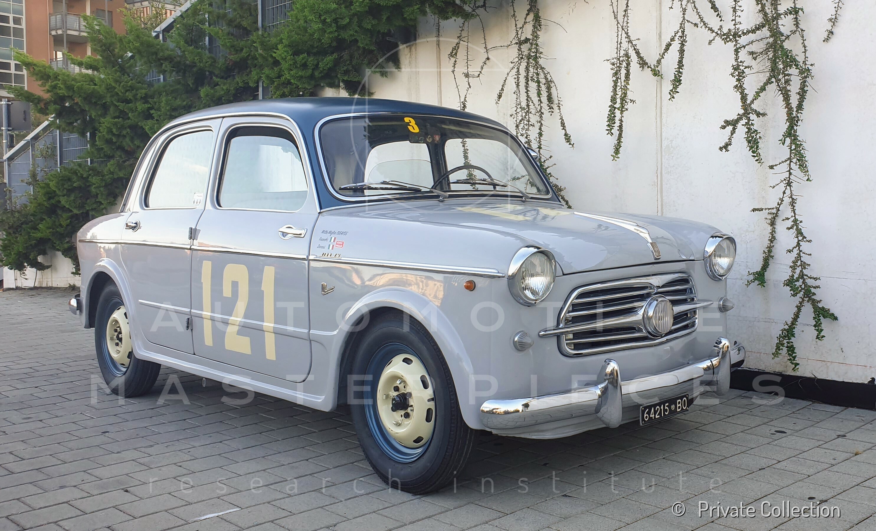 Fiat 1100/103 TV (Turismo Veloce), chassis no. 103TV*033956* is a car produced in the Carrozzerie Speciali Fiat department, was completed in the Mirafiori factory in Turin in December 1953 and delivered to the S.E.T. - Commissionaria FIAT in Bologna with a certificate of origin dated January 15, 1954. Sold on 1 February 1954 to ing. Guglielmo Franchi at the price of Lit 1,225,000, was registered with the number plate BO 64215 which it still owns today. Guglielmo Franchi, at the time residing in via delle Belle Arti 25 in Bologna, graduated in Engineering, was RAS Insurance Attorney and a great sports car enthusiast. Between 1951 and 1955 he ran several races such as the Giro della Calabria and 5 Mille Miglia consecutive: in 1951 he began his racing adventure in this competition as a navigator of Paolo Pagani aboard a Lancia Ardea, in 1952 he tried his hand as a pilot on a Fiat 500 C (Finetti co-driver, 218th overall), in 1953 on a Renault 4 CV (Barbieri co-driver, 204th overall) and in 1954 and 1955 he raced with this Fiat 1100/103 TV. His co-driver was Raffaello Zanasi, also from Bologna, who also took part in many races alongside established drivers such as Sergio Pedretti (Kim). The positive experience in the previous editions of the Mille Miglia pushed Eng. Franchi to continue his career as a gentleman driver with a more performing car. For this reason, as soon as it was purchased, he immediately had his new Fiat 1100/103 TV thoroughly tuned to make it competitive in the Turismo Speciale category. The main works carried out, as per the owner's letter to CSAI in Milan and ACI in Brescia, were: replacement of pistons, camshaft, valves, carburetor jets, spark plugs, coil; head polishing and compression increase; suspensions set-up; flywheel lightening, muffler modification. At the 21st Mille Miglia, held on 1-2 May 1954, he did not finish the competition and retired after 7h 56 '20' of the race. A short time later he had the engine of this FIAT 1100 TV completely replaced with a new one and had the update noted in the vehicle registration document on 12 July 1954, as can be seen from the chronological extract. In 1955 the engineer Franchi showed up again with this car and the same co-driver at the start of the Mille Miglia and curiously he was assigned the same number as the previous year: 121, then he left again at the same hour in 1954. Probably the engineer Franchi was not superstitious and the result proved him right. In fact, he finished the race in 115th position out of 279 competitors who finished the race and 11th in the category (Turismo di Serie Speciale up to 1300 cc.) out of 35 classified. His order of passage to the various controls was: 228th in Ravenna, 196th in Pescara, 188th in L'Aquila, 174th in Rome, 161st in Siena, 149th in Florence, in his Bologna he passed 151st at 14:02:17, in Cremona 130th. Before the start he wrote a letter to the organizers to complain, also on behalf of other Bolognese racers, about the change in the CSAI regulation (annex J) which now also allowed cars "derived from Gran Turismo", such as Alfa Romeo Giulietta and Porsche 356, in the Turismo category, a circumstance that later did not occur, receiving reassurances in this regard. A few days after finishing the Mille Miglia, on May 18, 1955, Eng. Franchi sold the car to Giuseppe Sangiorgi, born in Castel Bolognese in 1891, who kept it for three years and left it in exchange at the FIAT branch also in Bologna in June 1958 for the sum of 420,000 Lire, the same sum at which it was resold after a few days to Mr. Aldo Guccini, a hauler from Bologna, who certainly kept it at least until 1967. After being found by a well-known researcher and car historian, it became part of the collection of an Italian enthusiast, then passed to a Dutch dealer. It was recently bought at the Bonhams auction in Zoute in Belgium, returning to Italy.