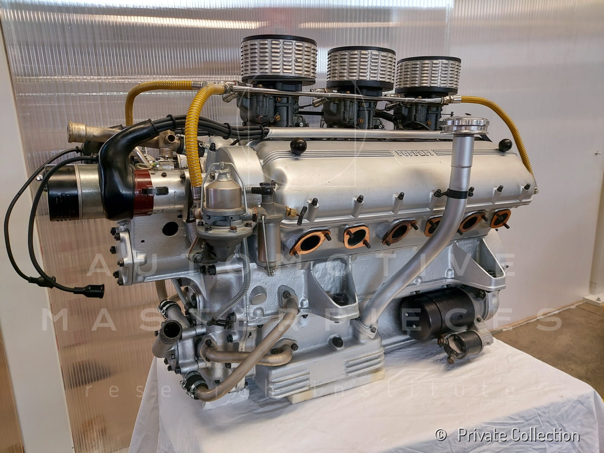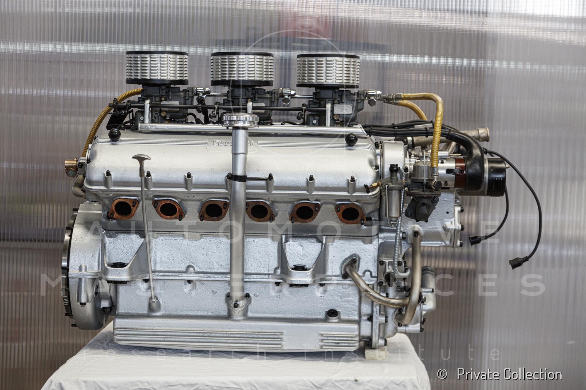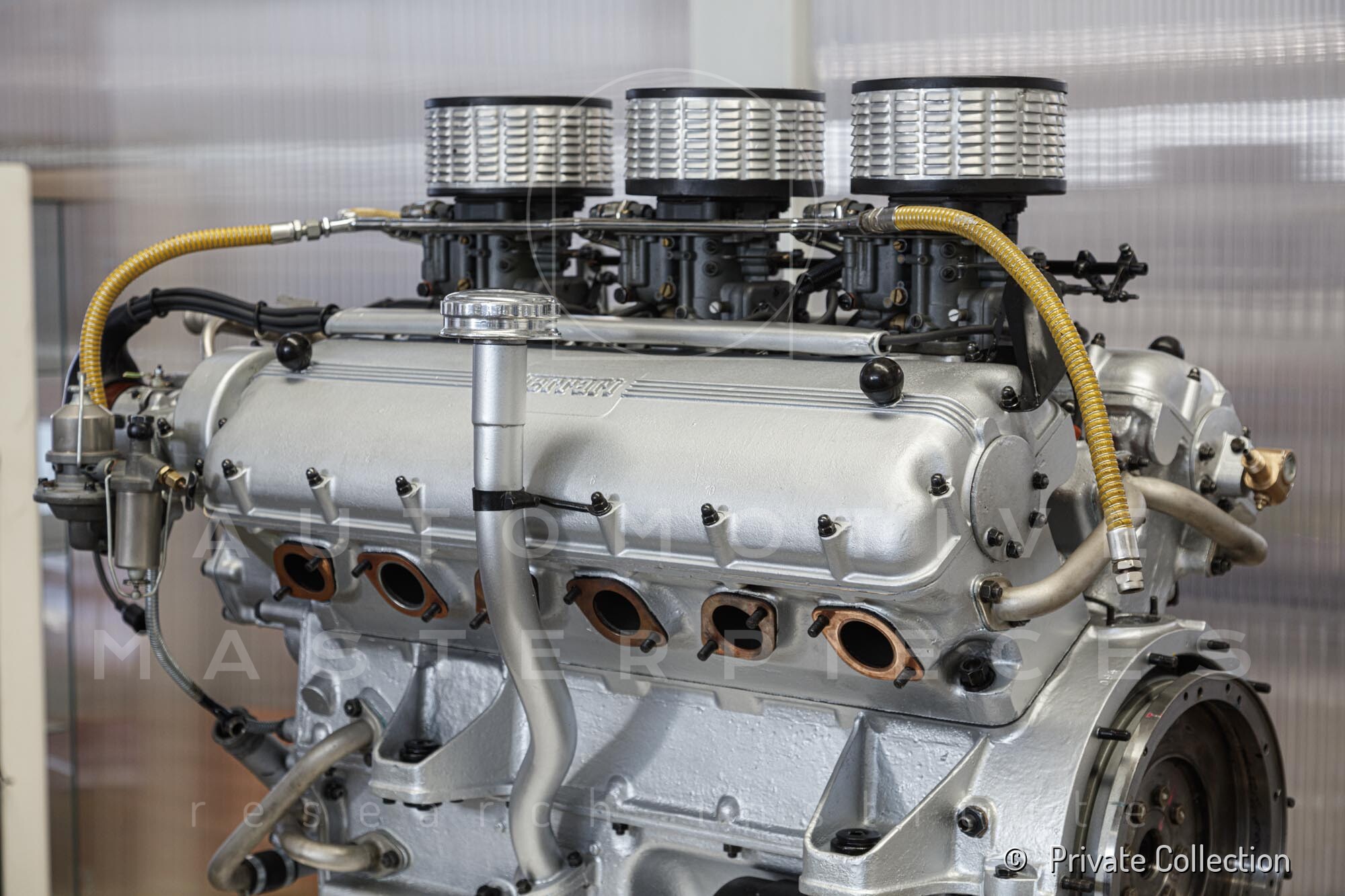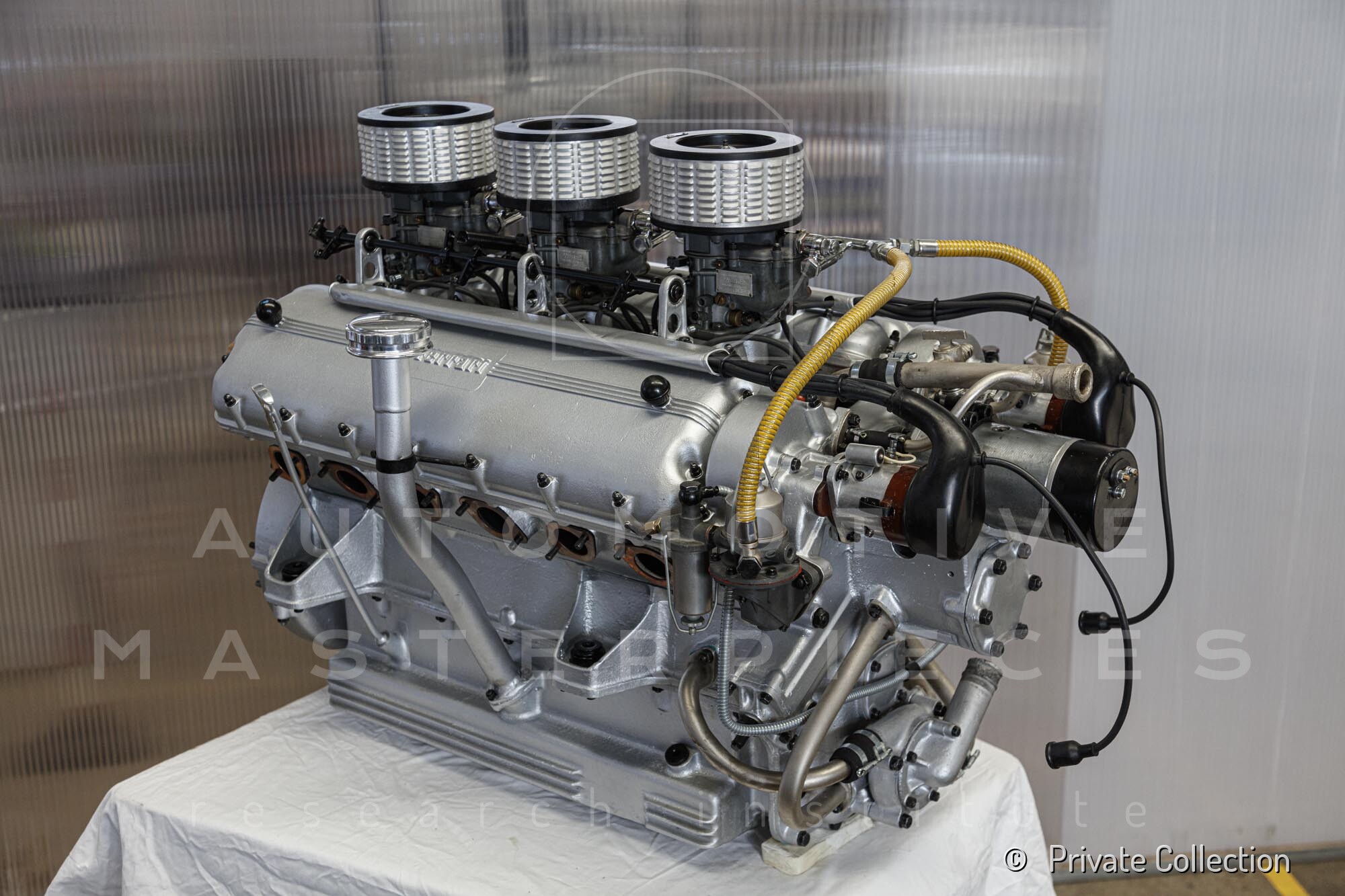 Internal engine number 094. 60° V-type. 3-liter version of the Lampredi V12, known for its larger size and torque-oriented characteristics, well-suited to meet the demands of a powerful grand tourer. It appears that Ferrari produced only a limited number of 250 Europas with this engine, installing the Colombo V12 in later cars. The precise number equipped is a subject of debate.