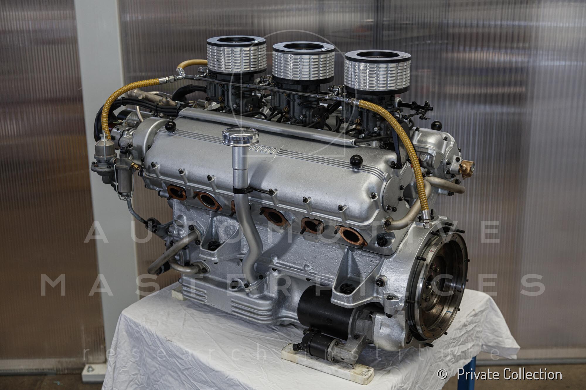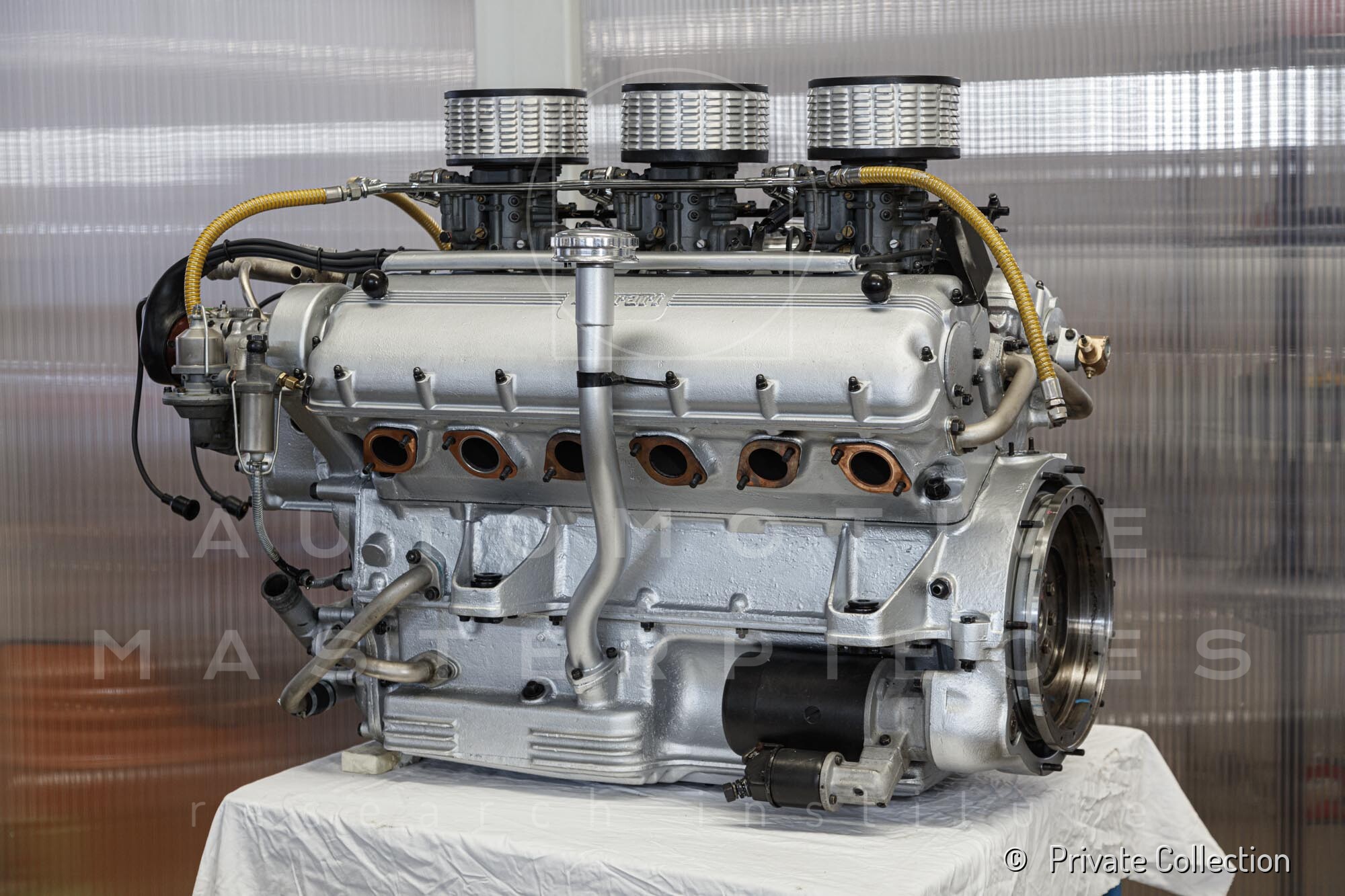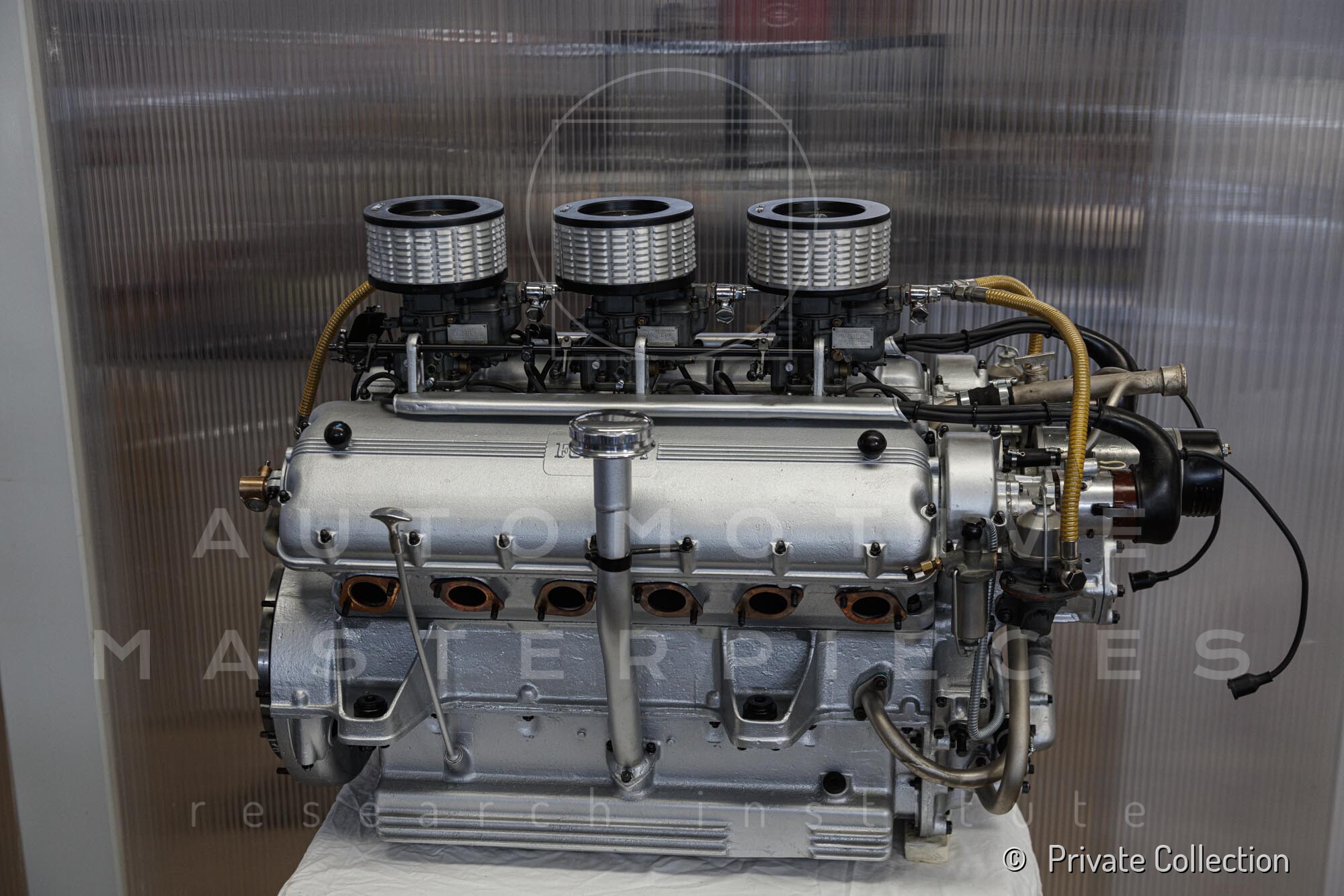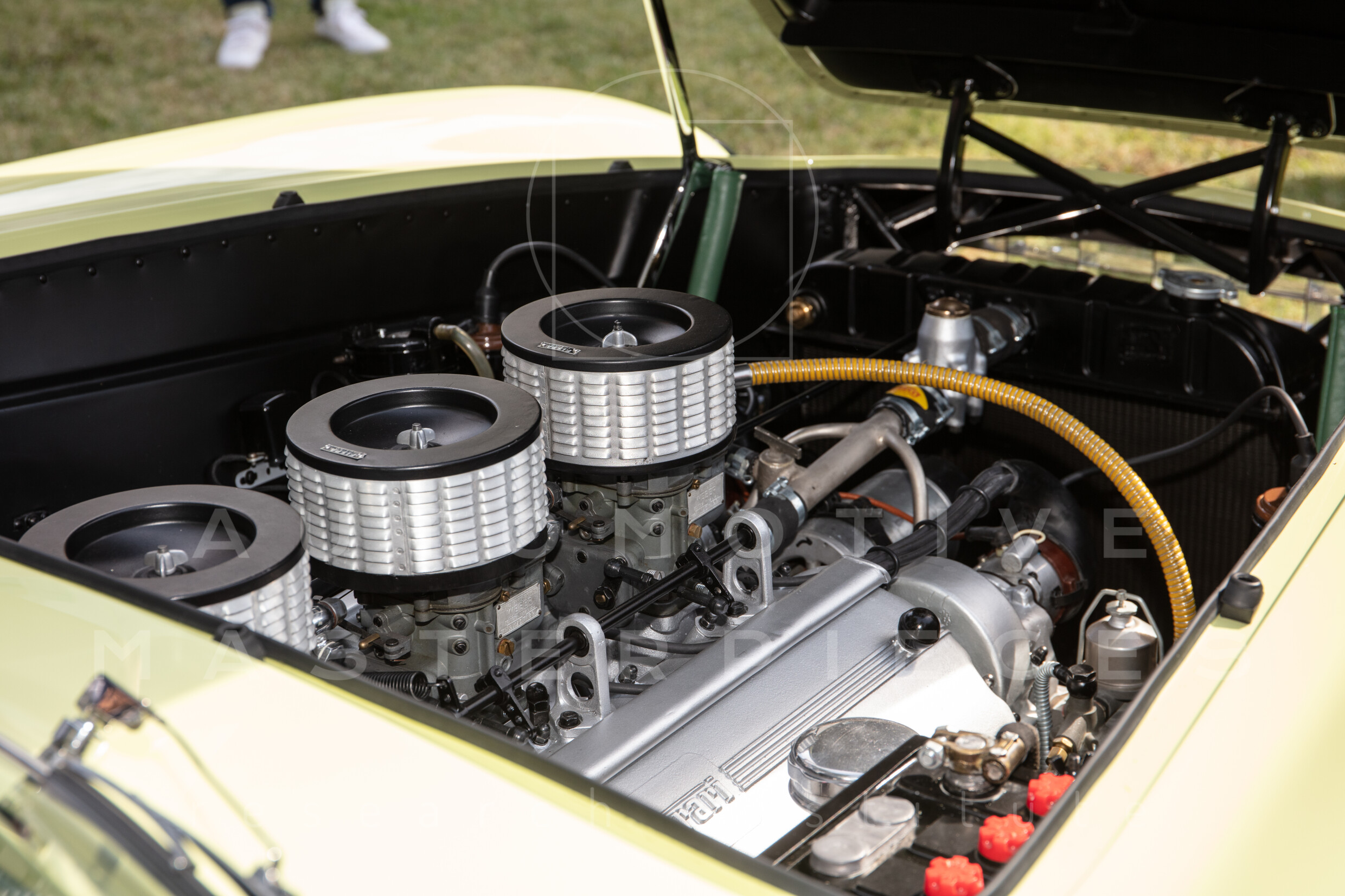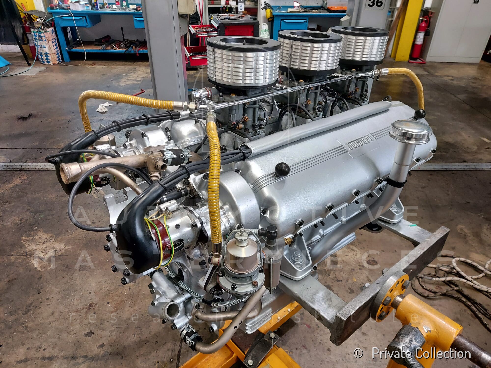 Internal engine number 094. 60° V-type. 3-liter version of the Lampredi V12, known for its larger size and torque-oriented characteristics, well-suited to meet the demands of a powerful grand tourer. It appears that Ferrari produced only a limited number of 250 Europas with this engine, installing the Colombo V12 in later cars. The precise number equipped is a subject of debate.