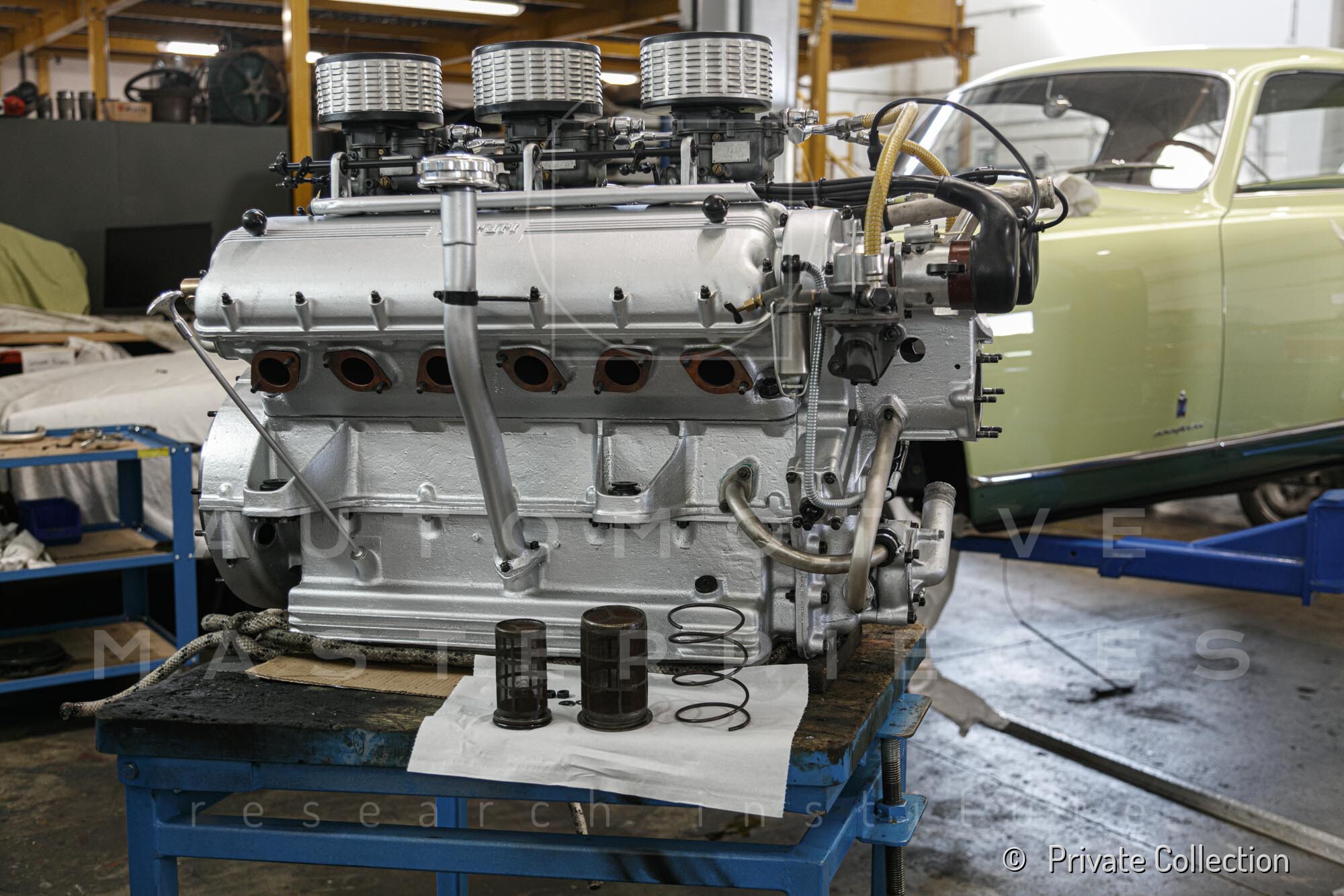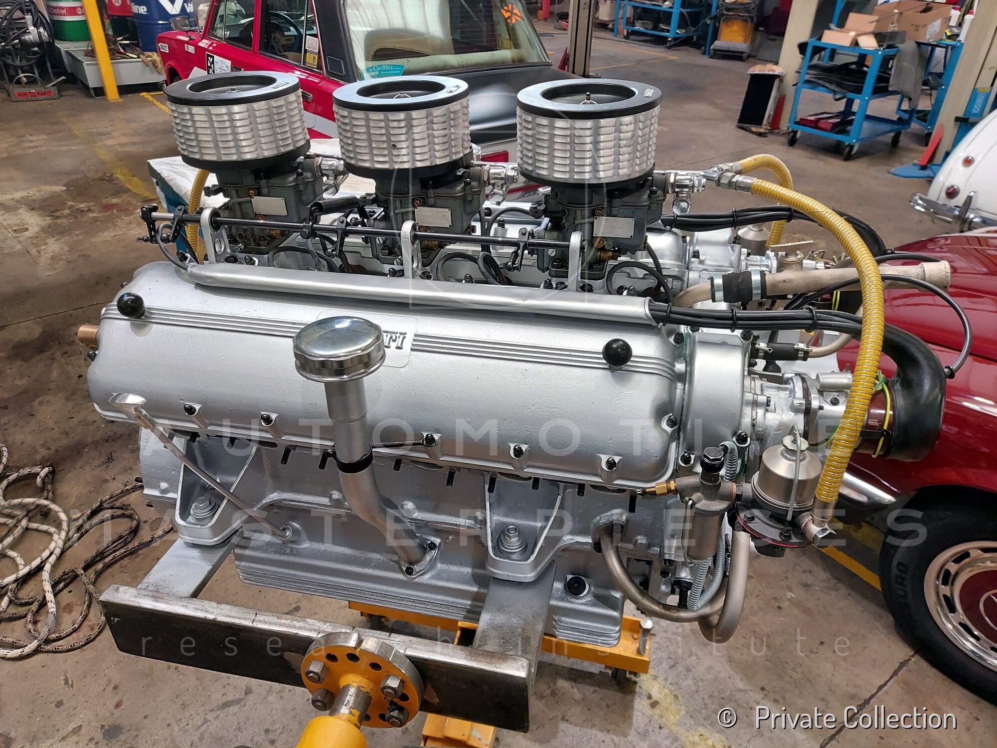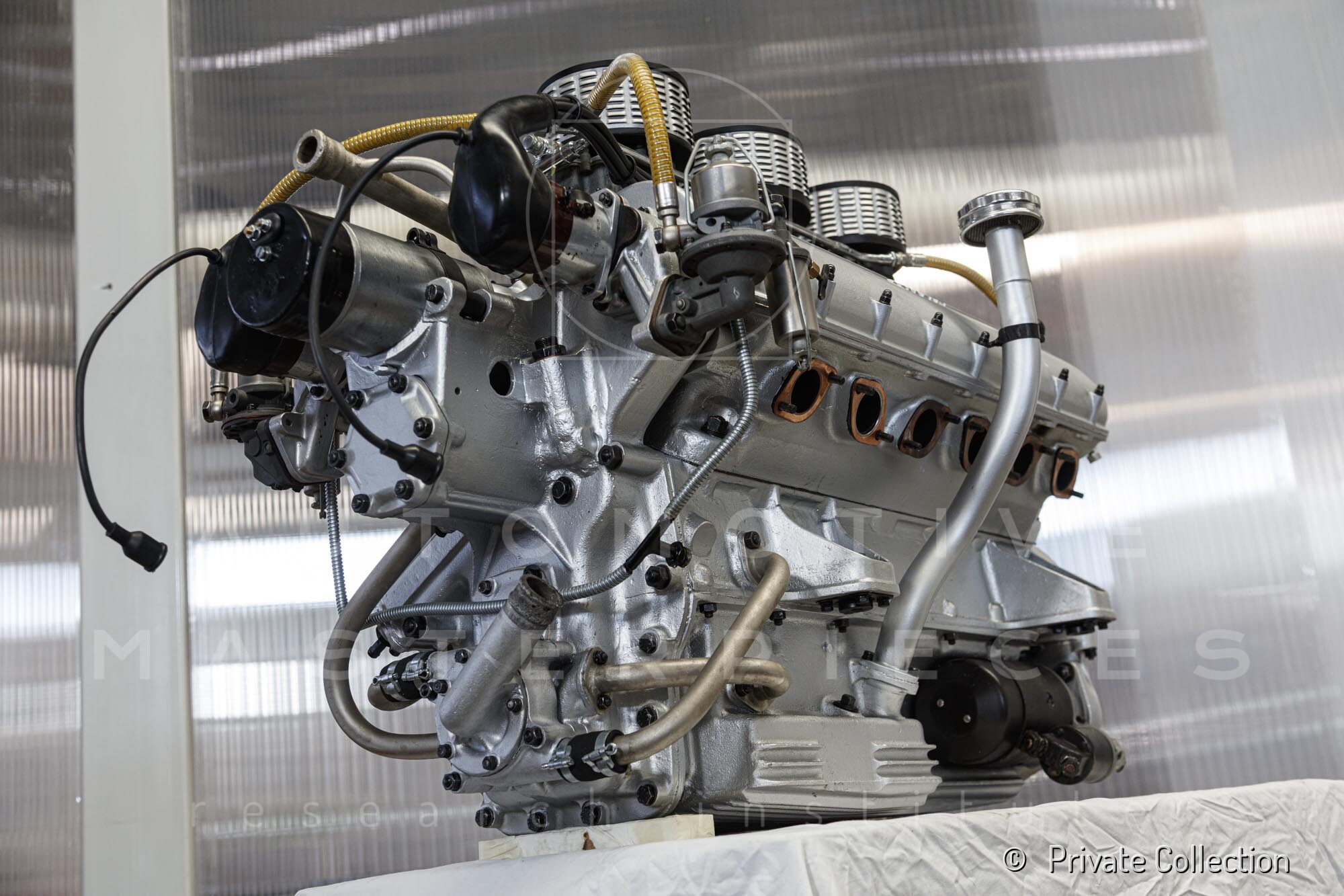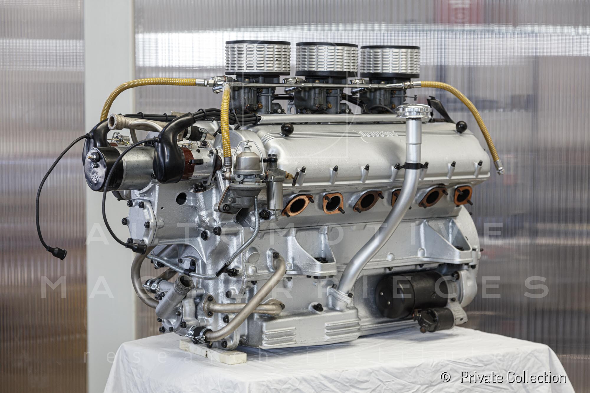 Internal engine number 094. 60° V-type. 3-liter version of the Lampredi V12, known for its larger size and torque-oriented characteristics, well-suited to meet the demands of a powerful grand tourer. It appears that Ferrari produced only a limited number of 250 Europas with this engine, installing the Colombo V12 in later cars. The precise number equipped is a subject of debate.