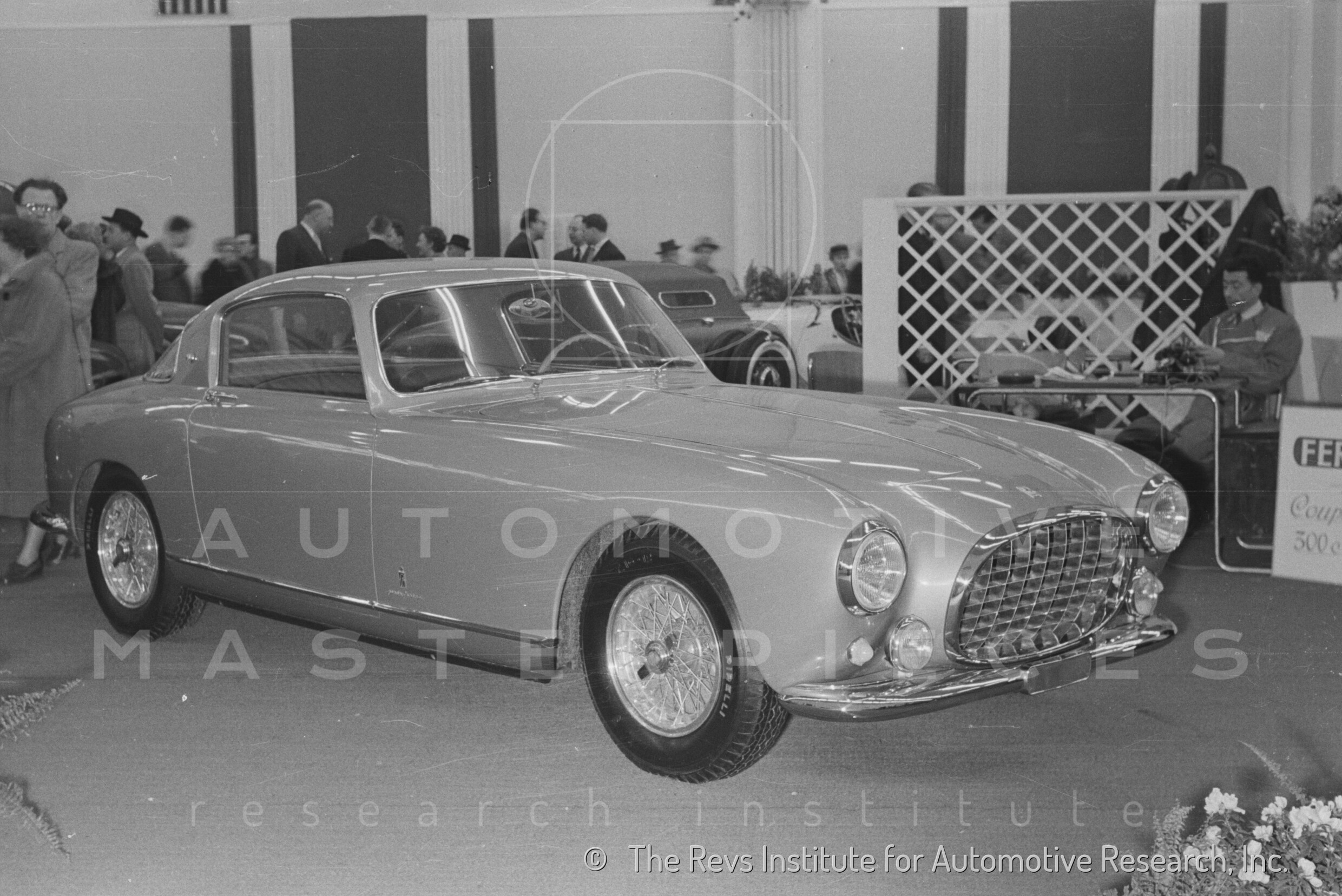 List of exhibitors from the official catalogue: "Ferrari, 79, Viale Trento Trieste, Modena. Vouitures de course, de sport et de tourisme rapide. Modeles: 375/Millemiglia Sport - 250/Europa. Palais n°11 - Stand 176.
