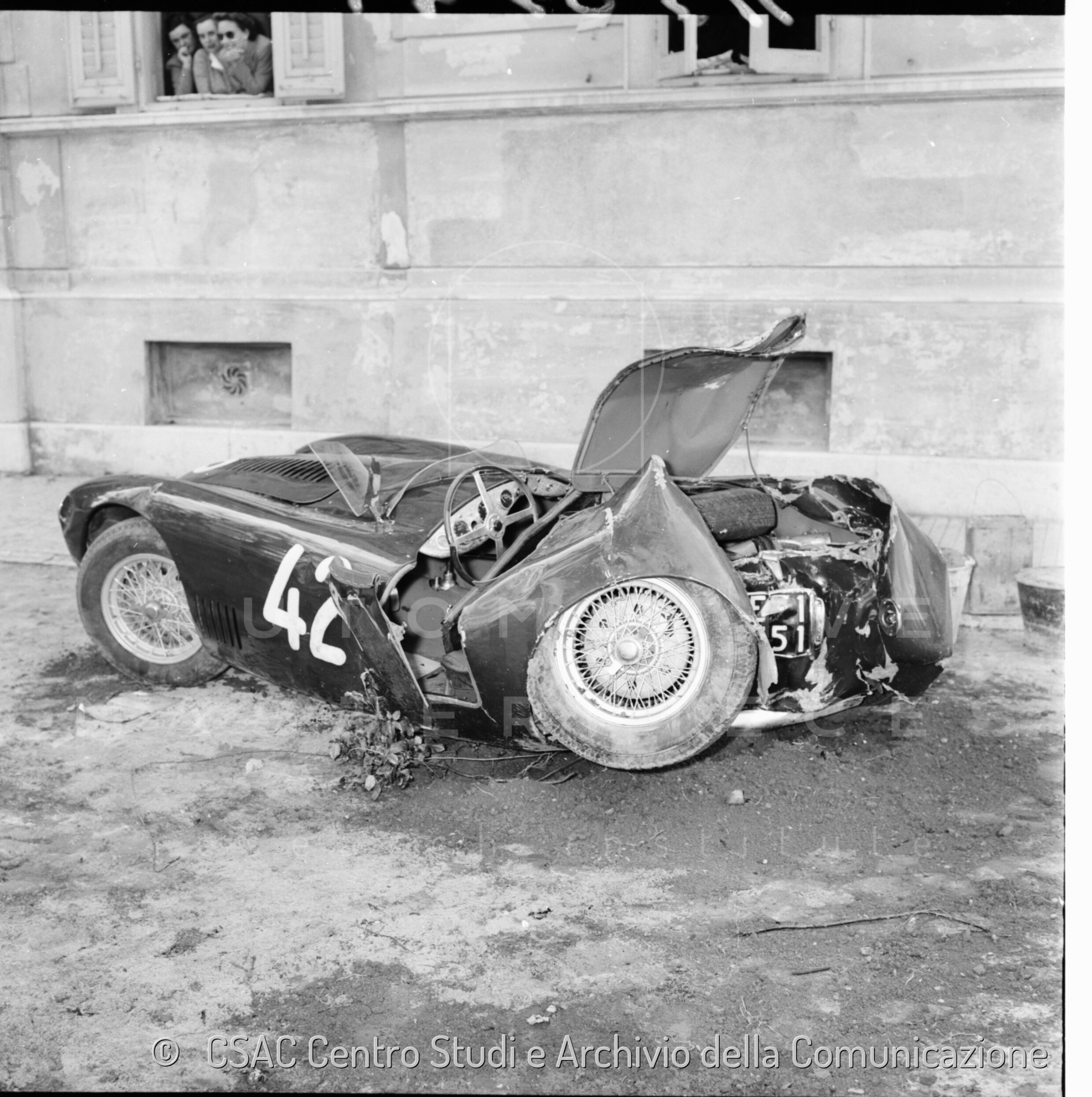 Accident due to a dog wedging itself under the steering linkage of the car causing it to hit a wall. Co-driver Mutuella suffered a broken collarbone.