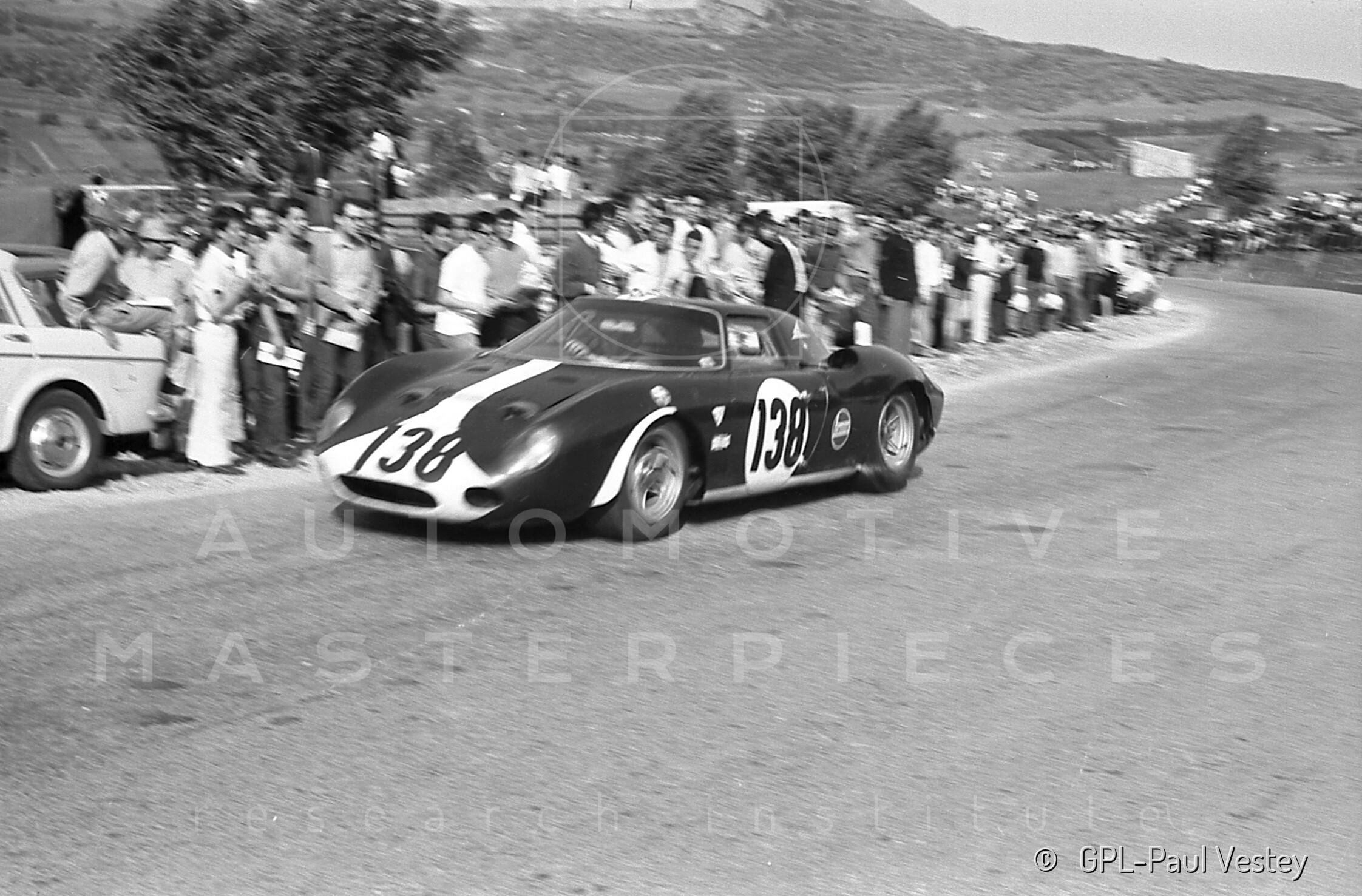 The Ferrari Berlinetta 250/Le Mans with chassis no. *6167* was commissioned by Australian Ferrari and Lancia importer William H. Lowe of Melbourne. Peter Howe, William’s grandson, recalls the car: “We imported two 250 LMs. One sold to David McKay and shipped directly to Sydney... The other, *6167*, was for my grandfather W. H. (Bill) Lowe to replace his 250 Short Wheelbase berlinetta. The car's original color was light metallic green (actually "Verde Bottiglia" green, with green "verde 8370" interior). As delivered, it was fitted with the highest gearing, and he found it almost impossible to drive on the road. I… changed the drop gears to the lowest ratio. It was still most difficult to drive in traffic, and my grandfather, who was then in his late eighties and a veteran of seven Australian Grand Prix, was unable to use it as everyday transport.” From February 11th to 22nd, it was exhibited at the International Melbourne Motor Show. According to press reviews, the car's price at the time was £11,500, but after the event and some dedicated articles, it was advertised for about two years but never found a buyer. Circa 1967, Col. Ronnie Hoare of Maranello Concessionaires came to an agreement. According to a pro-forma invoice, the price paid for the car was £3,800. Sn. *6167* was then brought back to Italy to Piero Drogo's Sports Cars coachbuilding firm, where the bodywork was modified in the front with a longer nose reminiscent of the 250 GTO and a new red and light blue paint. It also received new rims with a five-pointed-star shape, light blue finishing, and central lock. Soon after mid-April, the bureaucratic formalities were completed, and the 250 LM found new premises in England. The race debut took place at the Martini International Silverstone Club Trophy on May 20th. Richard Attwood scored a 3rd place overall. On May 29th, Mike Parkes took 2nd place overall in the BUA International Trophy Meeting at Crystal Palace circuit (#48) and, after a private test session on July 4th, Attwood and the the 250 LM achieved their first success, winning the British GP Support race at Silverstone (#30) on July 15th. On August 28th, Attwood finished third in the Guard International Brands Hatch Evening News International Trophy Race (#62), and on the following September 3rd, the car was at the Bugatti Owners’ Club Newton Oil Trophy meeting along Prescott hill climb. This was the first meeting of the newly formed Ferrari Owners Club. On the next September 16th, "Dickie" finished third in the Gold Cup at the Oulton Park track (#84). In those weeks, sn *6167* was sold to gentleman driver Paul Vestey. The English Baronet had won his class at the Le Mans 24 Hours the previous year and decided to buy the mid-engined sports car for the breakthrough. His first race was the Flugplatzrennen Wien-Aspern um den Donau-Pokal at the Vienna Airport (#19, dna). Two weeks later, Vestey and Paul Ridgeway were at the Paris 1000 kms (Montlhery circuit #14) and finished 13th overall and 5th in class. In November, the car should have been exhibited at the Die schnellsten Autos der Welt show organized in Vienna, an event organized by Jochen Rindt, but it was damaged in his transporter and sent to Carrozzeria Sports Cars for repair. The 1968 racing season of the Sportscars GT Championship began with the Paul Vestey/Roy Pike/Paul Ridgeway trio (#12) forced to withdraw at the 24 Hours of Daytona, but the Vestey/Pike duo took 15th place overall at the BOAC 500 at Brands Hatch track (#10) on April 7th. Vestey and Ridgeway scored 20th place overall at the Monza Mille Chilometri (April 25, #41) despite the car losing a wheel on track, and on May 5th, the Targa Florio was held by Vestey and David Piper. Their race was stopped by an incident.
