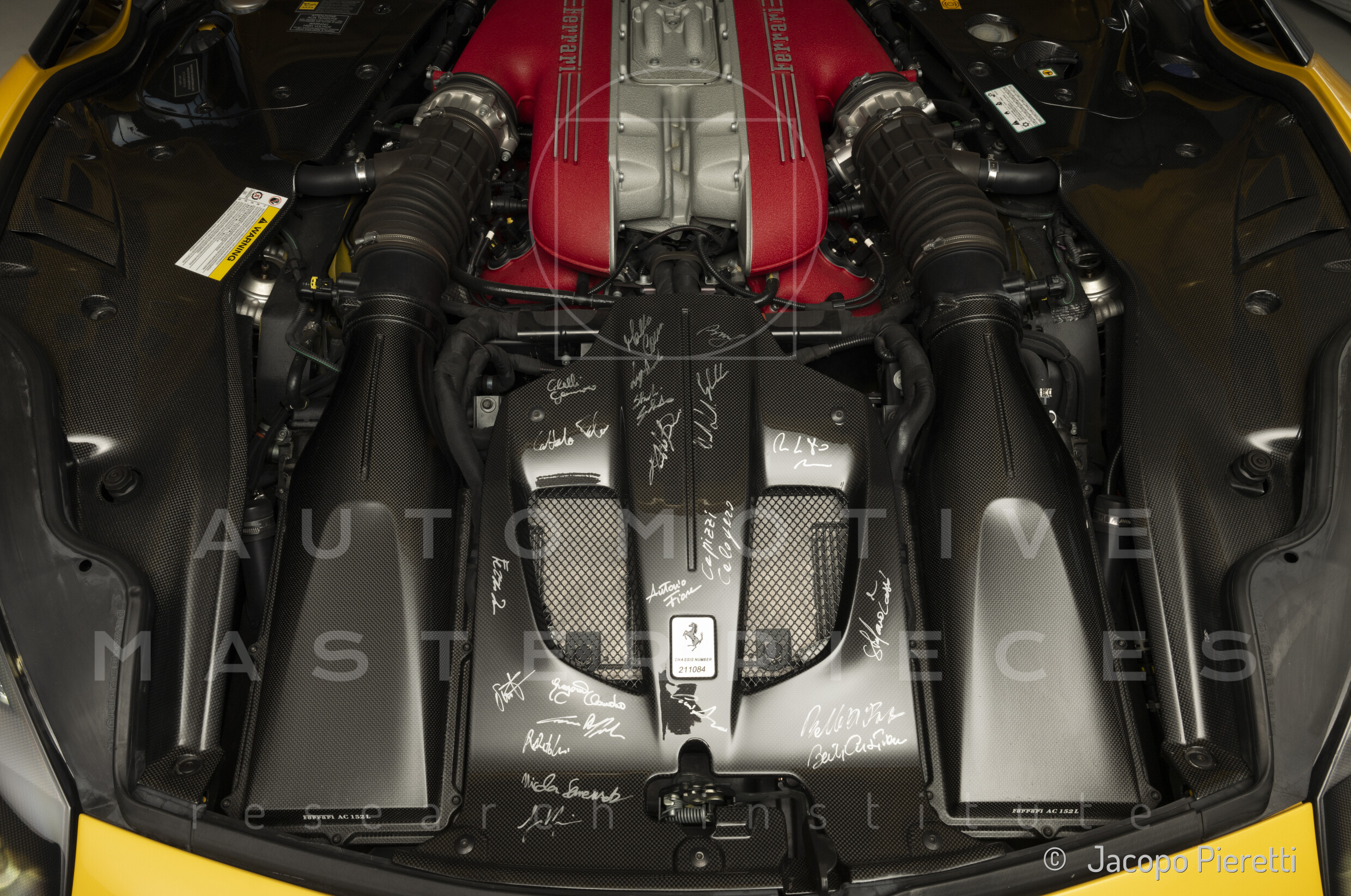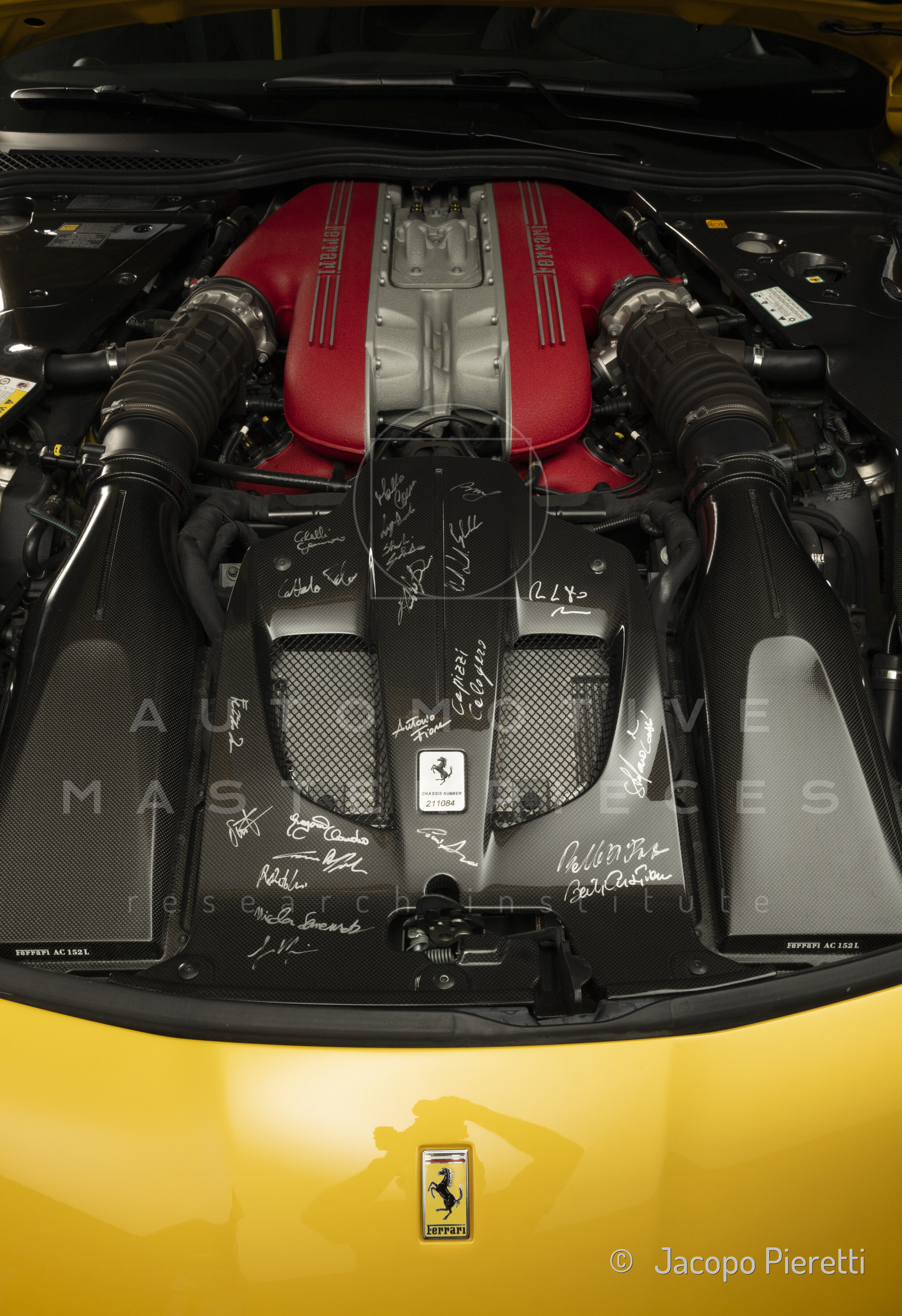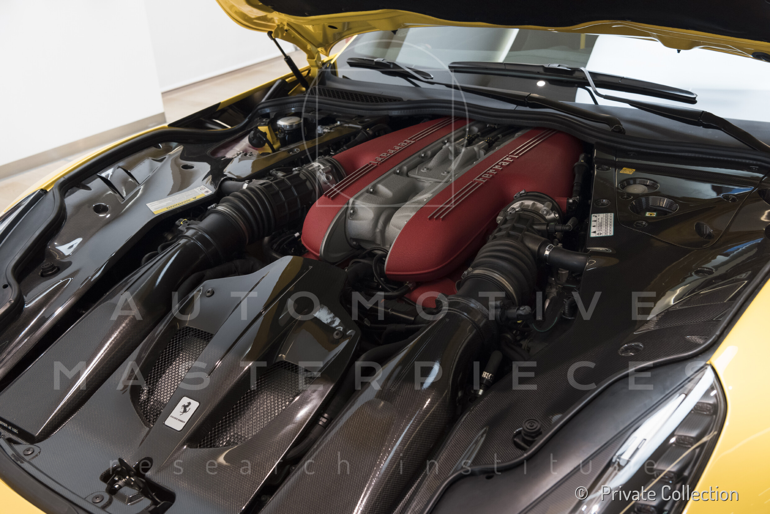 F140 FC type, 65° V-angle. US pollutions specs. From May 2017, displayed on a pedestal at the Museo Enzo Ferrari in Modena, alongside Ferrari F12tdf, chassis no. ZFF81BH000211804