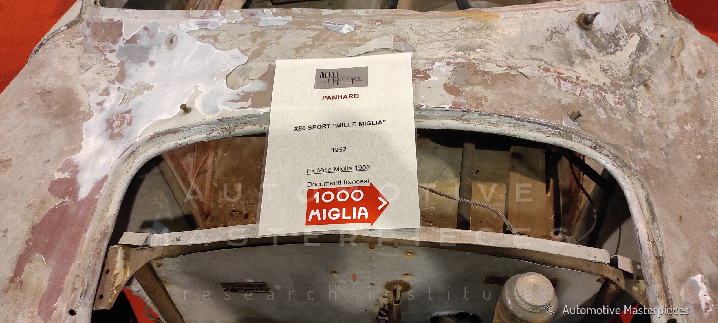 Rina Certificate N. RAM-25. for the historical research conducted on the car through a validation process of its proven historicity and provenance by Automotive Masterpieces.