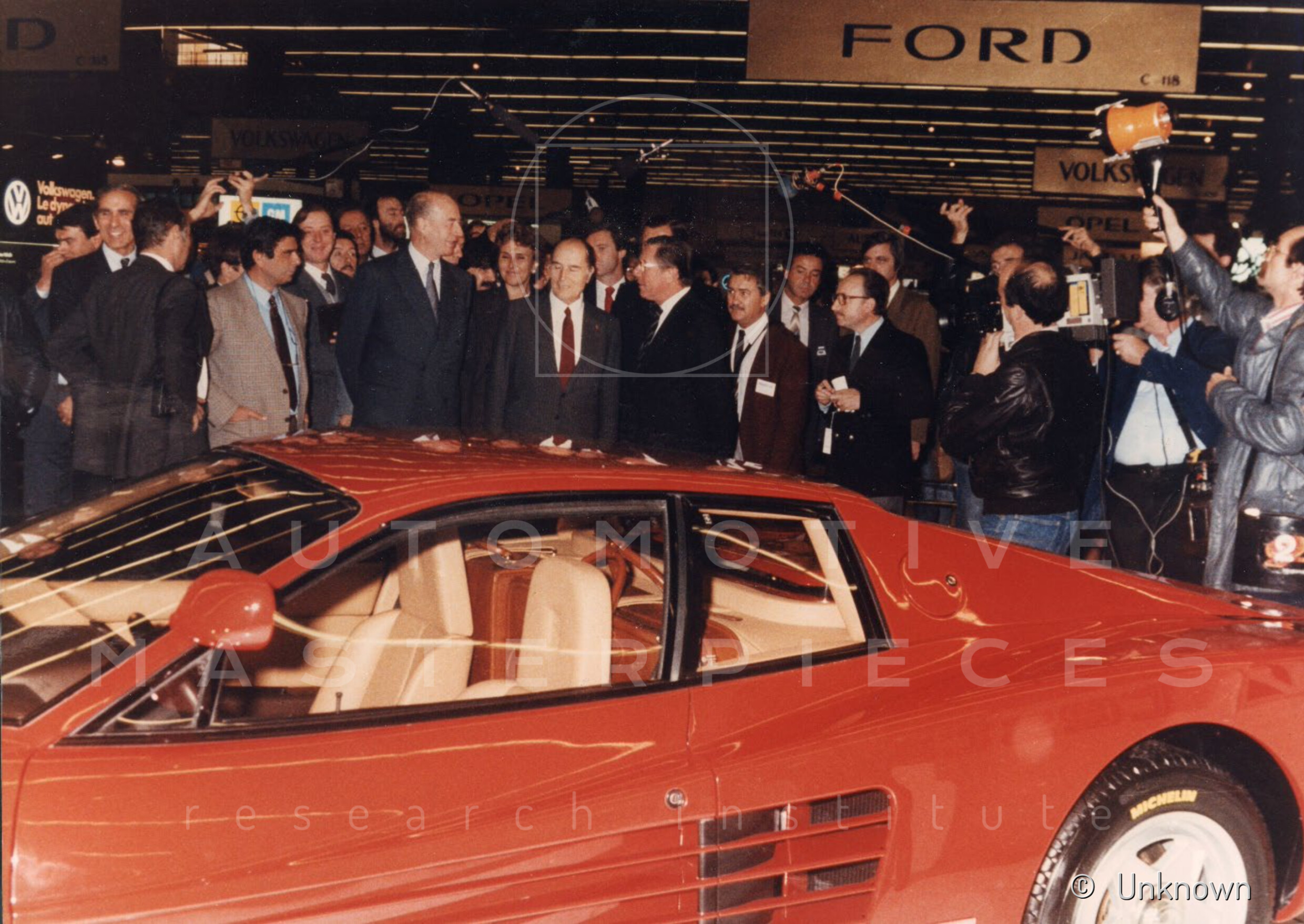 Displayed on the Pininfarina stand. President of the Italian Republic Sandro Pertini, standing in front of the Ferrari Testarossa, says: “What a tailleur this car is. And what tailors our coachbuilders are...” — an anecdote reported in the daily press. The car was shipped from Turin to Germany on November 22, 1984, according to documents preserved in the Ferrari archive.