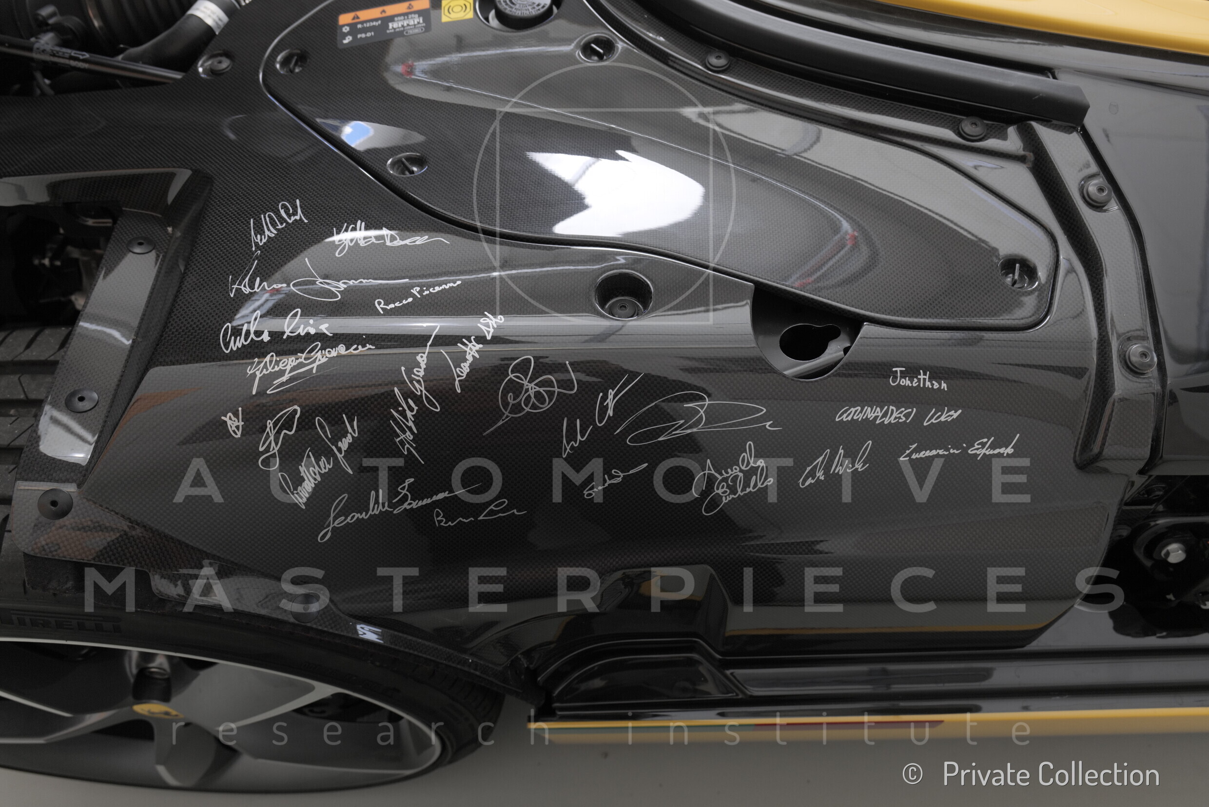 The 2020 Ferrari Monza SP1, chassis no. ZFF94MSB000262776, “Tribute to the 100th Anniversary of Francesco Baracca,” is a one-off example from the special “Icona” series, created by the Ferrari Tailor Made department to evoke the very origins of Ferrari history and as a tribute to the connection between Ferrari and the Italian Air Force. This car pays homage to Francesco Baracca (1888–1918), the foremost Italian air ace of the First World War, with 34 confirmed aerial victories. A former cavalry officer who transferred to aviation, Baracca became a symbol of courage and honor. Celebrated by Gabriele D’Annunzio as a modern knight of the air, he died in combat over Montello in 1918 and became a national hero. Baracca’s personal emblem—a black prancing horse on a white field—was painted on his aircraft in tribute to his former cavalry regiment. It symbolized continuity between cavalry and aviation, combining elegance and fighting spirit. The horse was usually shown rearing, tail down, occasionally facing left. Another theory suggests Baracca may have adopted the emblem from the coat of arms of Stuttgart, possibly from a downed German aircraft—thus linking the Ferrari and Porsche emblems by symbolic origin. The best-known version, however, comes from Enzo Ferrari himself. After winning the 1923 Circuito del Savio race, he met Countess Paolina Baracca, who urged him to use her son’s horse for good luck. Ferrari first used it in 1932, adapting it with a raised tail, a yellow background for Modena, and the letters “S F” for Scuderia Ferrari. The Baracca tribute SP1 is equipped with Ferrari’s standard naturally aspirated 6.5-liter V12 (type F140GC, serial no. 490915) and 7-speed dual-clutch transmission (type 530, no. 108074). The ISO LM01 livery features “Ardila Amarillo Lucido” yellow with “Sanu Silver” front finish, two fuselage-style roundels, and a tricolore stripe. The markings “SVII” and “S2445” refer to Baracca’s SPAD S.VII airplane. A shield at the rear bears the inscription “9° Stormo F. Baracca.” These elements reinforce the tribute to the celebrated aviator. The interior is trimmed in Heritage Testa di Moro leather with the prancing horse logo embossed on the headrest and yellow comb-stitching. The car features several personalized expensive extras. This SP1 “tribute” was revealed during exclusive events for Ferrari’s top-tier clients; it has been the subject of works by Ferrari artist and designer Enzo Naso and featured in various Ferrari-branded exhibitions, including Cavallino Modena. The car was sold by official dealer Rossocorsa to a private collection. In April 2021, it received the Certificate for Special Series Vehicles from Ferrari S.p.A. and was registered in 2022. To this day, the mileage remains that recorded upon delivery by Ferrari: 63 km.