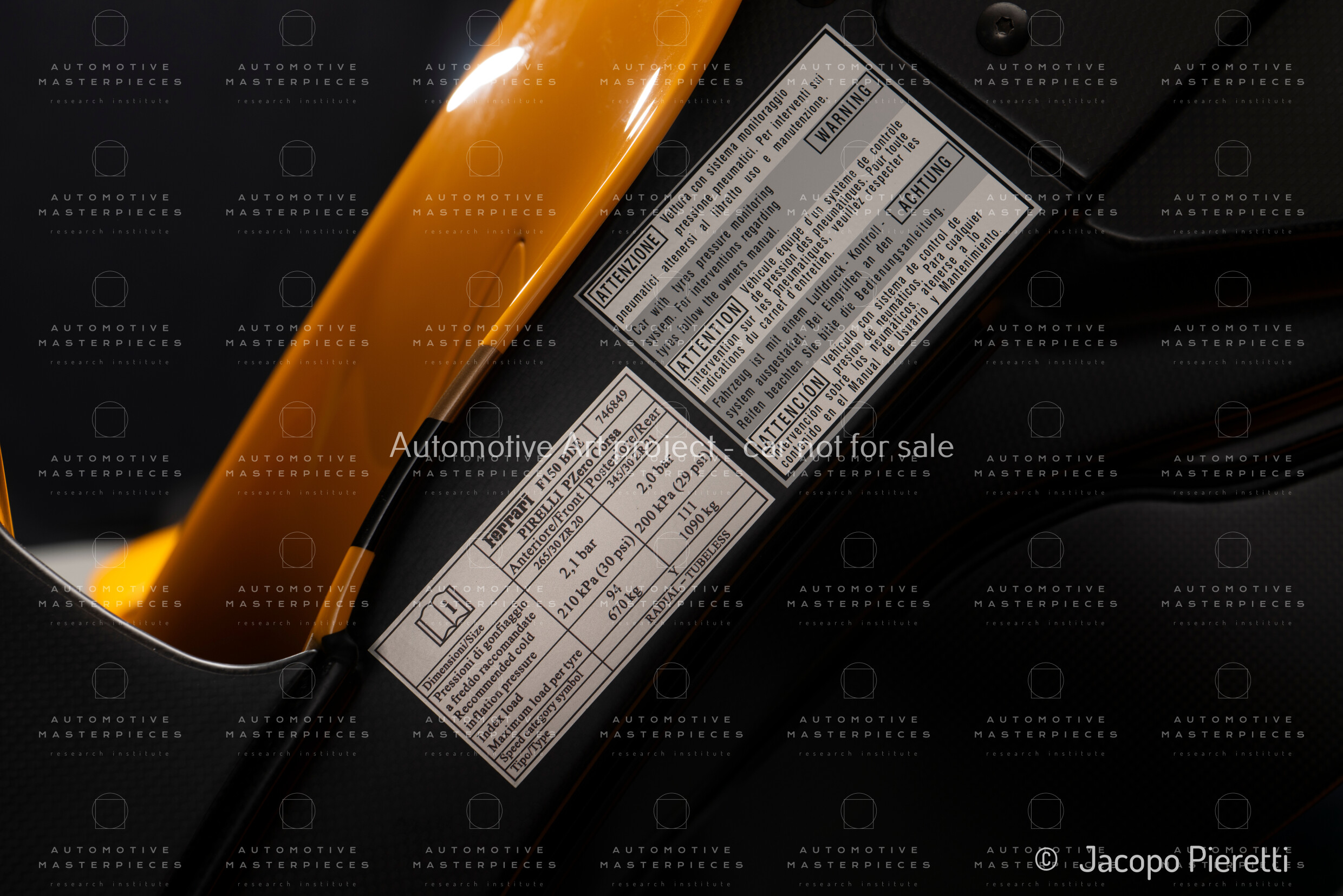 Carbon fiber. Modified version of that of the LaFerrari Aperta. SSC (Side Slip Control) system, including the Ferrari Dynamic Enhancer (FDE), to improve cornering performance.
