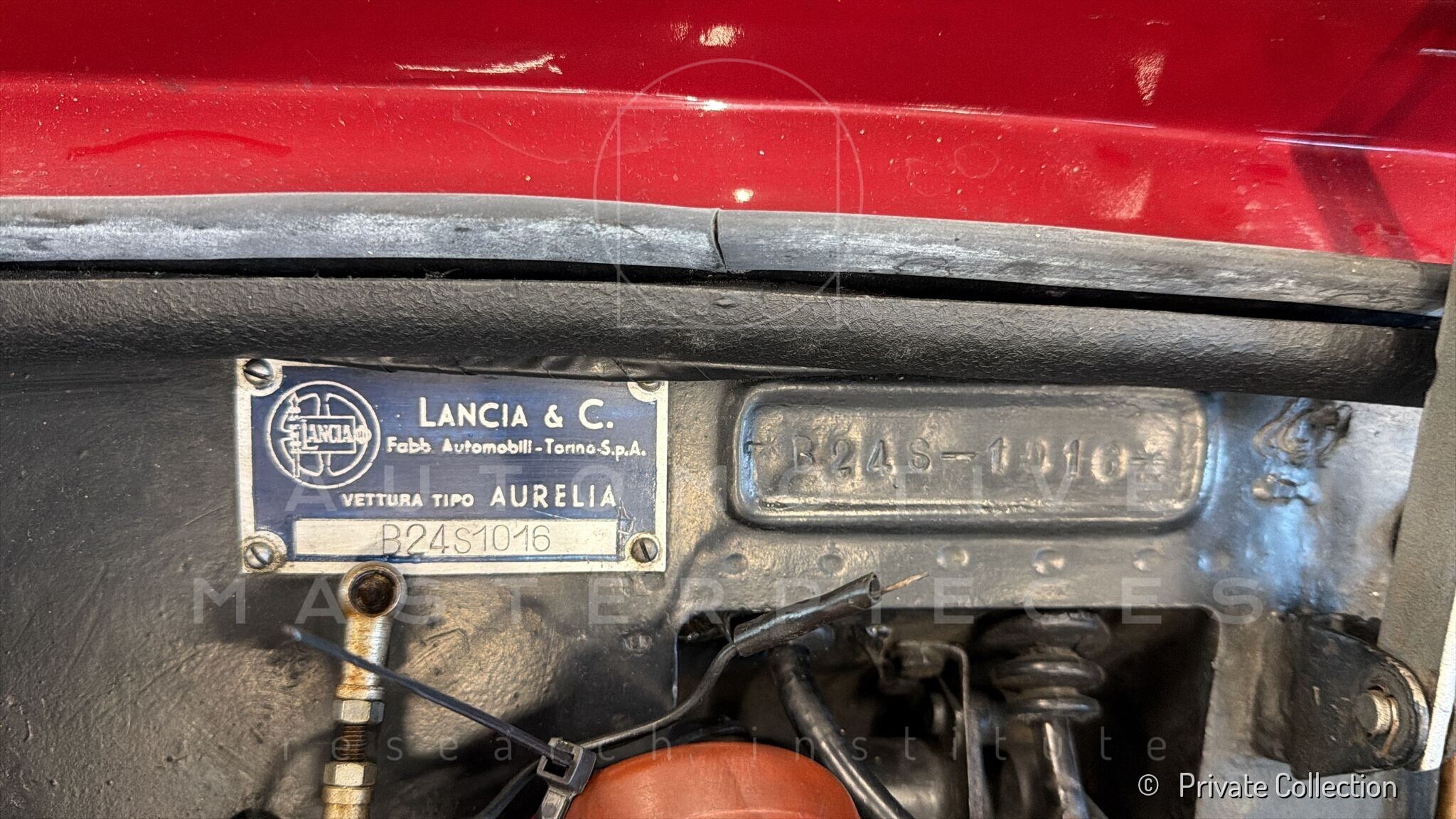 The Lancia Aurelia B24 Spider, chassis no. B24S-1016, is the 16th of the 181 left hand drive Spiders built and was delivered new to Torino (Italy) in May 1955. The car is documented in Lancia registers as built between March 21 and May 21, 1955, having been originally finished in beige with leather red interiors, as also evidenced by extremely rare photographs taken on the Lancia assembly line. In its earliest years, the car passed through several hands, a typical fate for a fashionable high-end model of the time, moving within the circles of the industrial and entrepreneurial elite of north-western Italy. It was first owned by Carlo Traglio, most likely belonging to the well-known Traglio industrial family, active in Northern Italy and associated with the Coca-Cola bottling business. While the identification is highly probable based on name, period and context, it is currently subject to further archival confirmation. Shortly thereafter, the car passed to Gianni Plodari of Magenta, heir to the industrial company “Francesco Plodari & Figlio,” among the early Italian manufacturers of locks and hardware, and a family of notable local prominence. In 1956, the Aurelia was acquired by Dino Fabbri, co-founder of the publishing house Fratelli Fabbri Editori, one of the most influential cultural enterprises of post-war Italy. Later that same year, the car changed hands several times before, in 1958, it moved to Southern Italy, entering a new phase of its life under the ownership of a gentleman driver, marking the beginning of a more distinctly sporting use. It was owned, already seemingly repainted in black, by Donato Giuseppe Jannone from 1958 to 1987, who was active in Italian hillclimbs and road events during the late 1950s and early 1960s. For competition use, Jannone carried out a number of modifications, including weight reduction starting with the removal of the bumpers, the adoption of closer gear ratios, a straight-through exhaust system, and a modified pedal arrangement to facilitate heel-and-toe driving. Chassis no. B24S-1016 was used in a number of the most important competitions in Southern Italy, including events such as the Giro delle Calabrie, Sorrento–Sant’Agata and Palermo–Monte Pellegrino, achieving several class placings and concluding its known competition career with an excellent 1st in class at the 1964 Coppa Città di Catanzaro. The car retains physical evidence consistent with period competition use, including inspection seals and mechanical modifications. Following Jannone’s death, ownership passed to his widow Eugenia Biasi by inheritance, who resold the car within the same transaction. At that time, the car was found in a derelict condition, having been abandoned for years in a henhouse at Marcellinara, with badly deteriorated bodywork, a seized engine, missing bumpers, no electrical system and no soft-top frame, although the removable side windows had survived in good condition in their original case and a Farina hardtop was fitted. It was then acquired by Francesco Cervadoro, Director of the Catanzaro Automobile Club, who decided to undertake a complete yet philological restoration. After consulting what was then considered the leading specialist in Italy, Cappa, Cervadoro opted instead for a more closely supervised approach under his own direction, entrusting the work to selected local craftsmen. A comprehensive five-year restoration was completed in 1992; during this time, the body was stripped and repainted in what was believed to be its original beige, although the result was executed in a darker shade. The electrical system, transmission, upholstery, hood, instruments and brightwork were all restored by specialised craftsmen in Calabria and Rome. Cavallitto of Turin is mentioned in connection with the engine rebuild, although he may in fact have supplied only the parts. The car was subsequently awarded ASI Targa Oro certification in 1992 and took part in some re-enactments for historic cars. In more recent years, the car was part of the long-term holding of Greyhound Motorsport, before being acquired by Davide Roda, Italian racing driver active in touring car and endurance competitions, including the FIA World Touring Car Championship. Today, chassis B24S-1016 is part of a private collection.