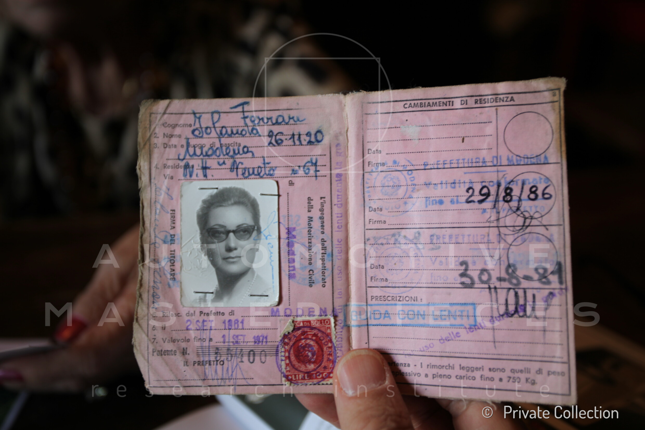 Acquired at the Salone di Torino in 1956 and donated to wife Jolanda Garuti