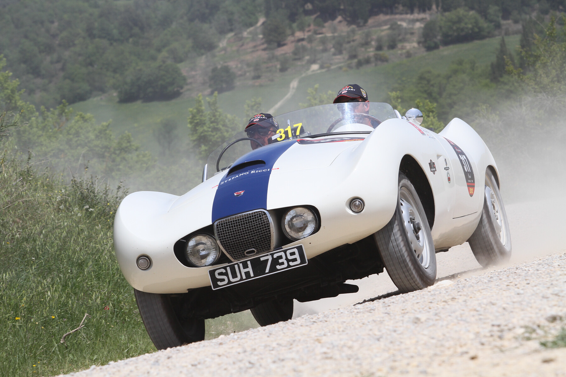 In the immediate post-war period, many US importers, operating in the motor industry, created their own brands with which to sell the products distributed by their commercial network. Following the success achieved with the Bertone-bodied MG TDs, in 1953 Stanley H. "Wacky" Arnolt, the American importer of several British marques, asked Bertone to design a light body, suitable both on track and road, for the more powerful 2 -liter Bristol 404 chassis characterized by a short wheelbase. However, the Arnolt-Bristol packed more power than the 404, carrying a tuned version of Bristol's Type BS1 sports-racing engine, a six-cylinder unit that harked back to the prewar BMW 328. Output was 130 horsepower (Bristol touring-car engines were usually rated at 105 bhp in this period). Gearbox and brakes came from Bristol's earlier 403 coupe-sedan. Nuccio Bertone entrusted the study of the line to Franco Scaglione, the new design manager of the Turin bodywork; a very difficult task, given the considerable vertical dimensions of the engine, which forced the engine hood to be positioned at an unusual height for a small “barchetta”. Scaglione made a true masterpiece of “trompe-l'œil”, designing sinuous and accentuated front and rear fenders that divert the attention of the beholder from the prominent prominence of the engine hood. The new roadster created a great sensation at the London Motor Show in October 1953 and at the New York Motor Show in February 1954. The chassis were sent to Turin by rail, where Bertone carried out the bodywork and interiors and organized the shipment of the finished cars overseas. Given the handcrafted construction in small series, many cars are differentiated by small variants, due to continuous evolution and customer requests, however it is possible to divide the production into four main configurations, in which the model was offered. Arnolt Bristol was initially built in the "Competition" version only, that is a “barchetta” with a tiny windshield, intended for racing. Later, the "Bolide" version was created, which differs from the previous one for the larger windshield and the tiny retractable hood. The "Deluxe" set-up followed, featuring a higher level of finish and Connolly leather interiors, being fitted with also a better hood, bumpers and side screens. Also noteworthy are 3 "Coupé" examples, with closed bodywork and retractable headlights. All the versions sold well, also thanks to their racing successes. Only 142 Arnolt Bristols were built, from 1954 to 1961: 85 Competition/Bolide roadsters, 54 DeLuxe roadsters, 3 DeLuxe coupés. The Arnolt Bristol used in competitions were substantially identical to those registered for normal circulation. Any elaborations were due to the intervention of the pilots and their respective mechanics. Many noteworthy sporting results, among which the triumphal participation in the 12 Hours of Sebring in 1955, in which the Arnol Bristol won a crushing victory in the class up to 2,000 cc, conquering the 1st, 2nd and 4th place.