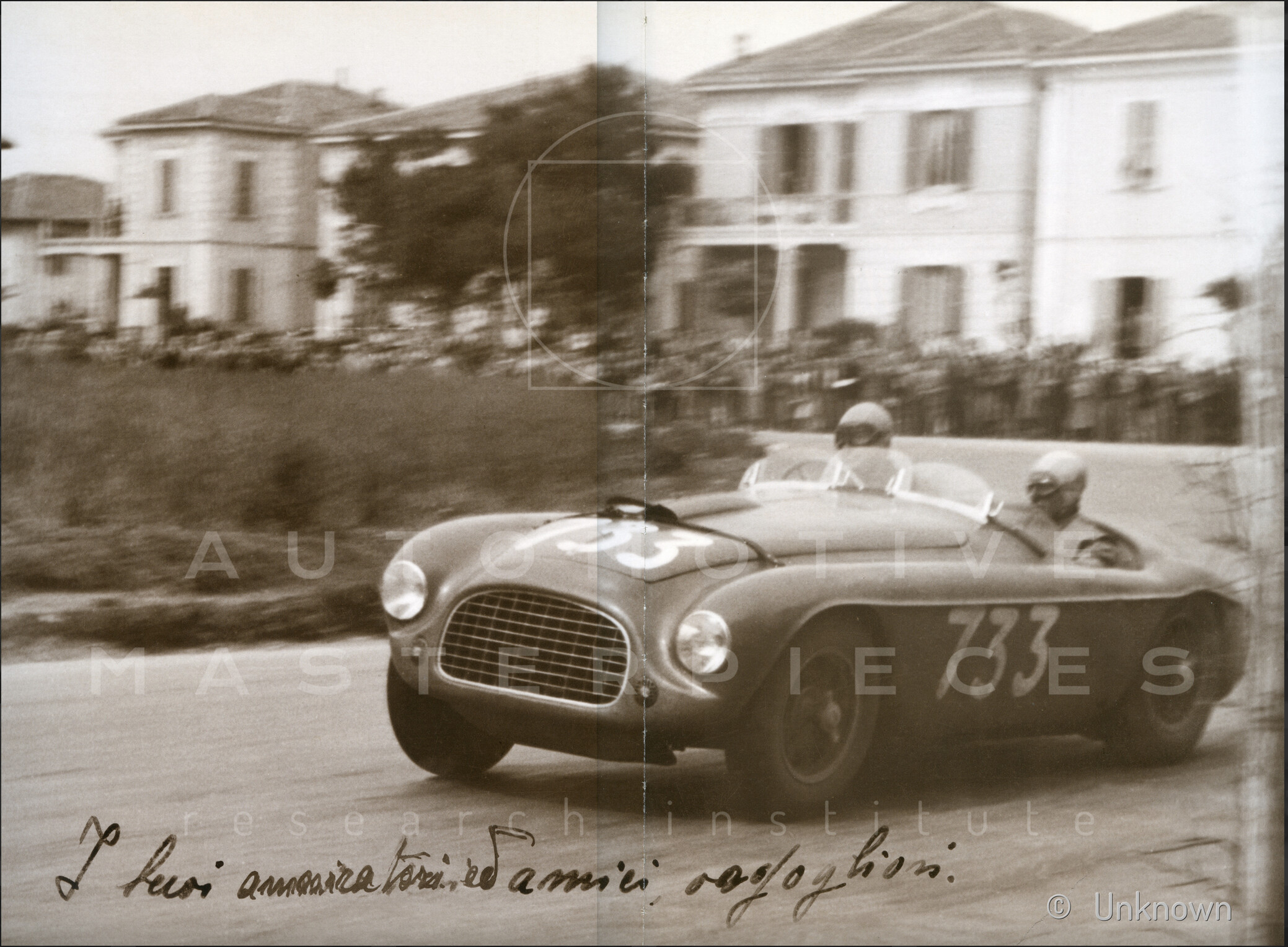 A detailed historical reconstruction has been carried out, including ownership chronology, race entries and appearances, and relevant literature. Numerous new images have been located, coming from professional archives or extracted from period footage, often unpublished and in high definition. For each competition, available photographic and documentary material has been reviewed, with particular attention to provenance and reproduction quality. Several artifacts, such as entry forms, official rankings, medals and rare publications, have also been identified and proposed to enrich the historical record. Bibliographic references have been collected to support and expand the existing material.
