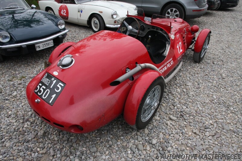 1951 Ermini 1100 Sport. Weighing a mere 560 kg empty, this Ermini Siluro may be considered the ultimate in the model’s development. Built on a Gilco 203 chassis with the wheelbase reduced to 2.20 m, it mounts the tried and tested Fiat Ermini engine (Fiat 1100 E cylinder block, Ermini twin-cam head). Designed in 1951 and bodied by Mariani (Pistoia), it was adapted to meet successive international sporting regulations requiring fenders fitted to the bodywork. This car didn’t have a very intense racing career, as the owner, a gentleman driver from Livorno, decided after the 1951 Mille Miglia not to enter it for any other particularly demanding races. The engine is an in-line 4 cylinder with overhead cam developing a maximum output of 82 hp at 6200 rpm, wet sump forced lubrication and Weber carburetor (2) fuel feed. The front brakes are based on the Fiat 1500, while the rear ones are from the Fiat 1100, both being hydraulic drum. This car is eligible for several virtual exhibition, including among others, the 90th Mille Miglia 1927-1957 and the 110th Pasquale Ermini 1905-1958.