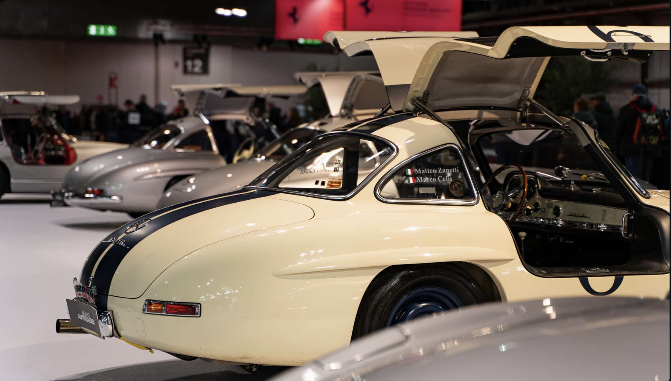 The celebration area of Milano AutoClassica's Club House paid tribute to 70 years of the Mercedes-Benz 300 SL “Gullwing”. 70 years of the Alfa Romeo Giulietta Sprint, and 40 years of the Ferrari Testarossa (with a parade of 30 cars) were also celebrated.