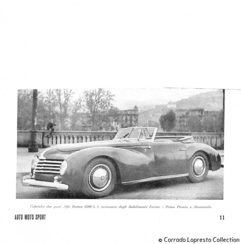 The first car is one of earliest designs of Giovanni Michelotti for Stabilimenti Farina, a 1947 Alfa Romeo 6C 2500 S Cabriolet #915339.