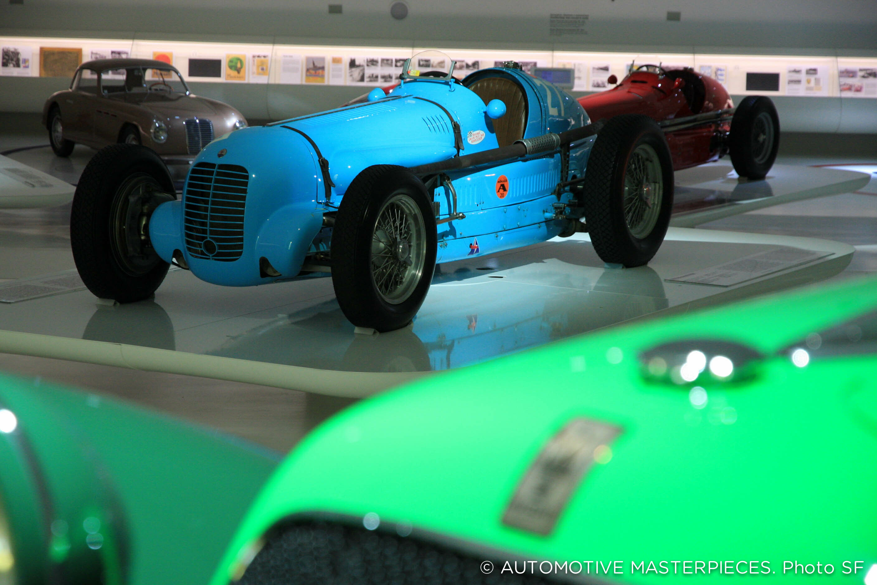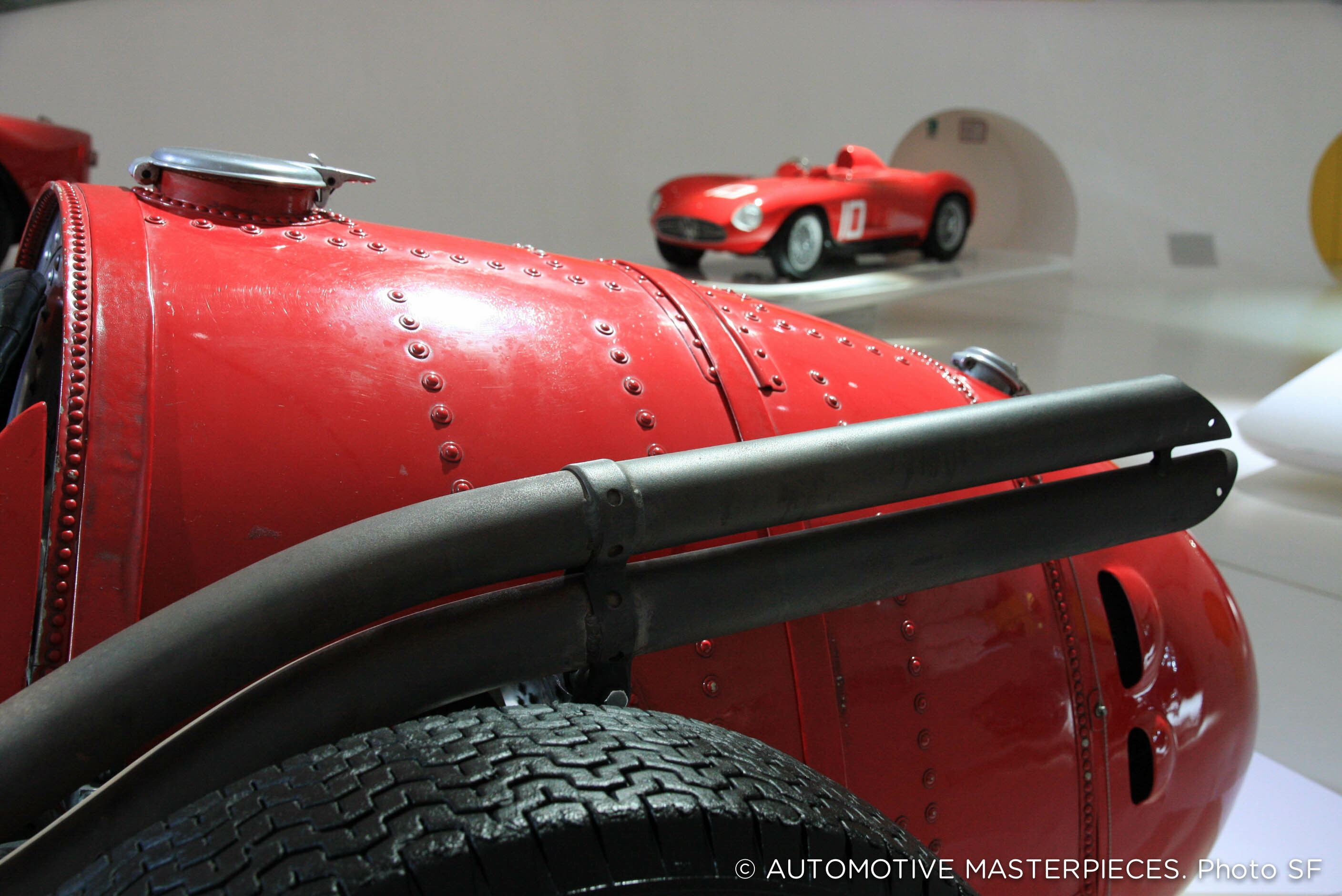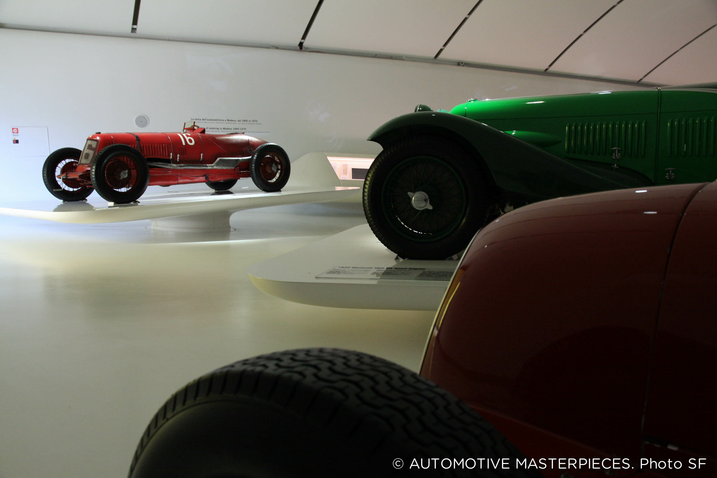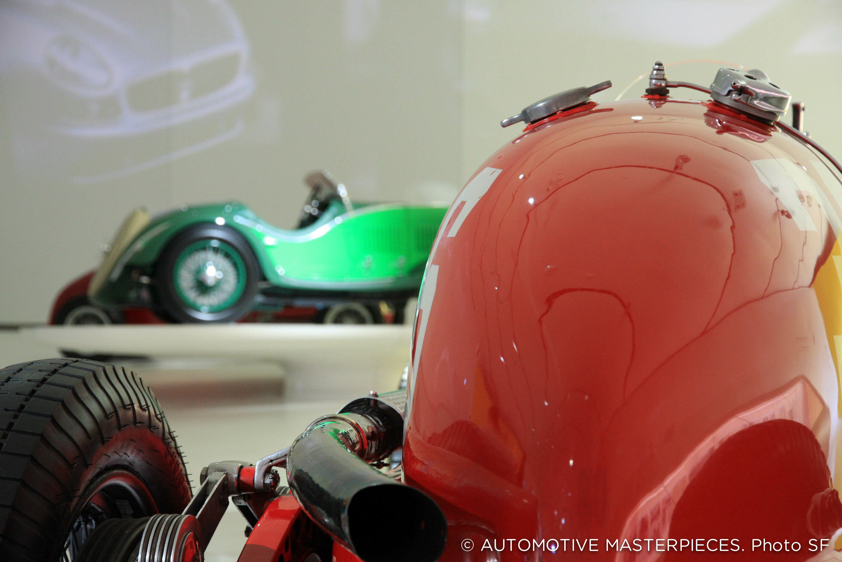 Among the highlights of the exhibition are cars like the Tipo 26, the first car to sport the Maserati marque; and the V4 Sport Zagato, which set the world speed record in 1929 driven by Baconin Borzacchini. It was re-bodied in 1934 by Zagato.