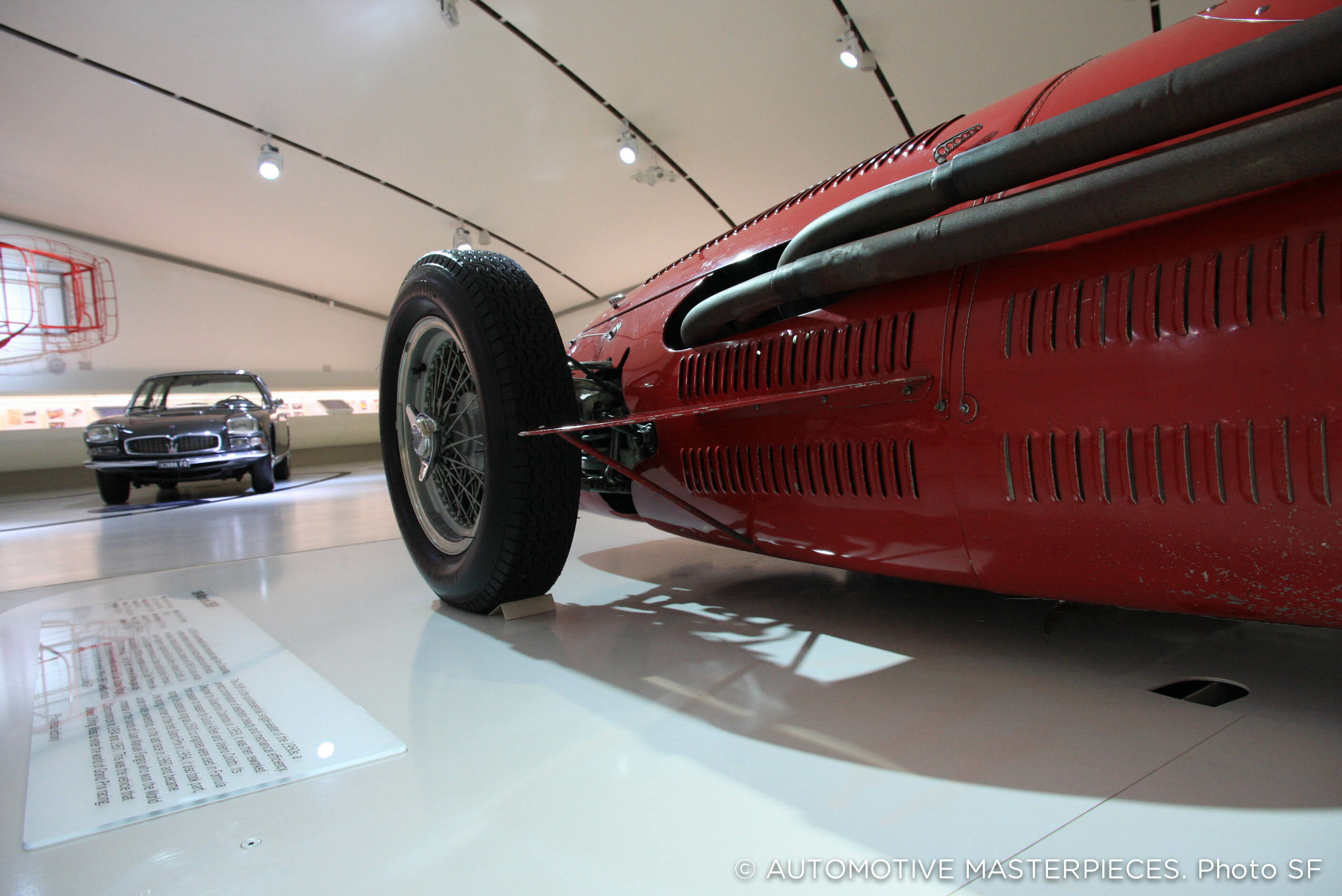 The road cars on show include one model which, although produced only in limited numbers and still in a rather artisan manner, constituted Maserati's first road car: the A6 1500 of 1947 bodied by Pinin Farina and built around a racing engine. This was a first attempt, a sort of general rehearsal, which hinted at the future of the Modena company.